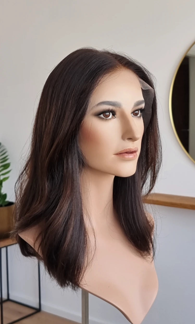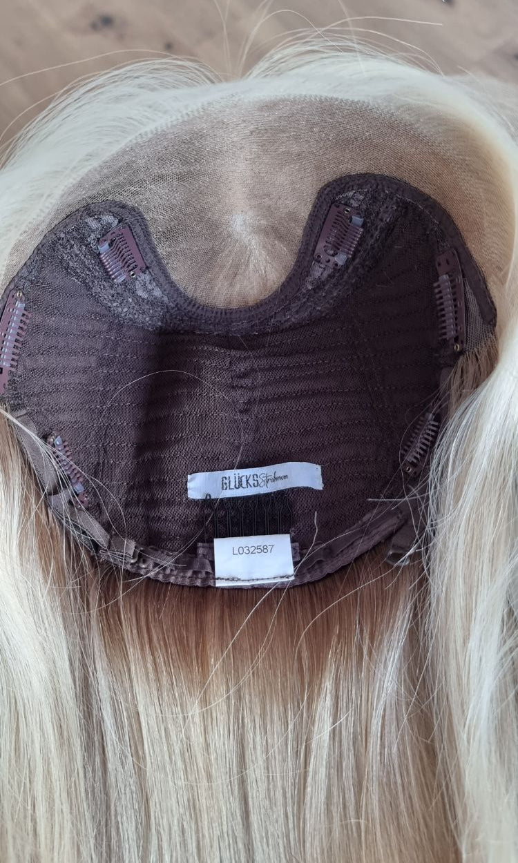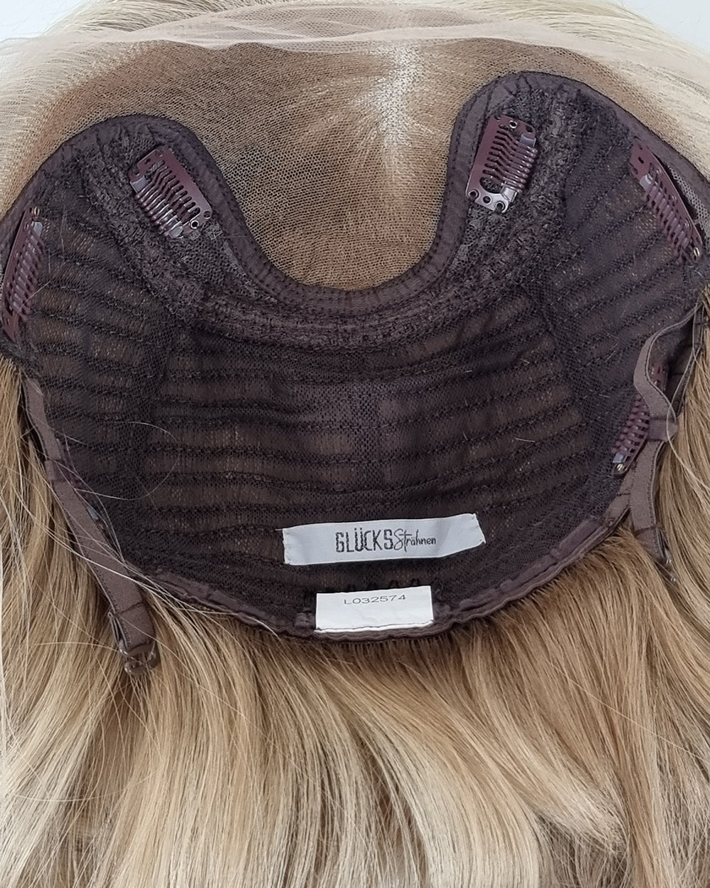 Er bedeckt den Oberkopf und ersetzt durch die Lacefront deinen Haaransatz. Der obere und vordere Bereich besteht aus Lace, in die die Haare einzeln eingeknüpft werden.