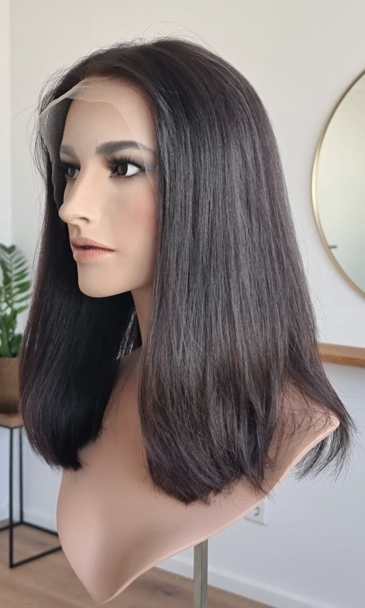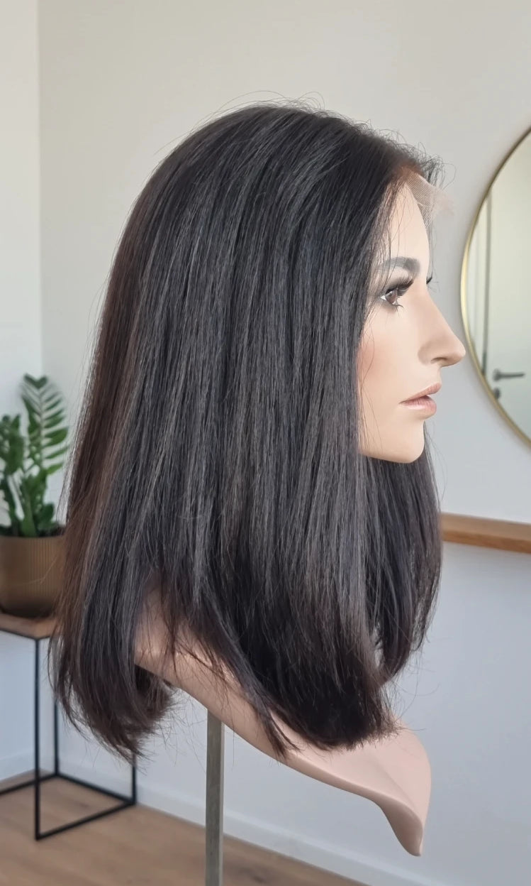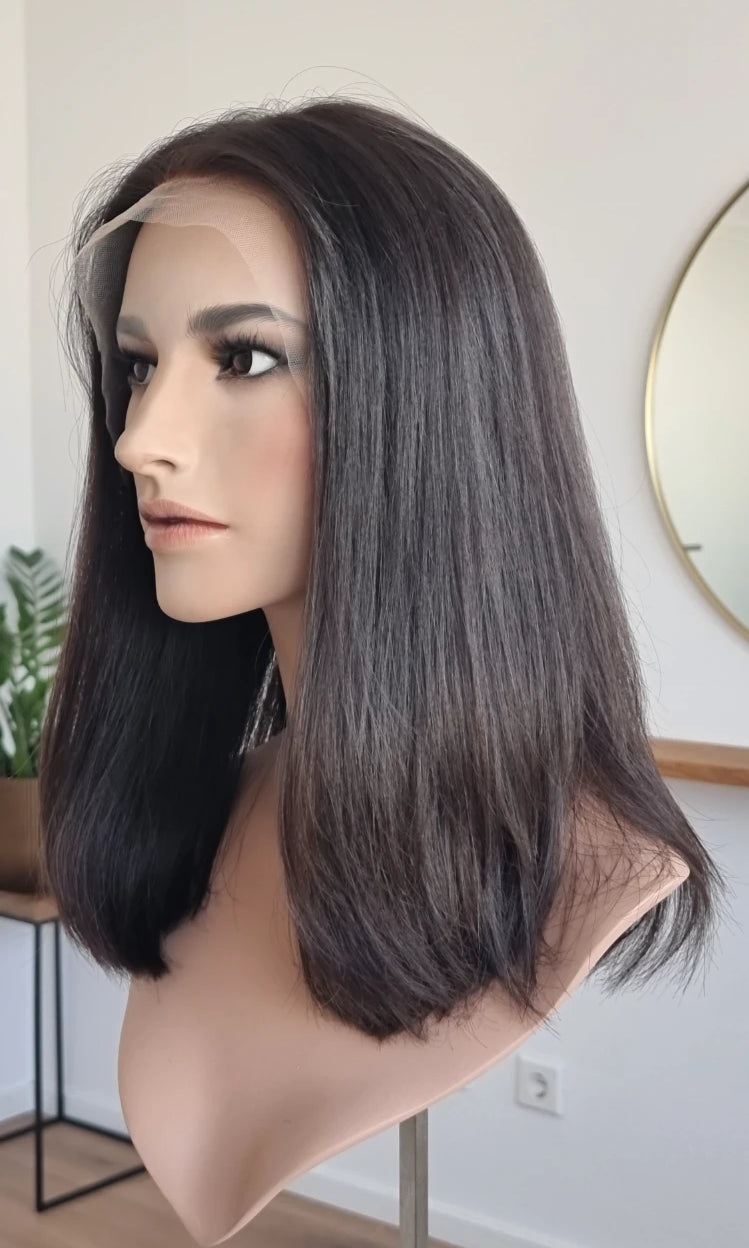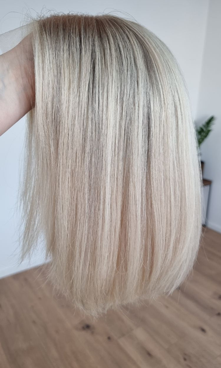 Für unsere Lacefront-Topper verwenden wir nur hochwertiges 100 % Remy-Echthaar. Dabei handelt es sich nicht um eine Herkunftsbezeichnung, sondern um ein Qualitätsmerkmal: Remy-Haare werden alle in ihrer natürlichen Wuchsrichtung verarbeitet, sodass die Schuppenschicht bei allen Haaren in dieselbe Richtung ausgerichtet ist. Das verhindert ein Verfilzen der Haare.