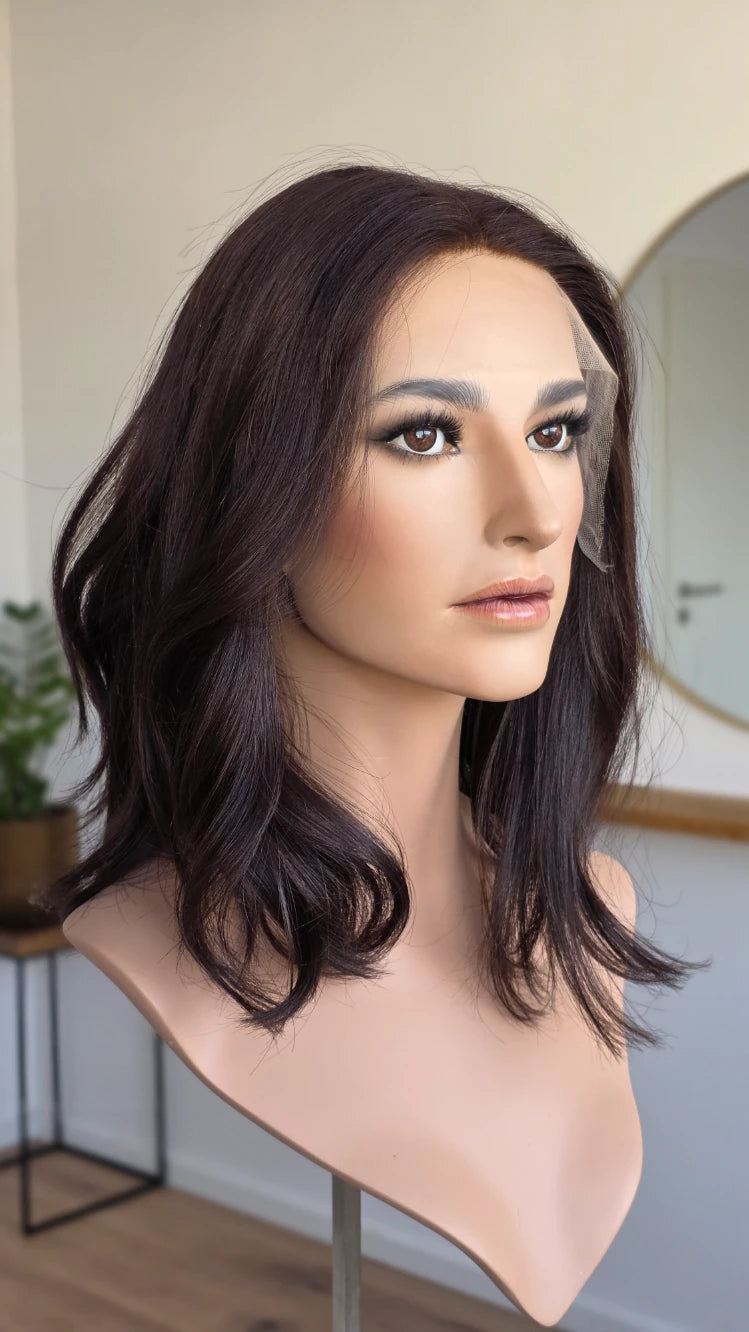 Er bedeckt den Oberkopf und ersetzt durch die Lacefront deinen Haaransatz. Der obere und vordere Bereich besteht aus Lace, in die die Haare einzeln eingeknüpft werden.