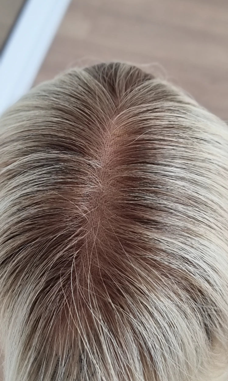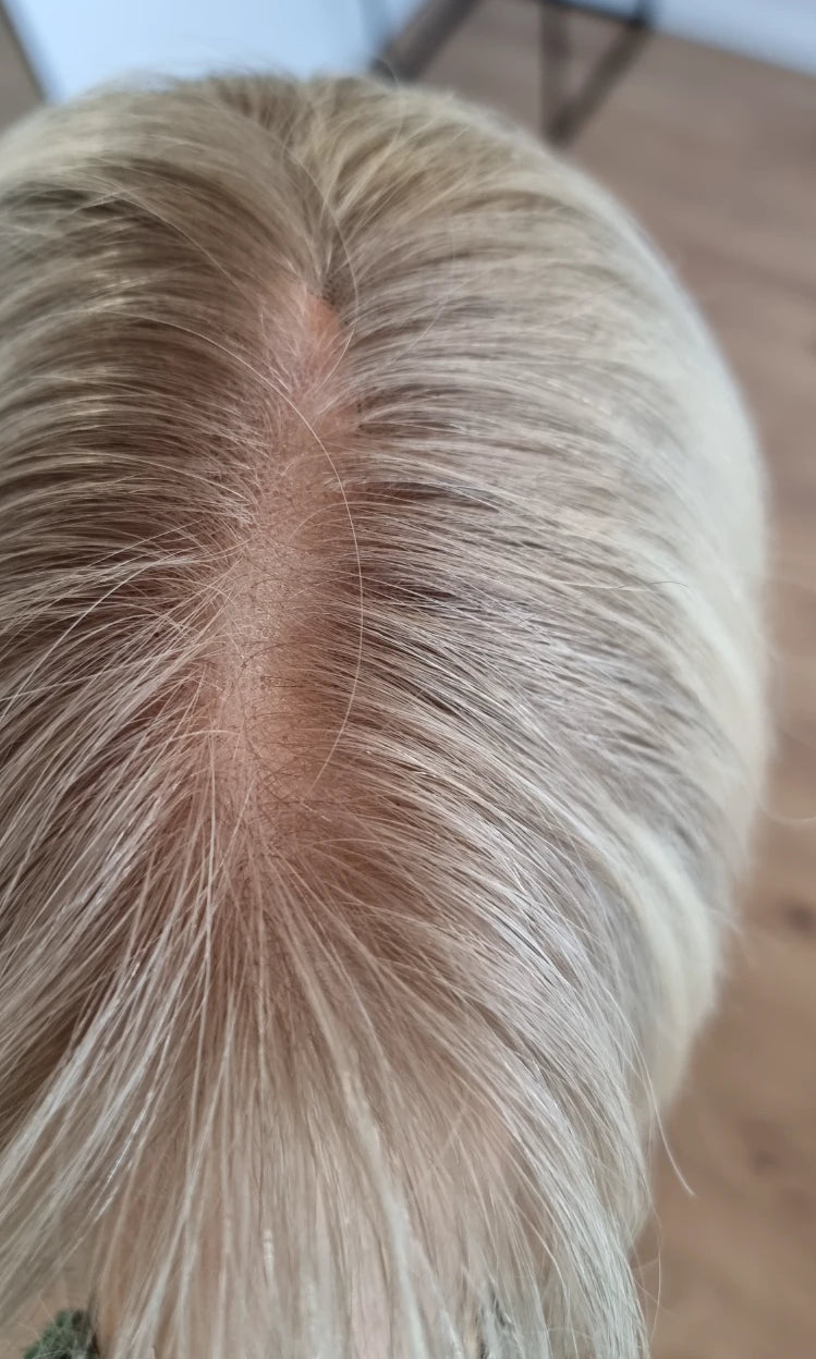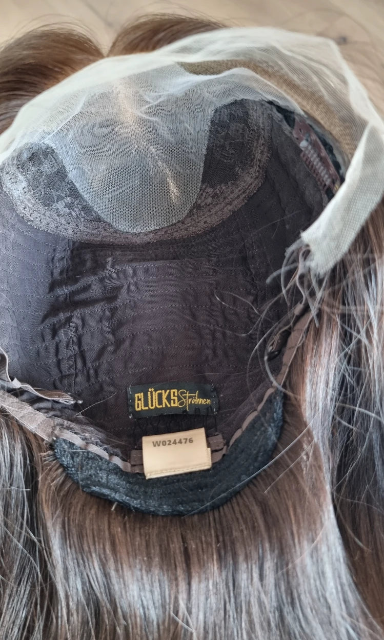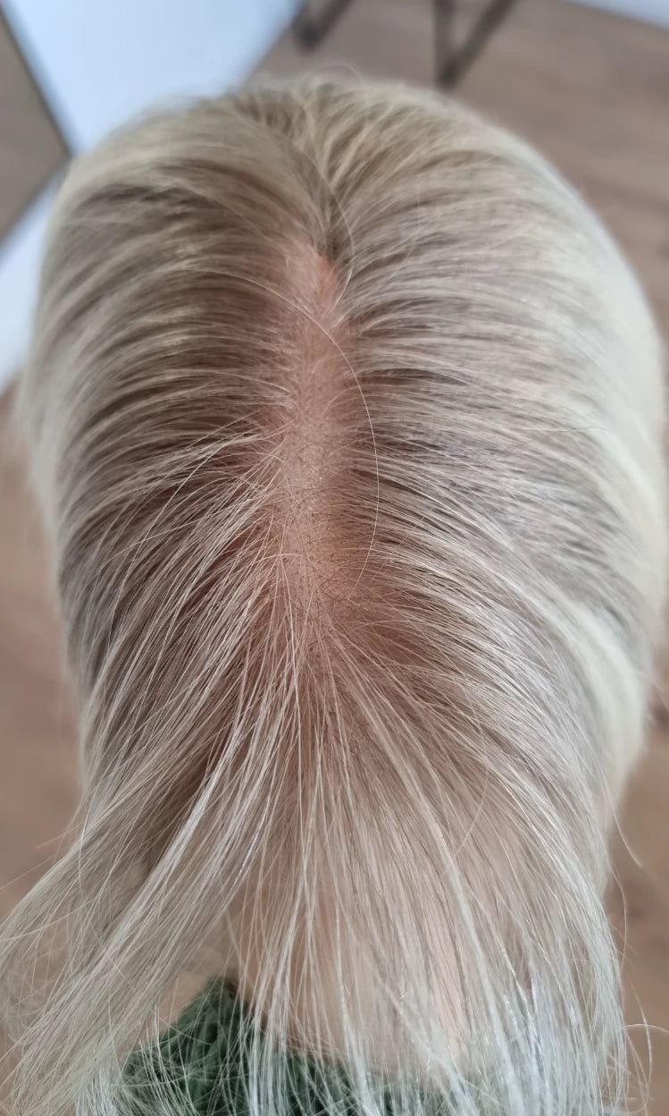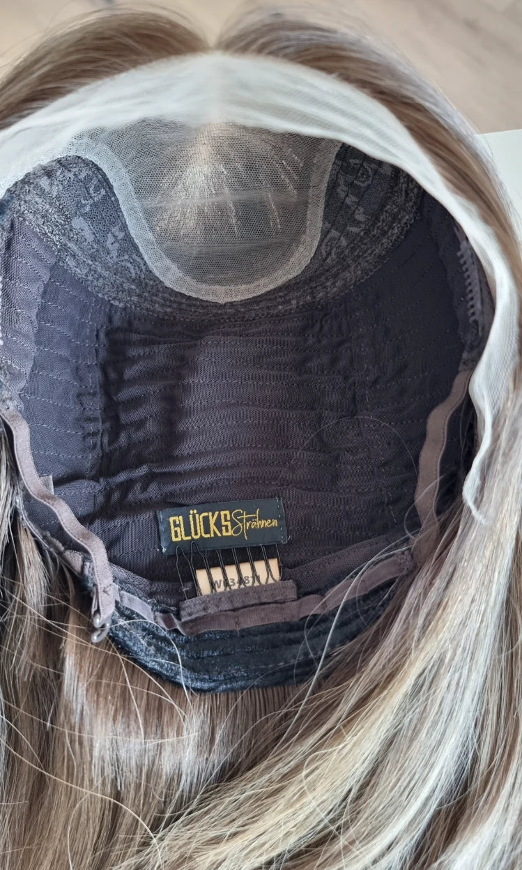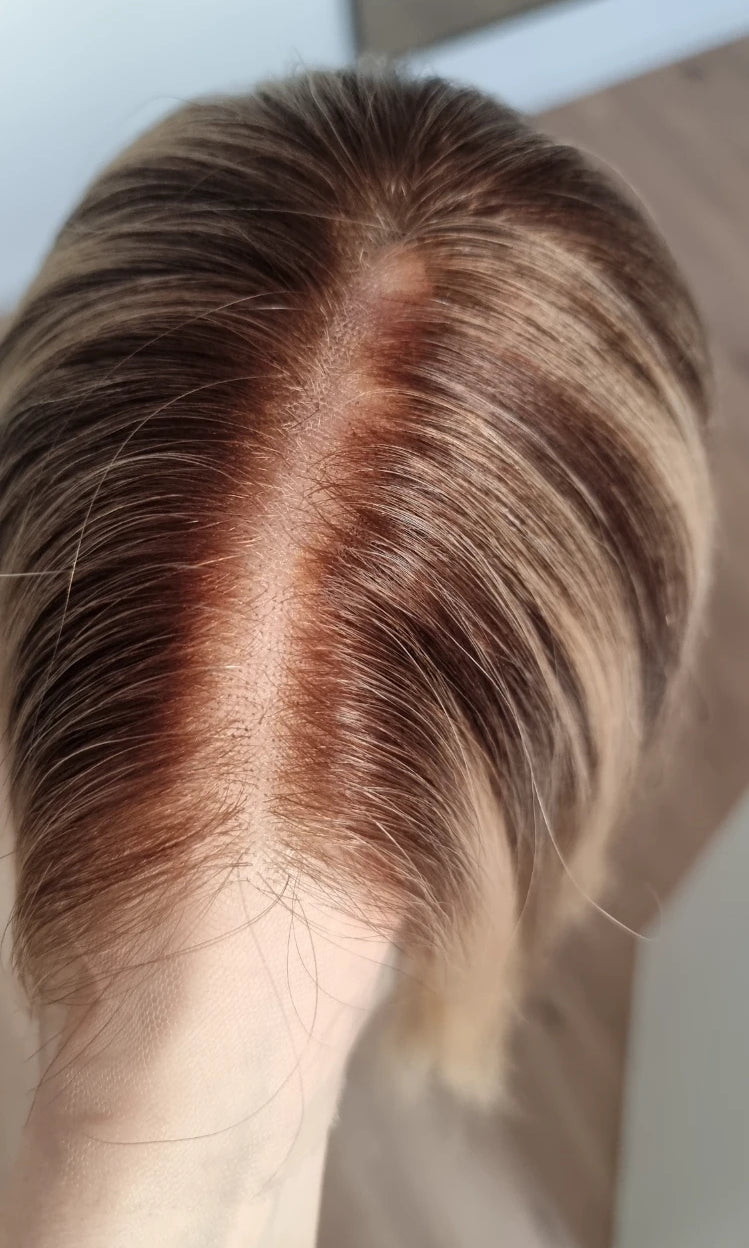 Im oberen Bereich befindet sich das sogenannte Lacetop: Hier werden die Haare ebenfalls einzeln eingeknüpft, was einen realistischen Scheitel und eine natürliche Haarbewegung ermöglicht.