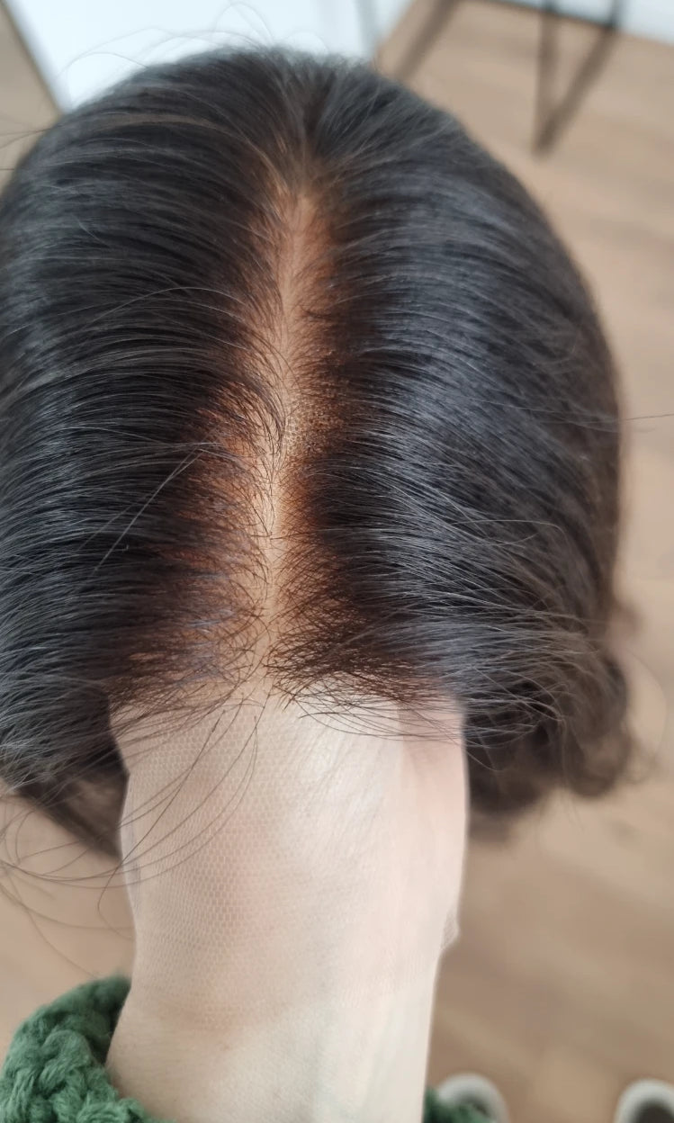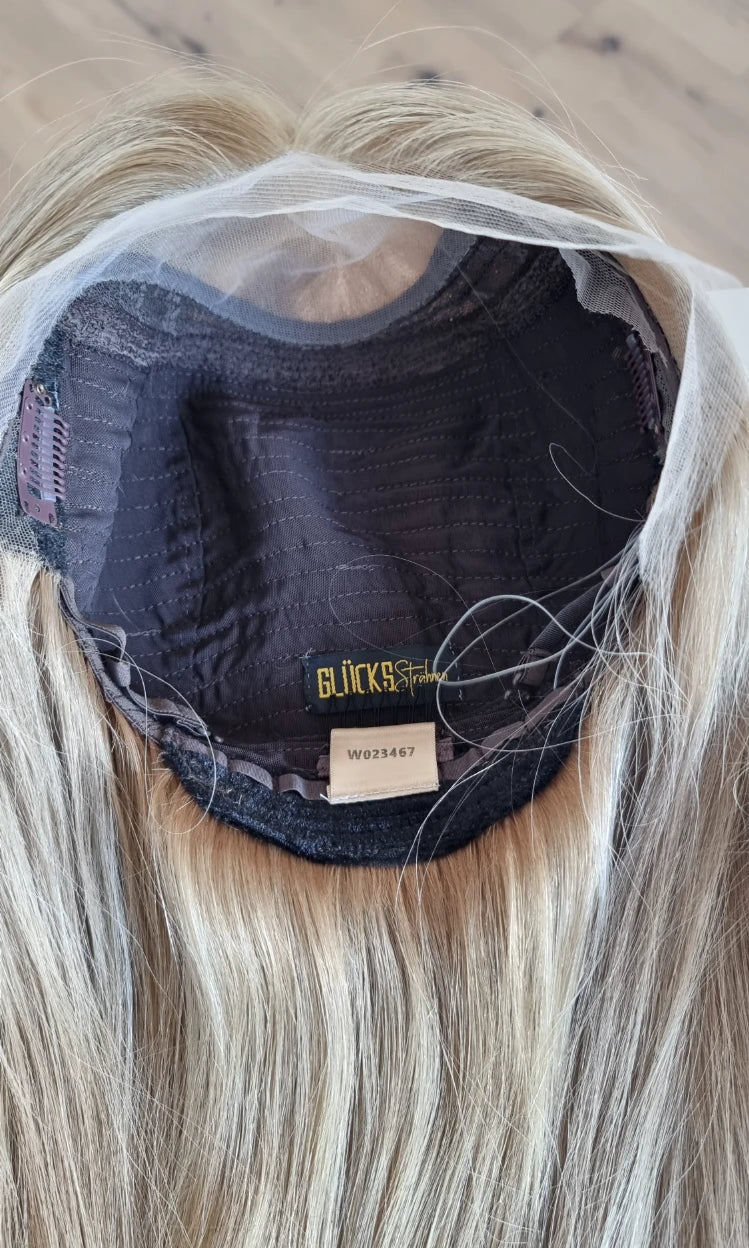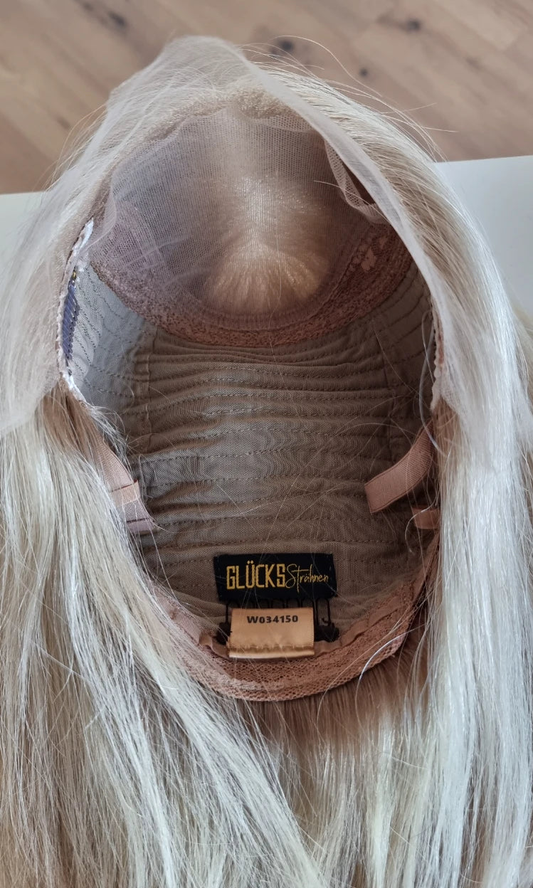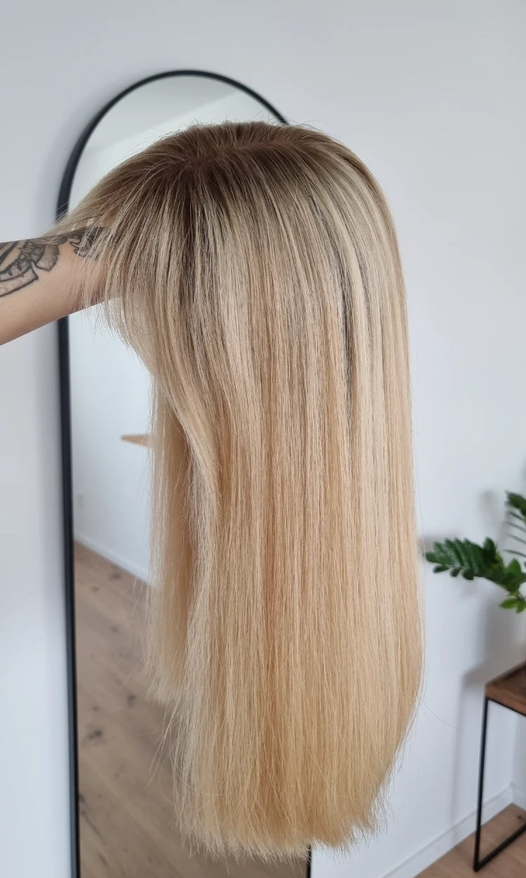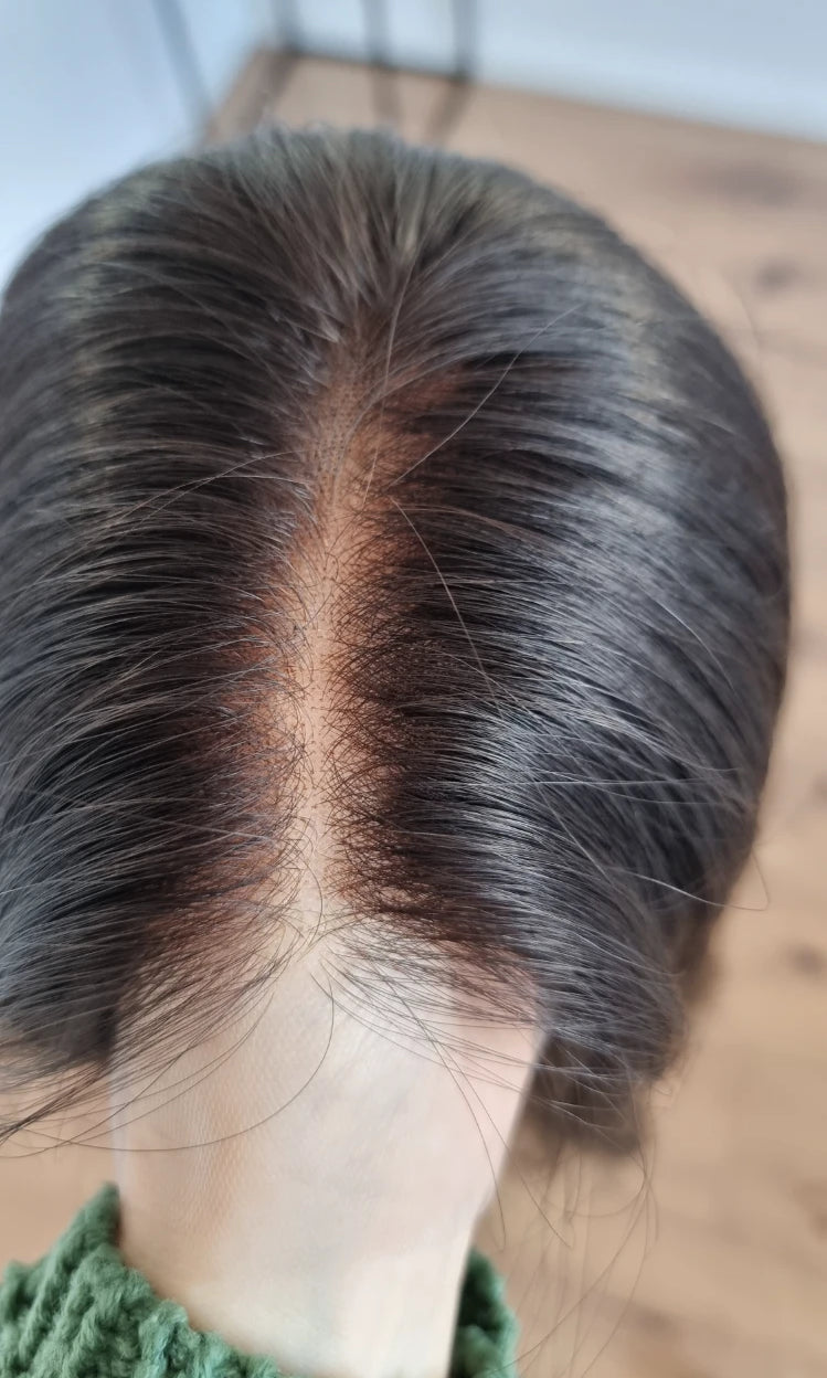 Im oberen Bereich befindet sich das sogenannte Lacetop: Hier werden die Haare ebenfalls einzeln eingeknüpft, was einen realistischen Scheitel und eine natürliche Haarbewegung ermöglicht.