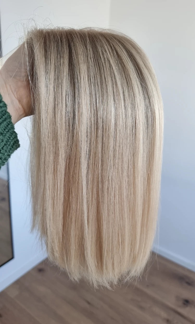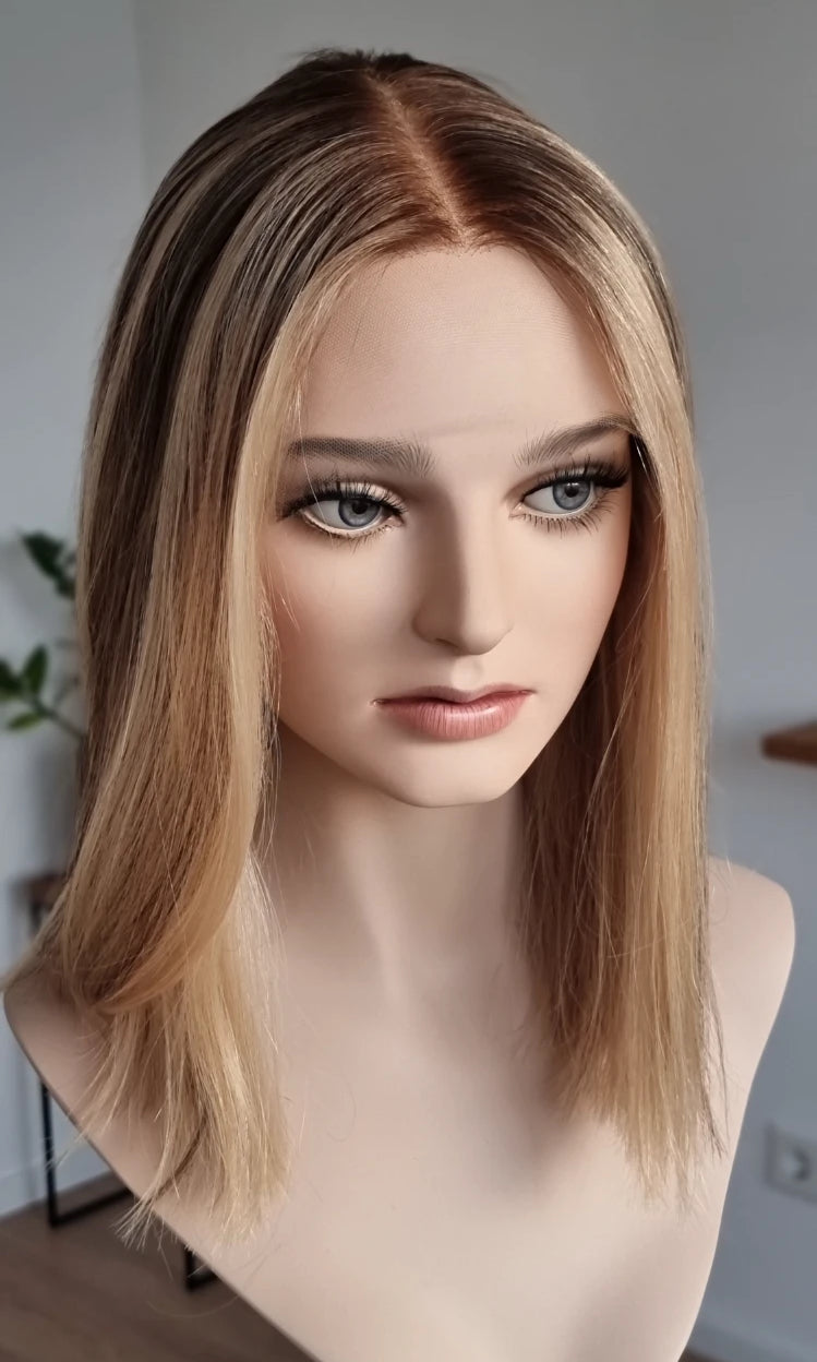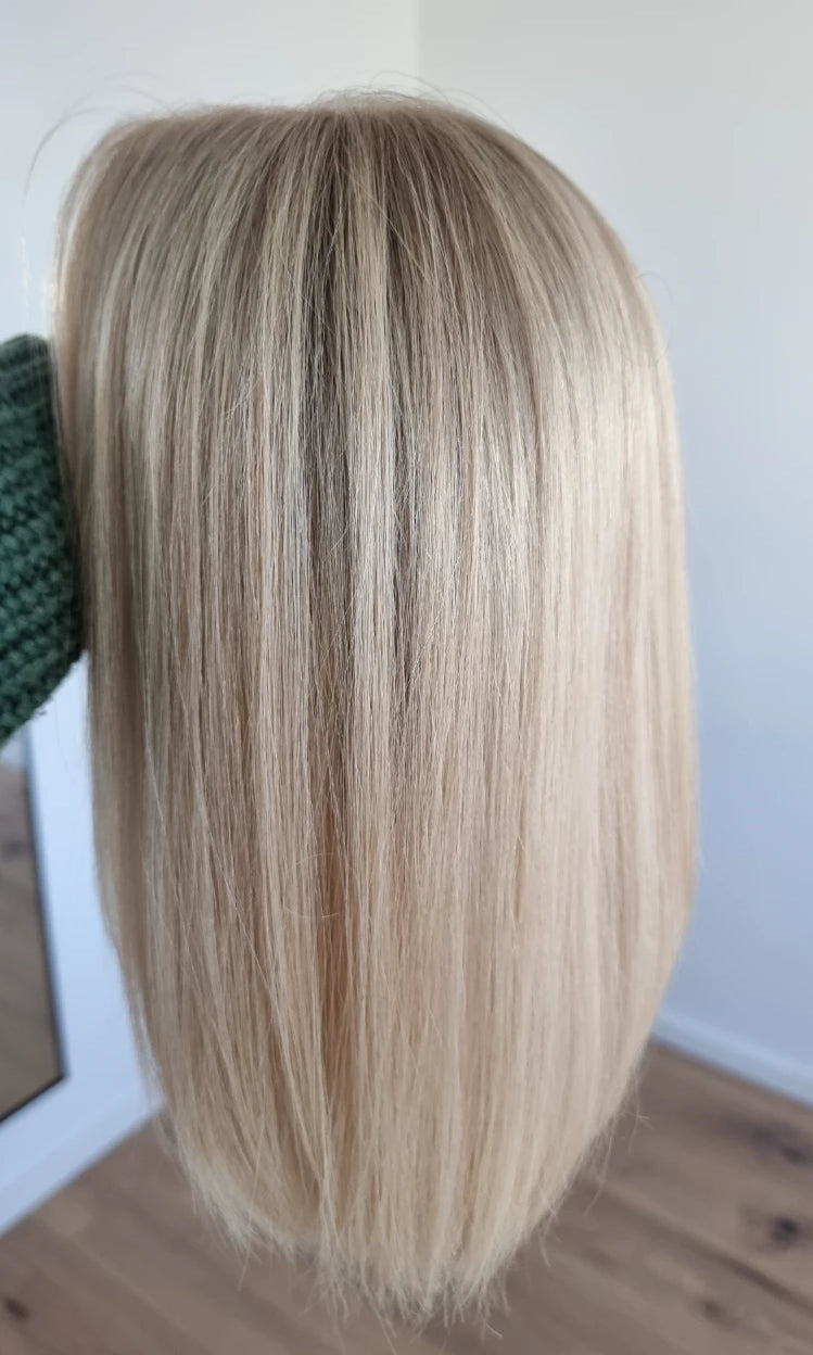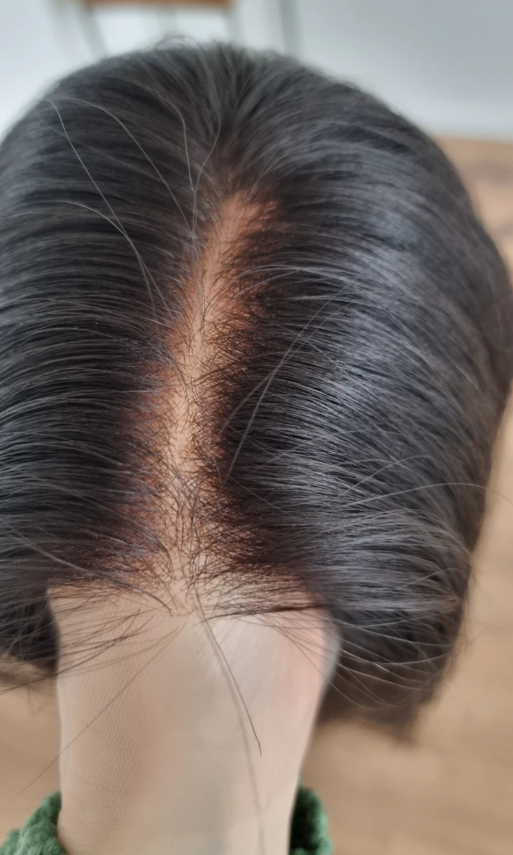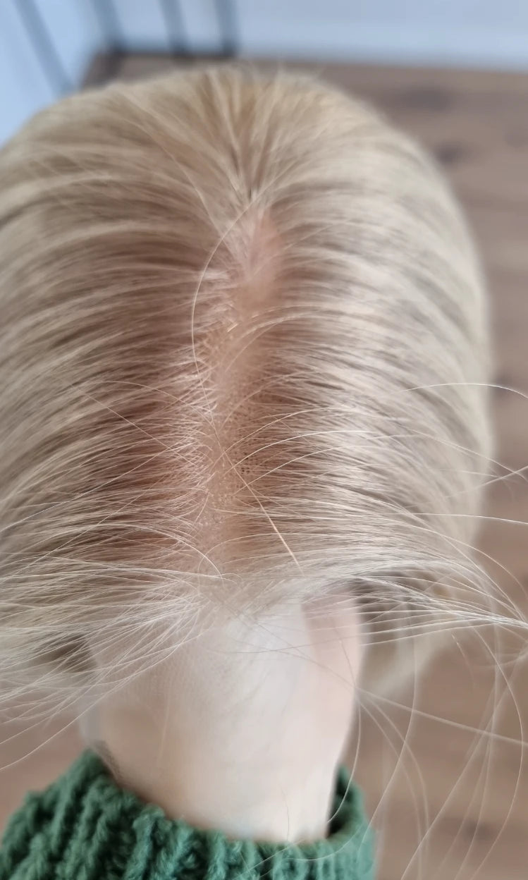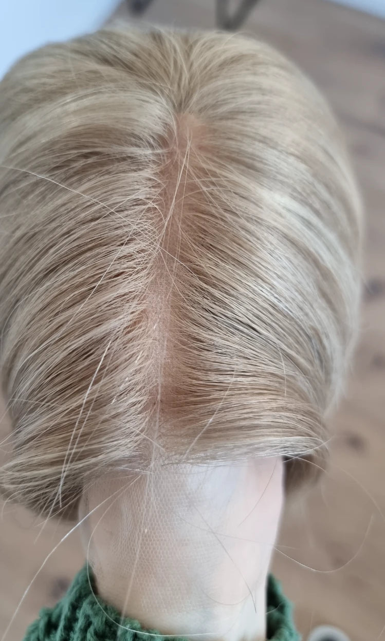 Im oberen Bereich befindet sich das sogenannte Lacetop: Hier werden die Haare ebenfalls einzeln eingeknüpft, was einen realistischen Scheitel und eine natürliche Haarbewegung ermöglicht.