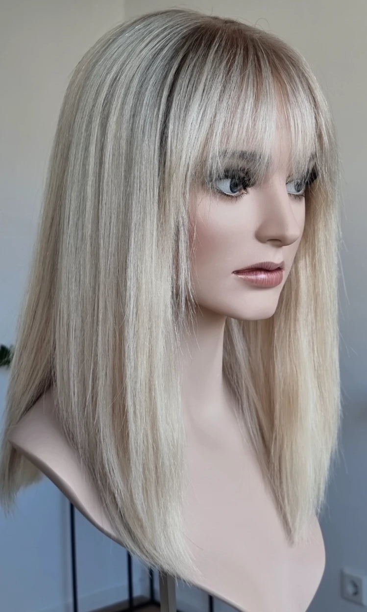 Unsere Tressen-Perücken bieten eine komfortable und natürliche Lösung für Frauen, die an Haarausfall durch medizinische Ursachen (wie z.B. Chemotherapie, Alepecia Areata) oder diffusen Haarausfall leiden.