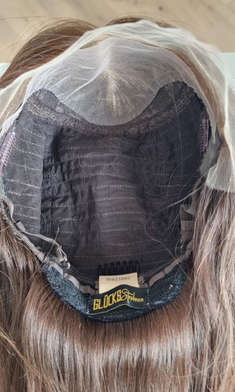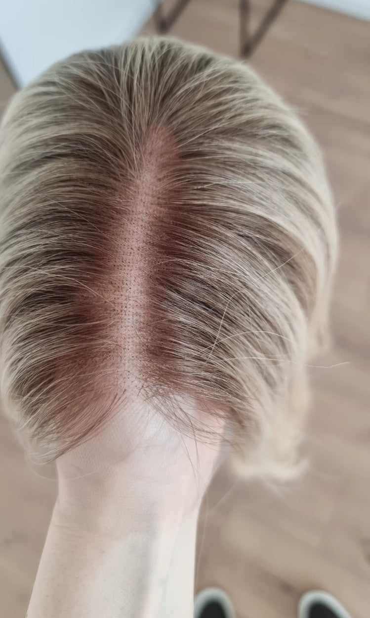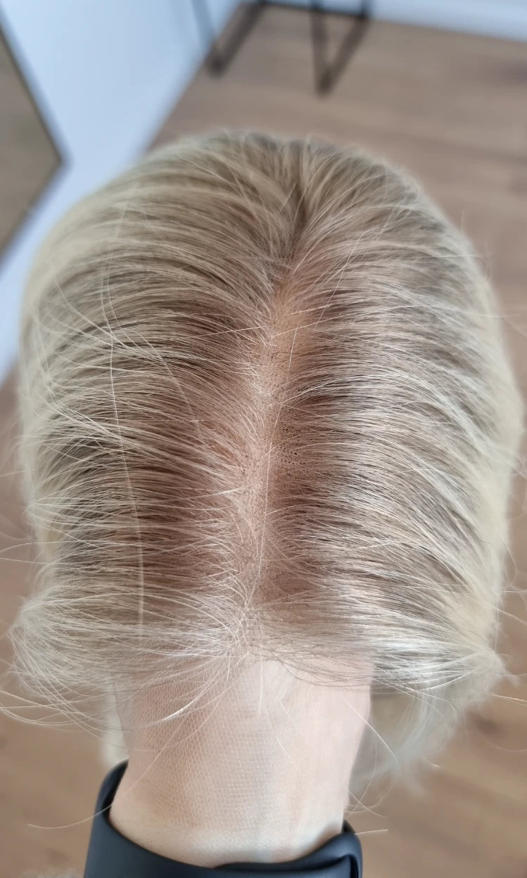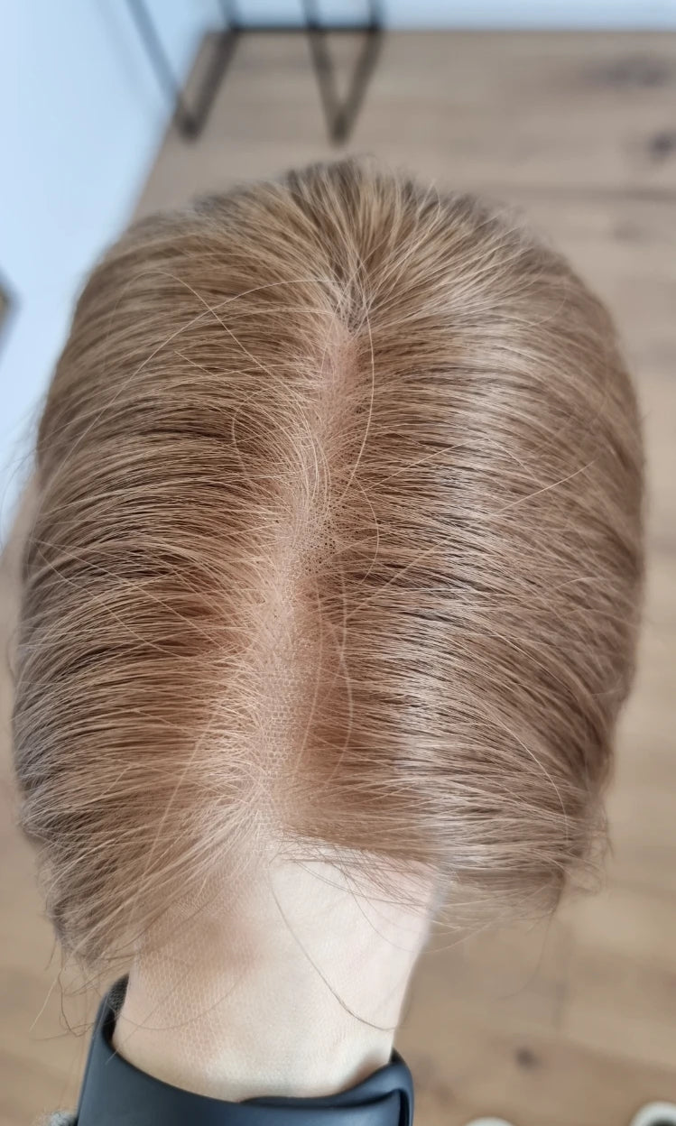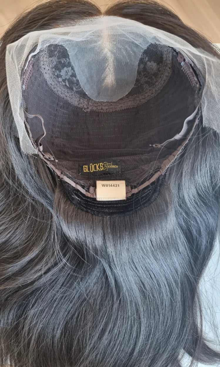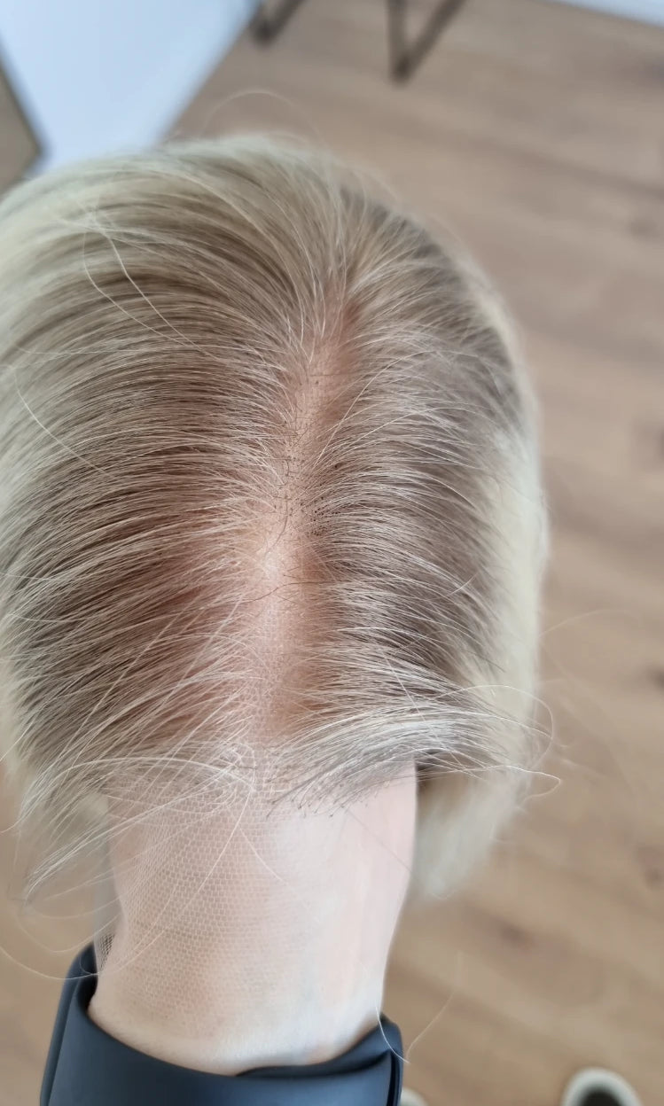 Im oberen Bereich befindet sich das sogenannte Lacetop: Hier werden die Haare ebenfalls einzeln eingeknüpft, was einen realistischen Scheitel und eine natürliche Haarbewegung ermöglicht.