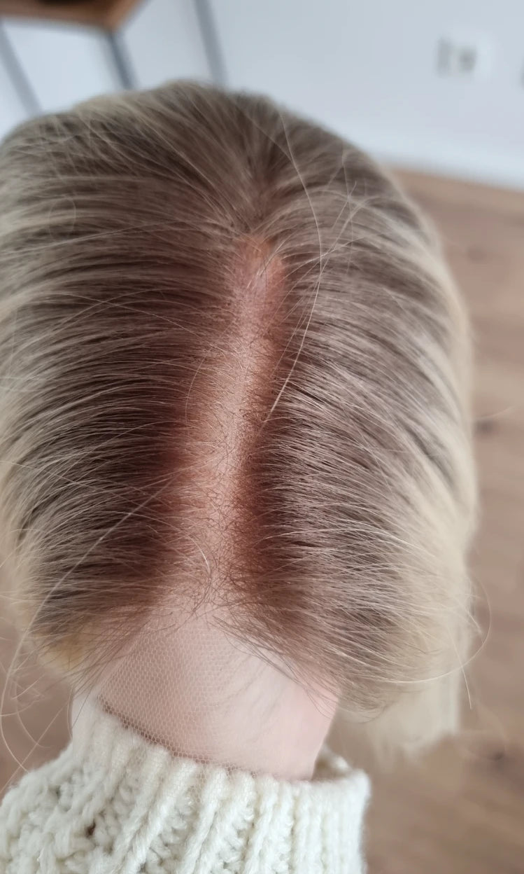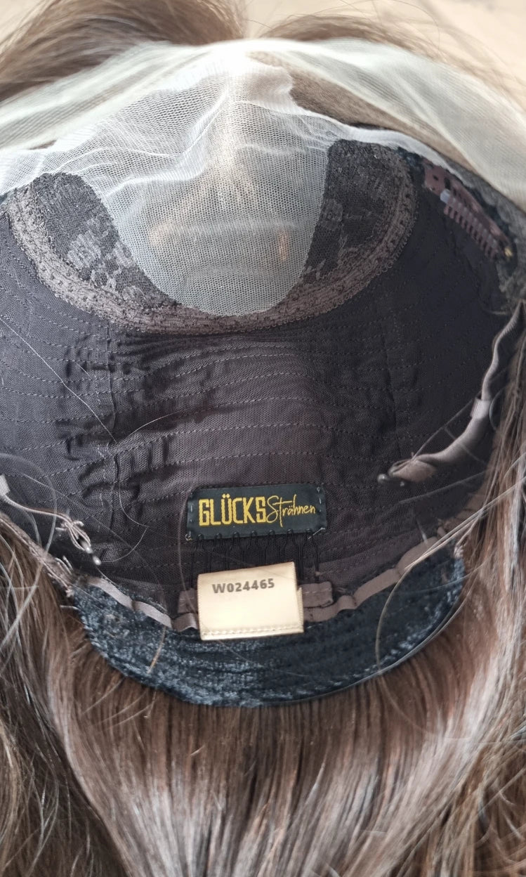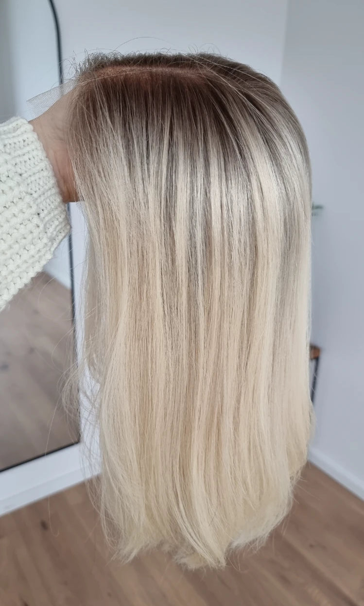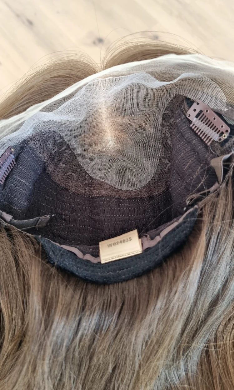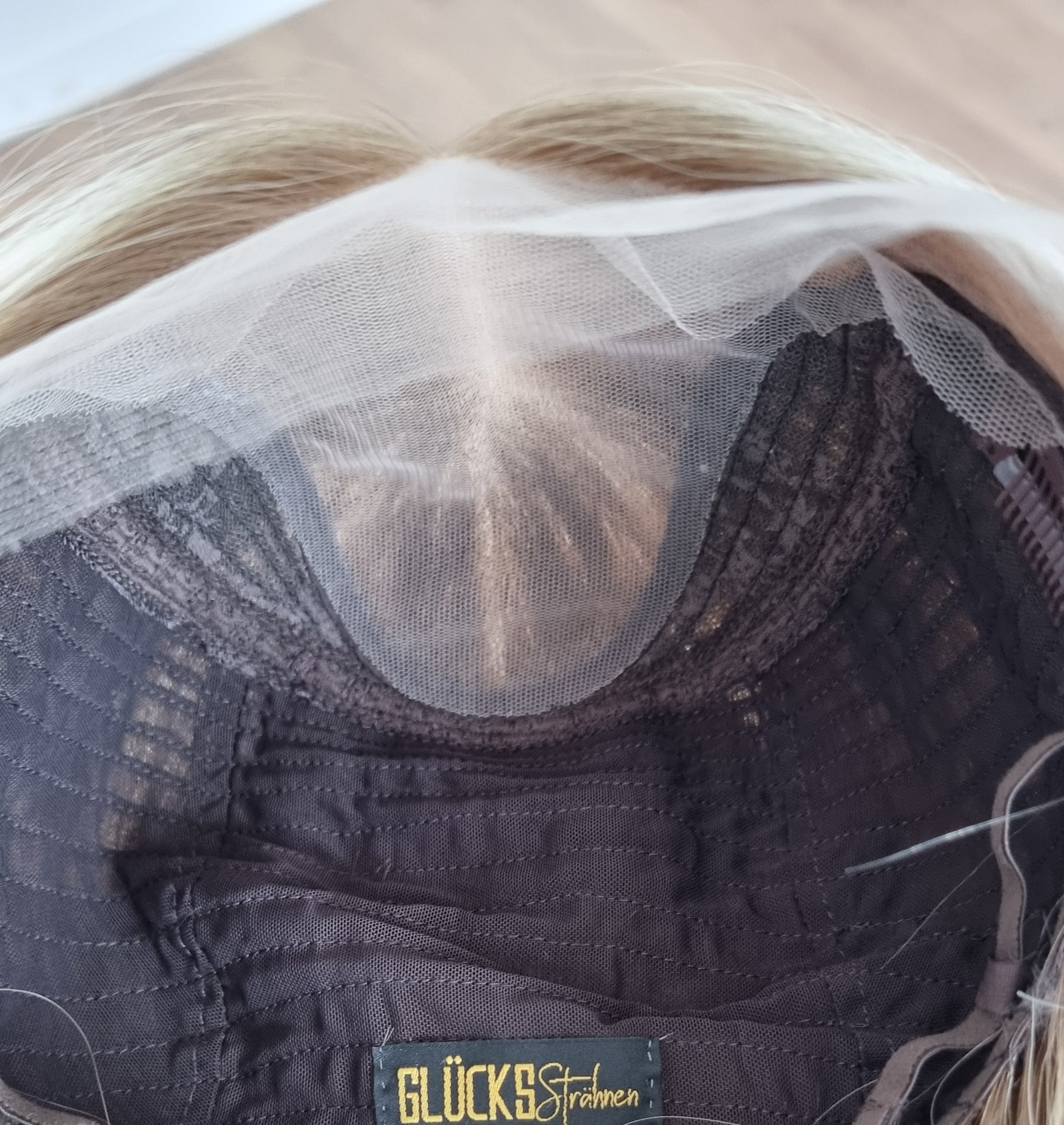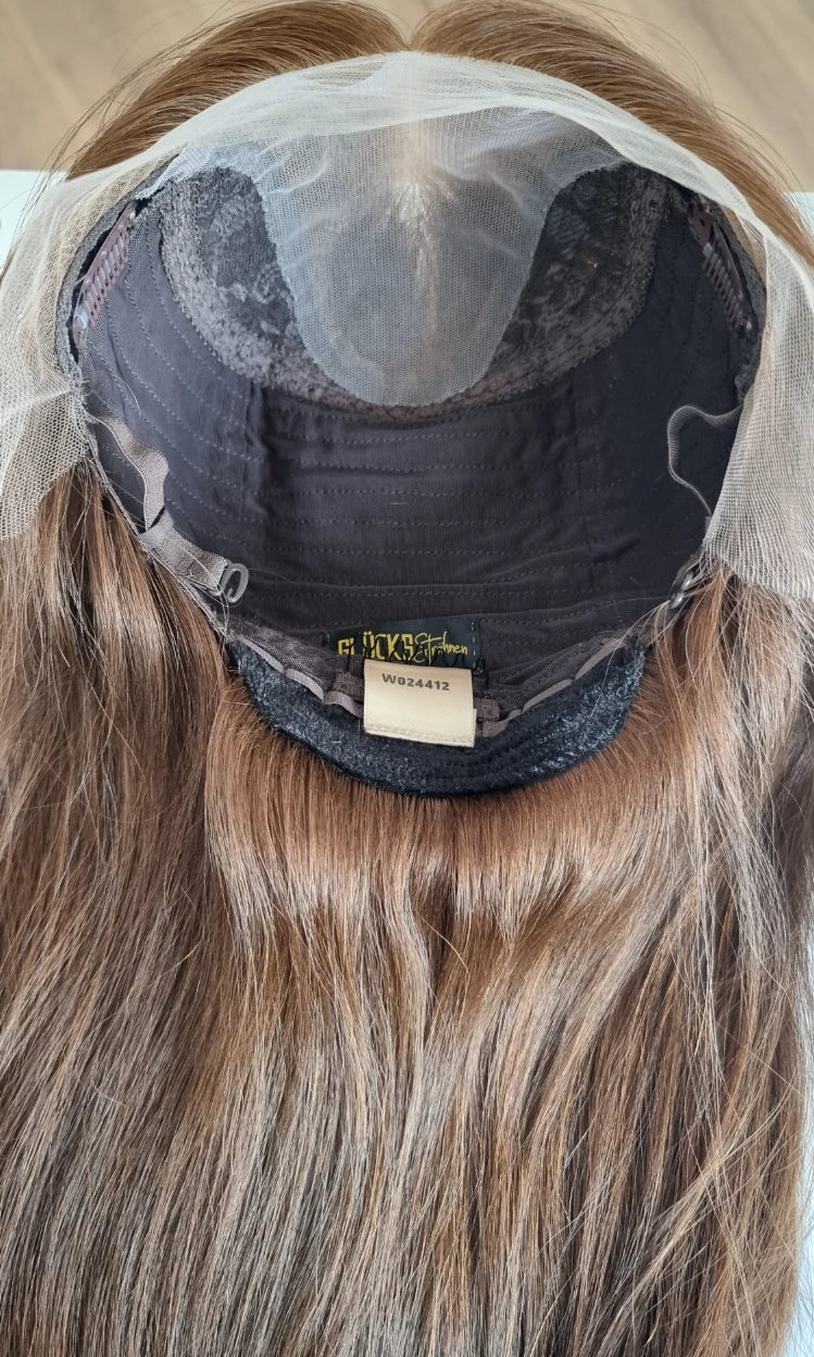 Im oberen Bereich befindet sich das sogenannte Lacetop: Hier werden die Haare ebenfalls einzeln eingeknüpft, was einen realistischen Scheitel und eine natürliche Haarbewegung ermöglicht.