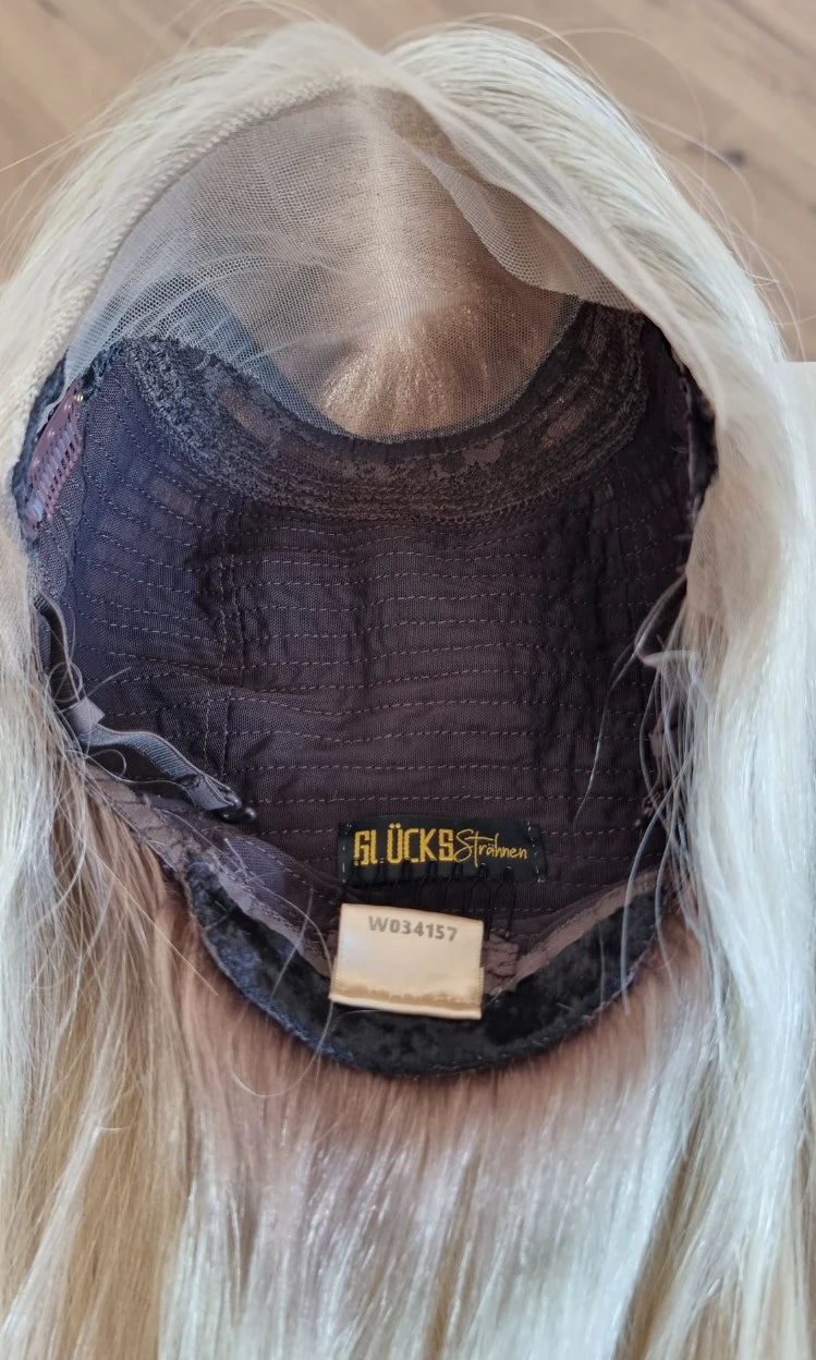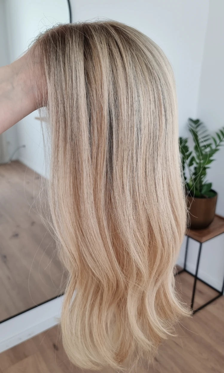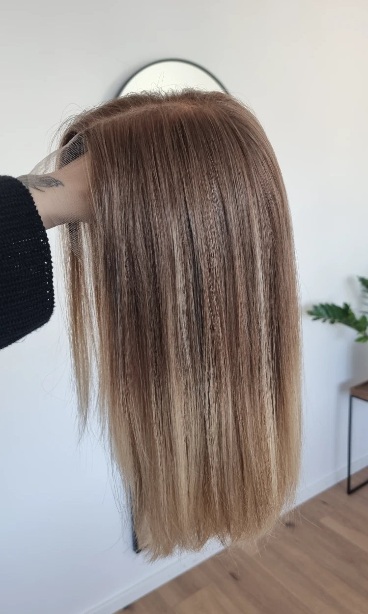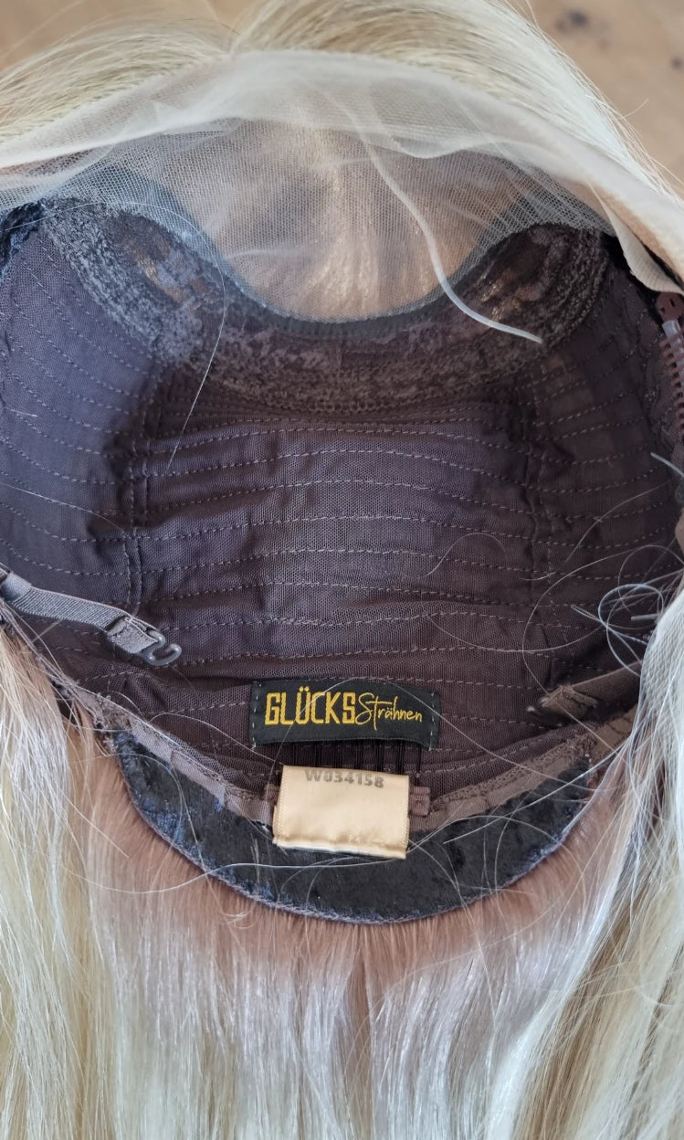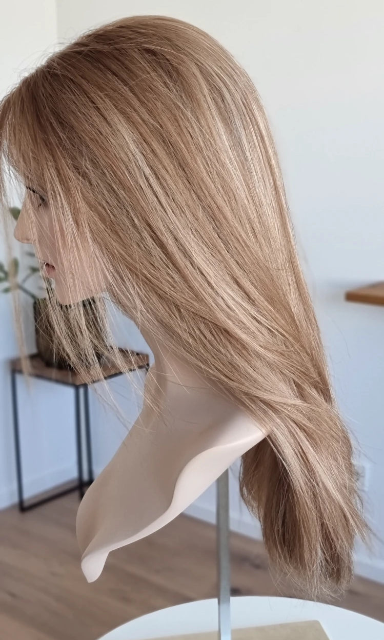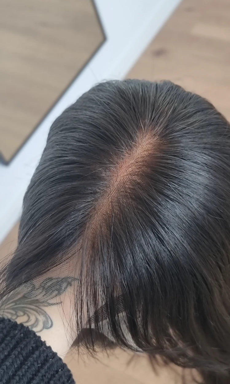 Im oberen Bereich befindet sich das sogenannte Lacetop: Hier werden die Haare ebenfalls einzeln eingeknüpft, was einen realistischen Scheitel und eine natürliche Haarbewegung ermöglicht.
