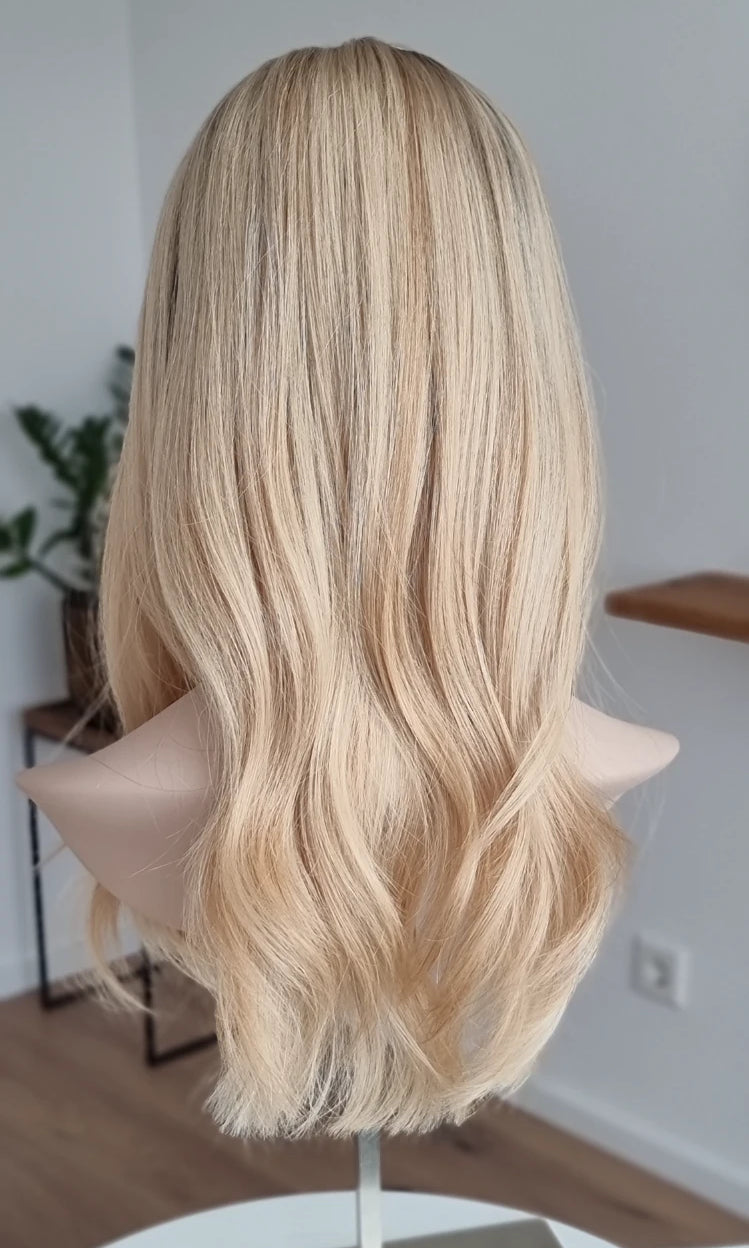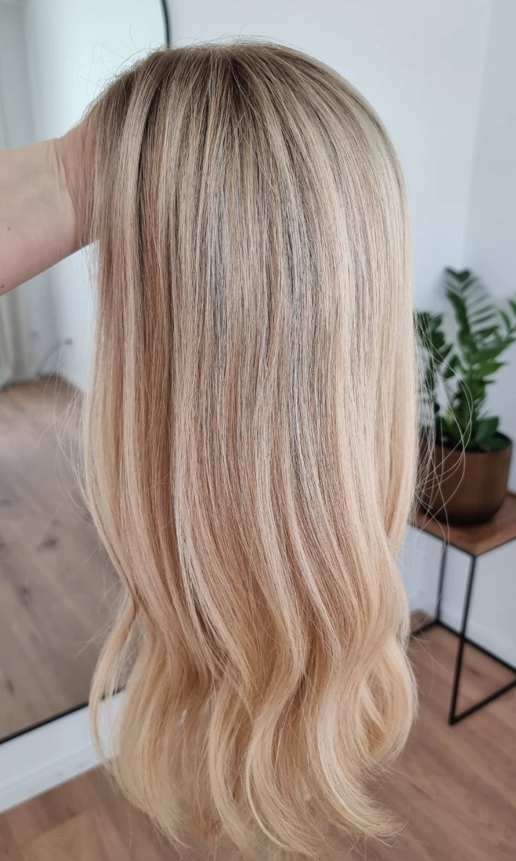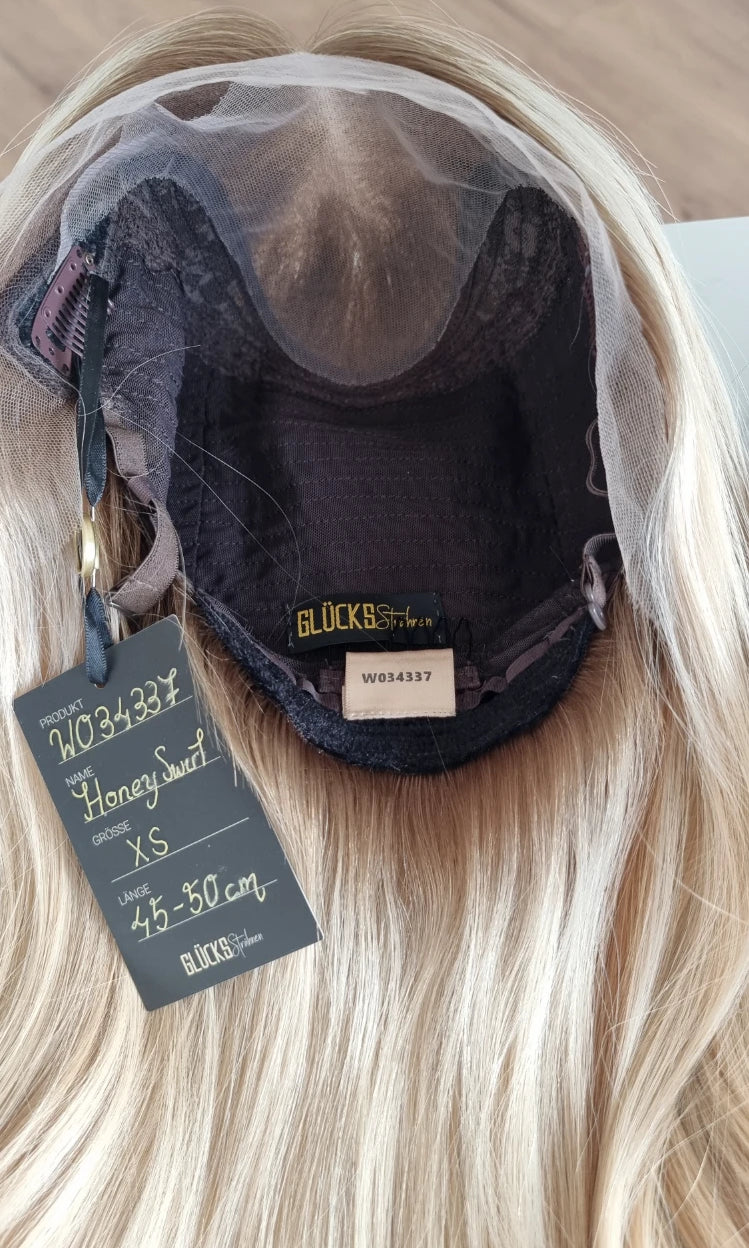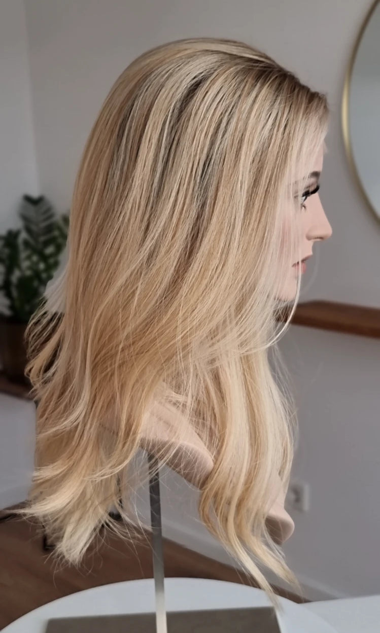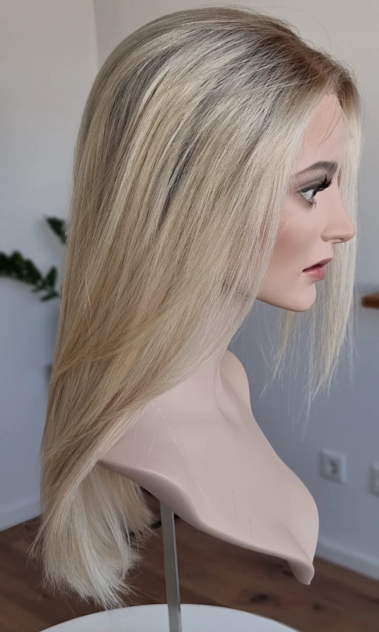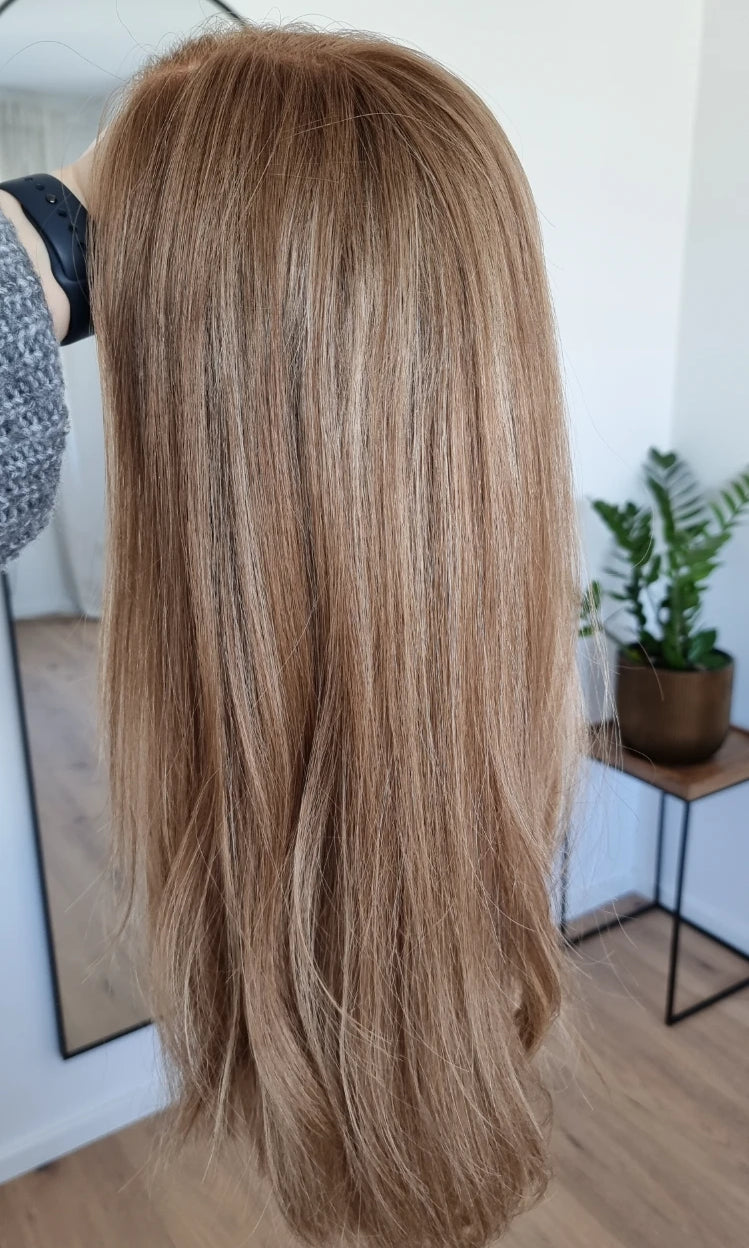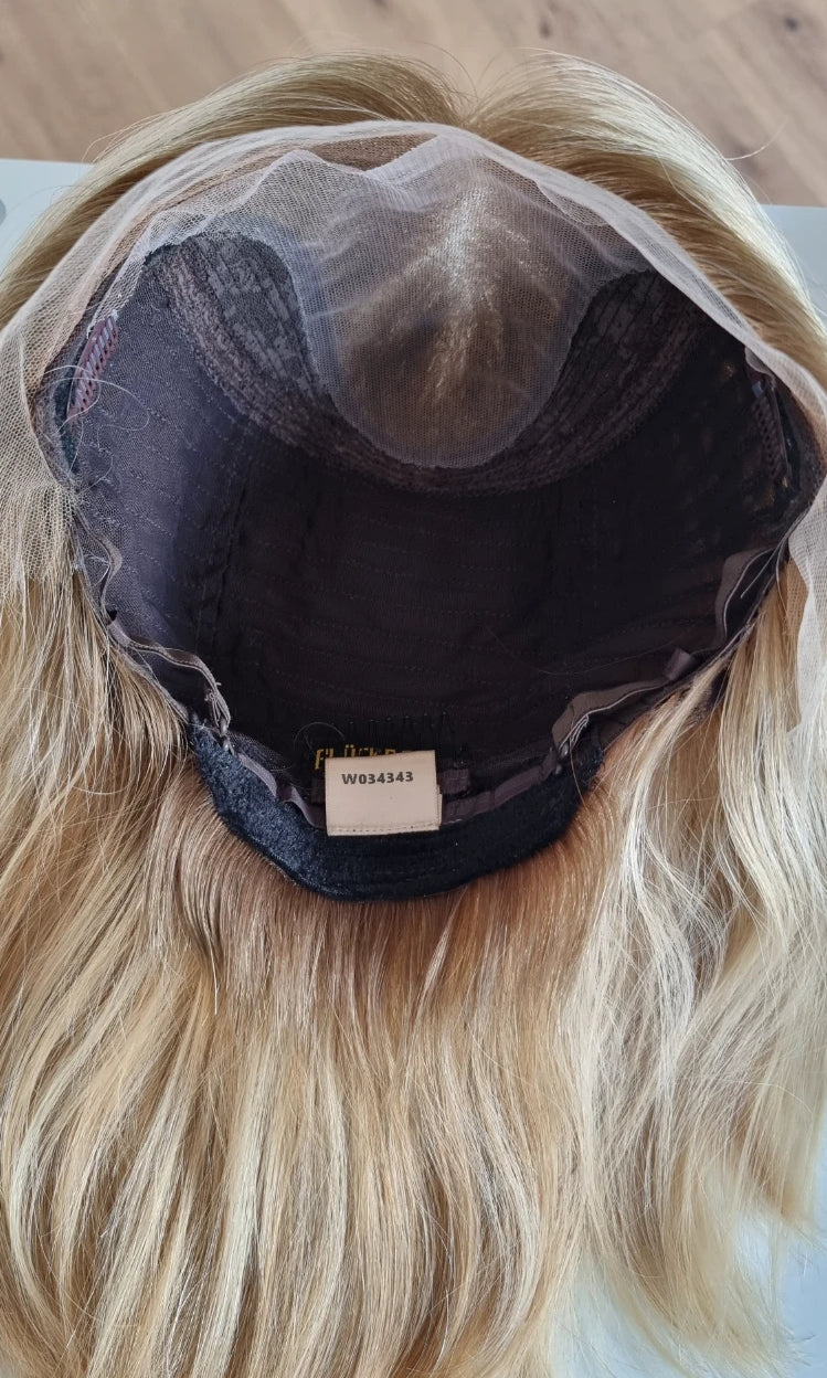 Im oberen Bereich befindet sich das sogenannte Lacetop: Hier werden die Haare ebenfalls einzeln eingeknüpft, was einen realistischen Scheitel und eine natürliche Haarbewegung ermöglicht.