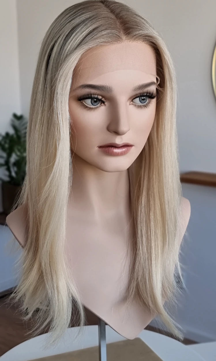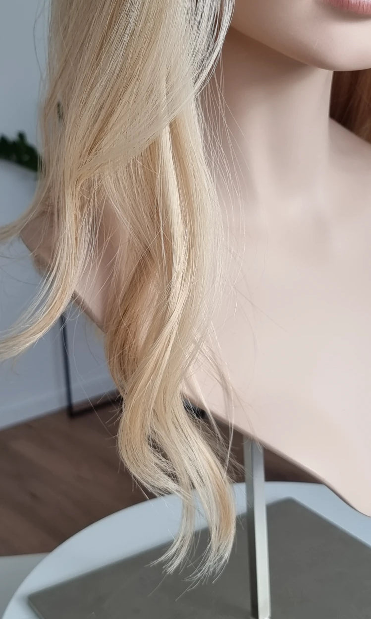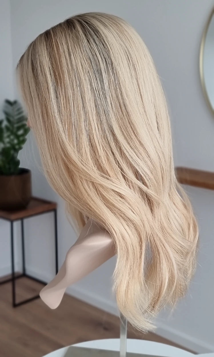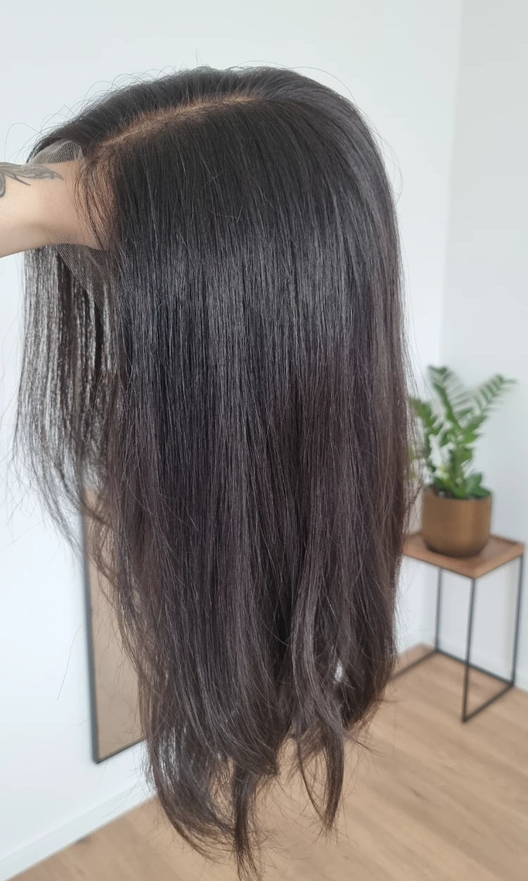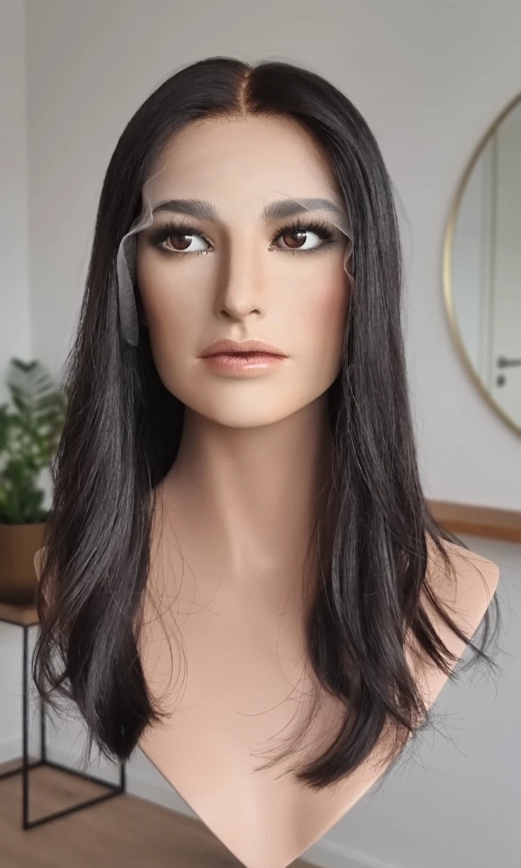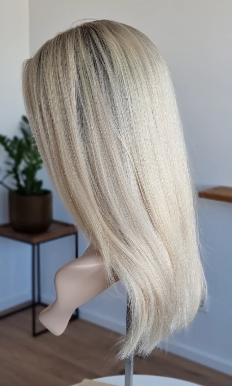 Im oberen Bereich befindet sich das sogenannte Lacetop: Hier werden die Haare ebenfalls einzeln eingeknüpft, was einen realistischen Scheitel und eine natürliche Haarbewegung ermöglicht.