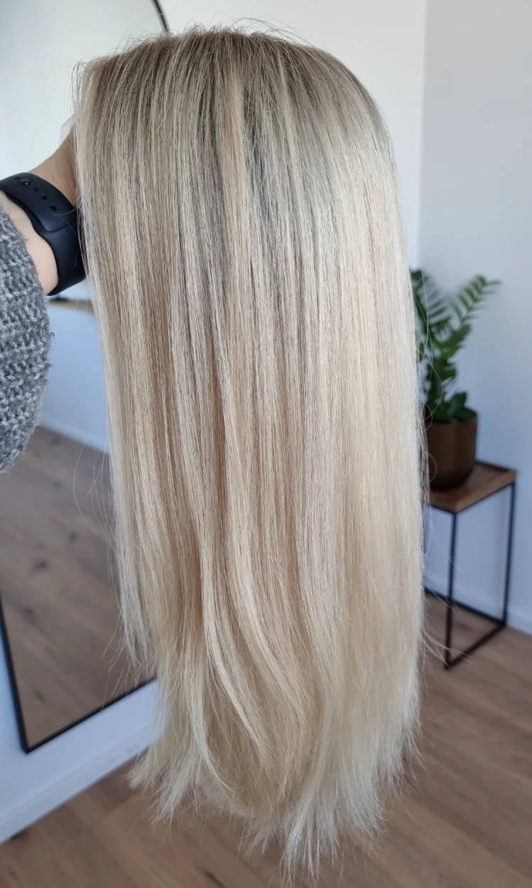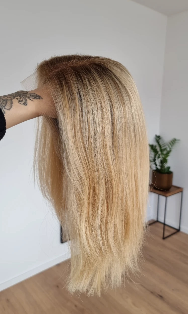 Das tägliche Handling wie Kämmen und Stylen ist unproblematisch, nur im Bereich des Lacetops und der Lacefront solltest du vorsichtig sein. Hier ist jedes Haar nur durch einen Knoten mit der Montur verbunden.