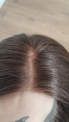 Die Knoten sind gebleicht, können allerdings nur bis zu einem gewissen Punkt blondiert werden, ohne die Integrität der Perücke zu gefährden. Da Haar ein Naturprodukt ist und somit natürlichen Schwankungen unterliegt, lassen sich manche Knoten besser aufhellen als andere. Sollten die Knoten nicht ganz aufgehellt werden können, kannst du sie mit hellem Puder oder unserem Perückenstift kaschieren.