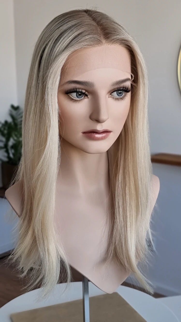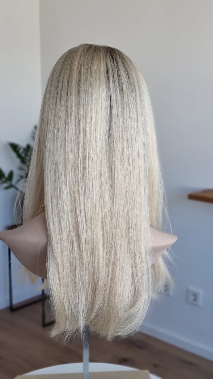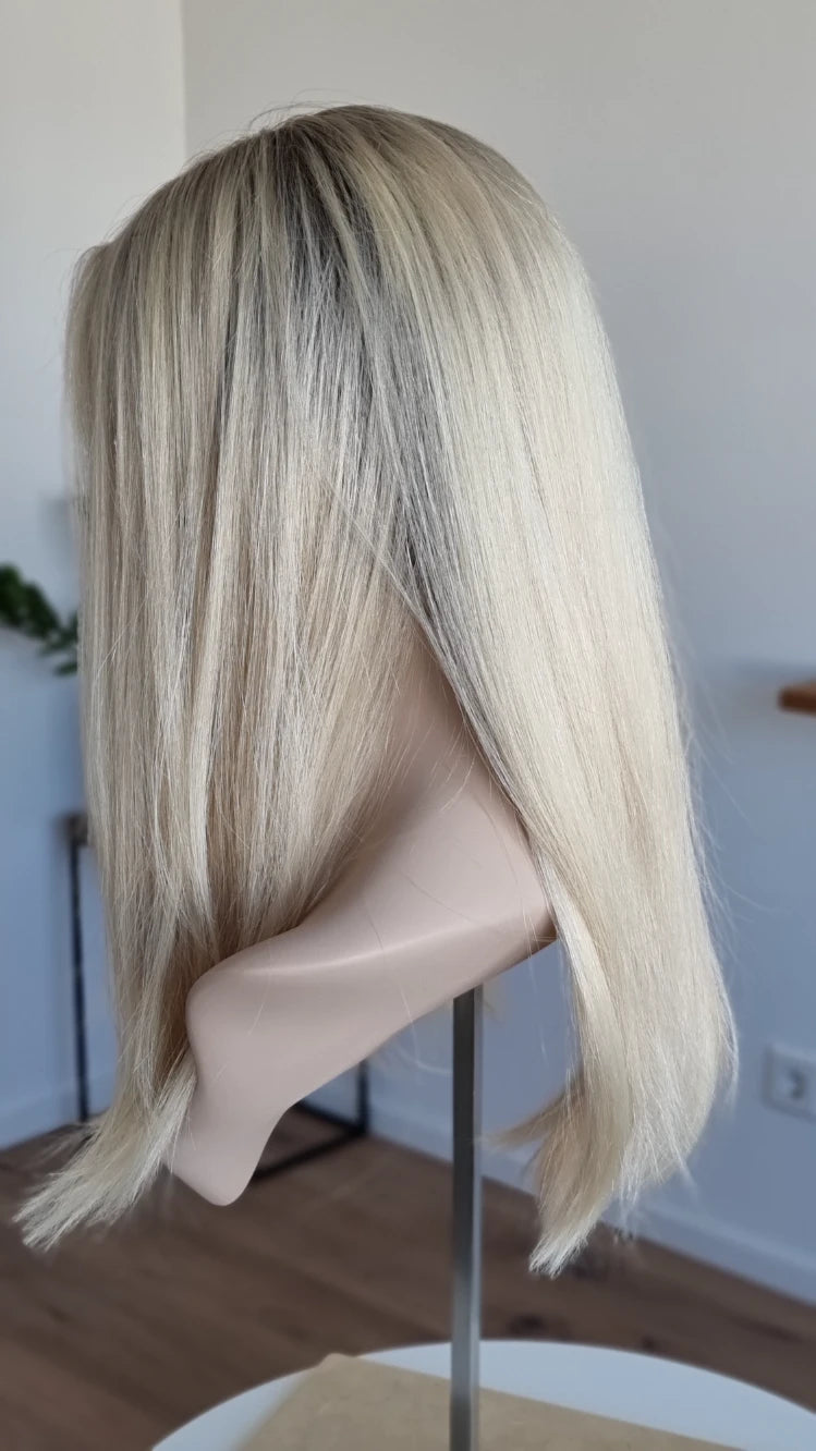 Die Knoten sind gebleicht, können allerdings nur bis zu einem gewissen Punkt blondiert werden, ohne die Integrität der Perücke zu gefährden. Da Haar ein Naturprodukt ist und somit natürlichen Schwankungen unterliegt, lassen sich manche Knoten besser aufhellen als andere. Sollten die Knoten nicht ganz aufgehellt werden können, kannst du sie mit hellem Puder oder unserem Perückenstift kaschieren.