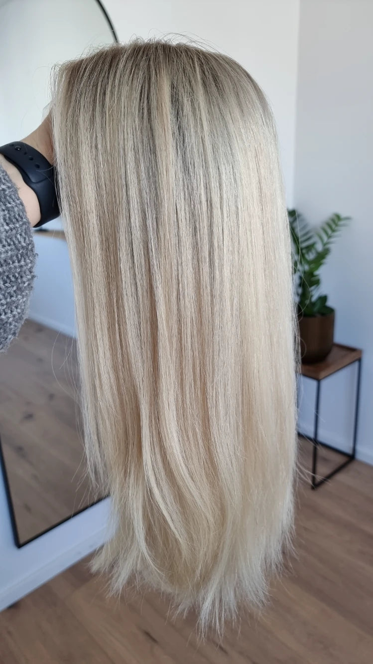 Hallo ihr Lieben,ich wollte euch noch erzählen, ich bin ja letzte Woche fast vom Stuhl gefallen als ich mein neues Schätzchen ausgepackt habe 😍 Die Farbe ist einfach ein absoluter Traum 😍 Ich kann euch gar nicht sagen wie glücklich ich bin! Das kühle Blond mit der zarten Balayage einfach zu 1000% meine Farbe und sie passt dazu auch noch wie angegossen 🥰 Ich bin einfach nur begeistert! ich schick euch bei Gelegenheit mal noch ein Bild 🫶🏻Vielen Dank und ich hoffe die Farbe gibt es bald auch als Topper ✊🏻✊🏻😍😍