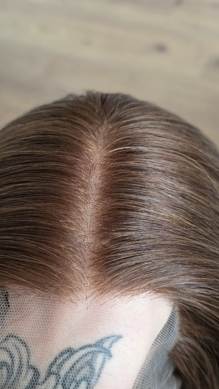Die Knoten sind gebleicht, können allerdings nur bis zu einem gewissen Punkt blondiert werden, ohne die Integrität der Perücke zu gefährden. Da Haar ein Naturprodukt ist und somit natürlichen Schwankungen unterliegt, lassen sich manche Knoten besser aufhellen als andere. Sollten die Knoten nicht ganz aufgehellt werden können, kannst du sie mit hellem Puder oder unserem Perückenstift kaschieren.