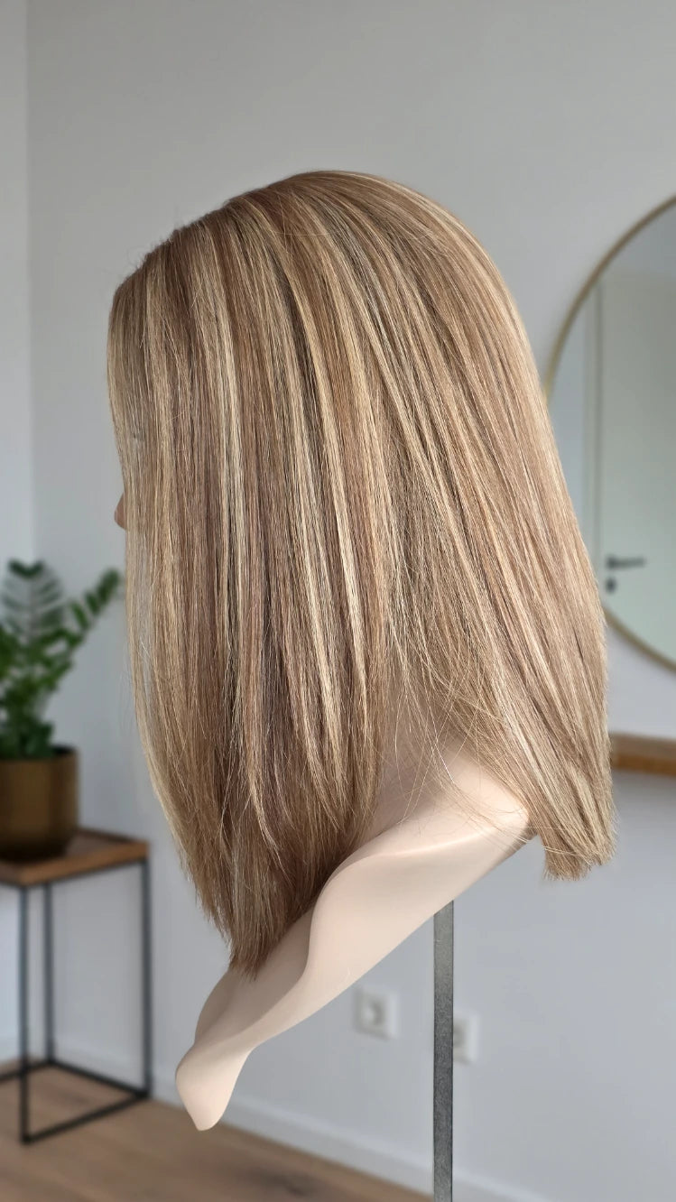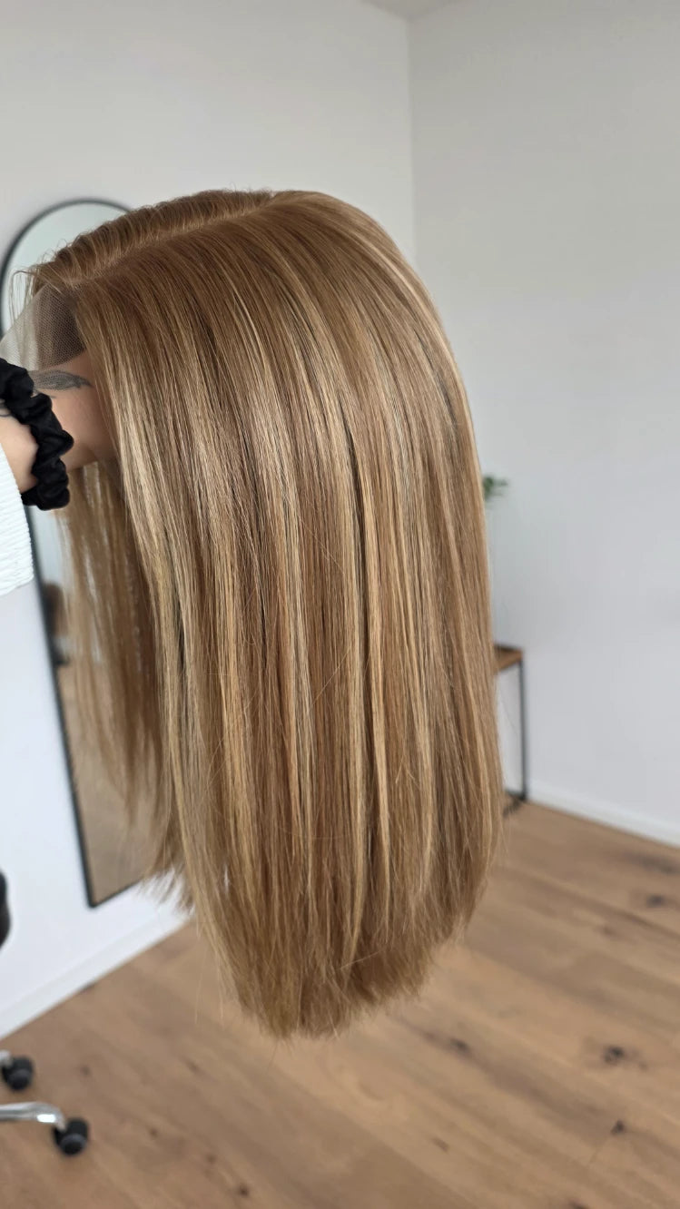 • Farbe neutrales Dunkelblond mit hellblonden Highlights