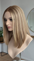 Die Knoten sind gebleicht, können allerdings nur bis zu einem gewissen Punkt blondiert werden, ohne die Integrität der Perücke zu gefährden. Da Haar ein Naturprodukt ist und somit natürlichen Schwankungen unterliegt, lassen sich manche Knoten besser aufhellen als andere. Sollten die Knoten nicht ganz aufgehellt werden können, kannst du sie mit hellem Puder oder unserem Perückenstift kaschieren.