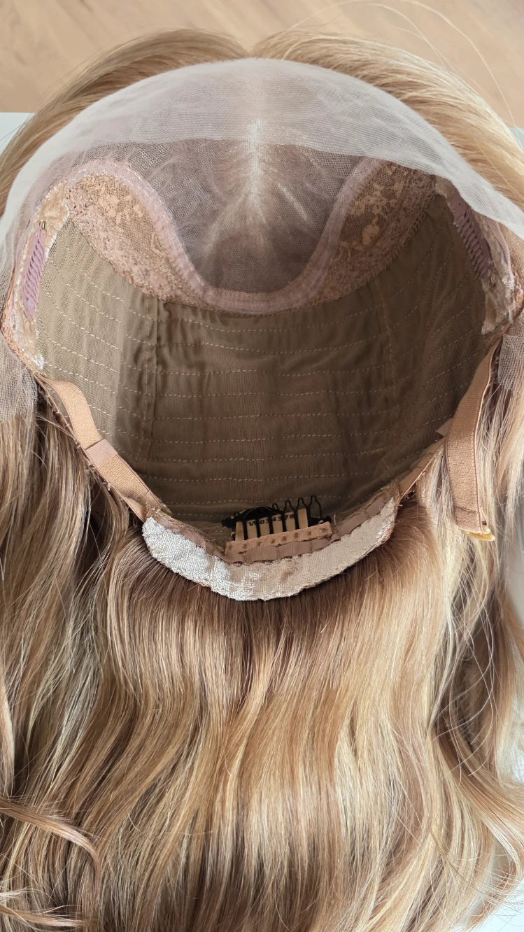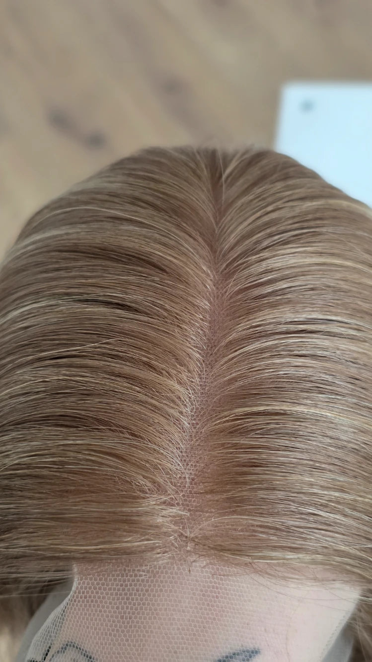 Die Knoten sind gebleicht, können allerdings nur bis zu einem gewissen Punkt blondiert werden, ohne die Integrität der Perücke zu gefährden. Da Haar ein Naturprodukt ist und somit natürlichen Schwankungen unterliegt, lassen sich manche Knoten besser aufhellen als andere. Sollten die Knoten nicht ganz aufgehellt werden können, kannst du sie mit hellem Puder oder unserem Perückenstift kaschieren.