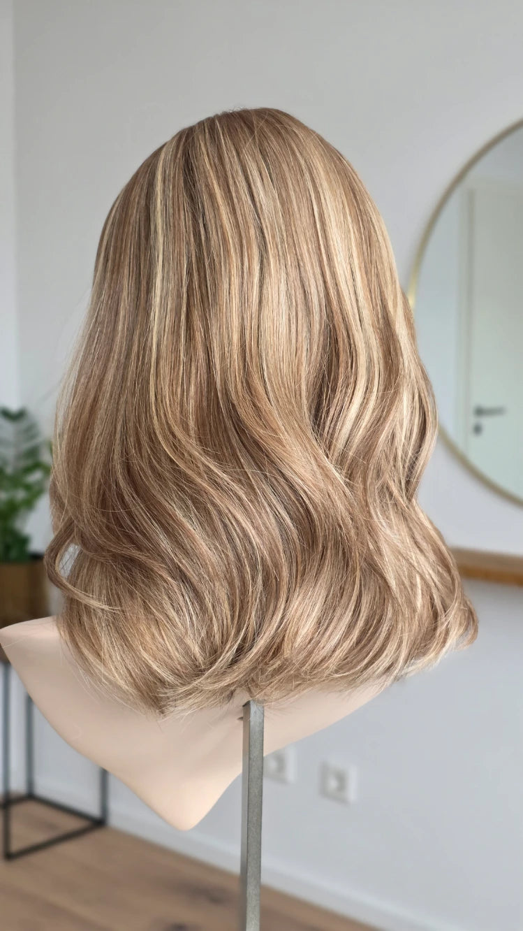 - Farbe neutrales Dunkelblond mit hellblonden Highlights