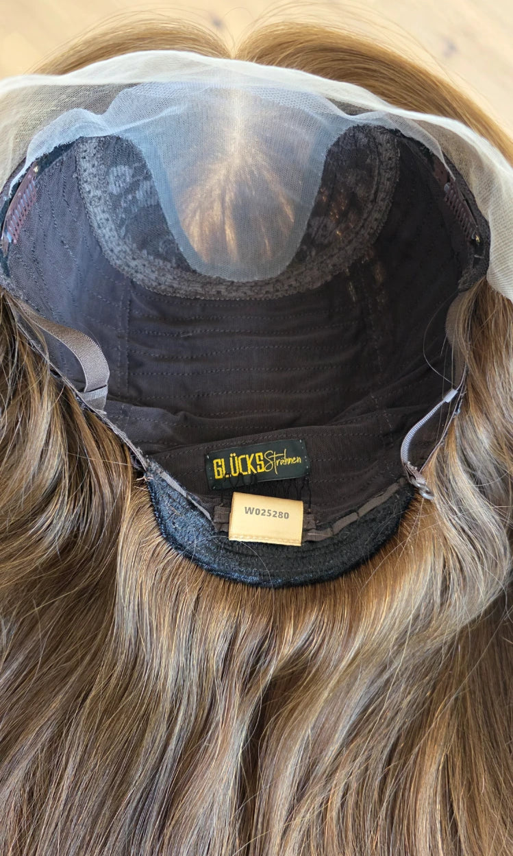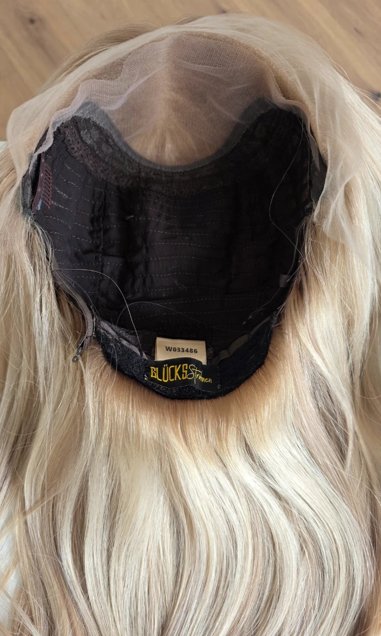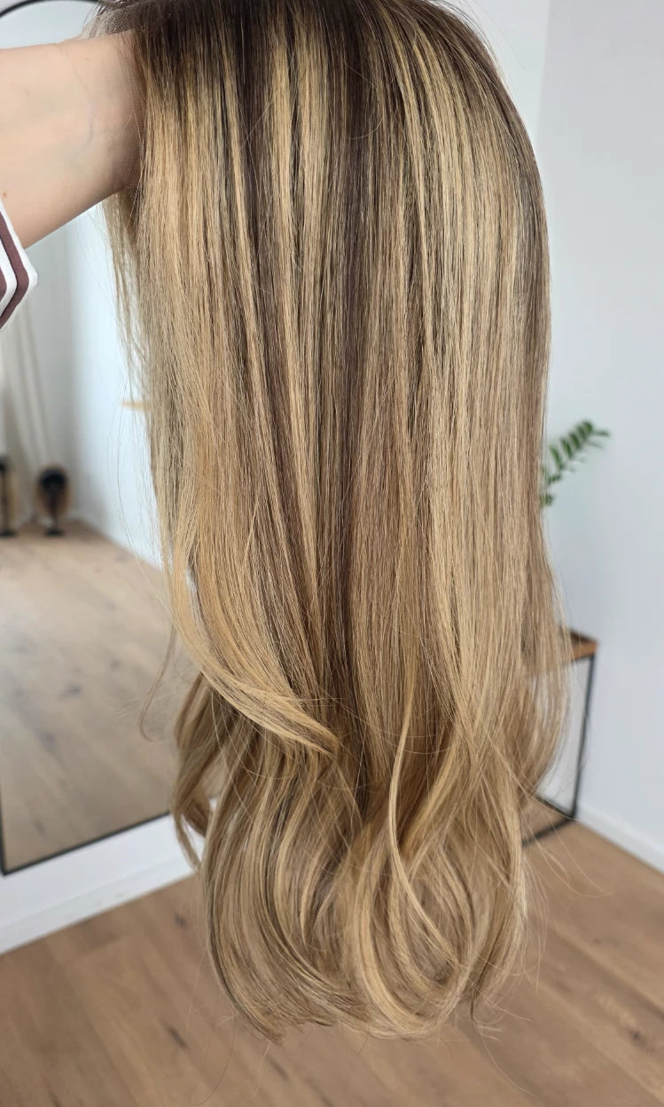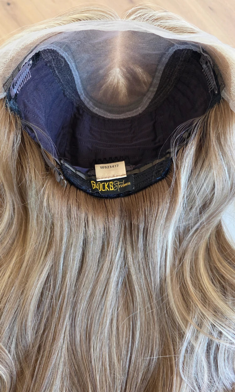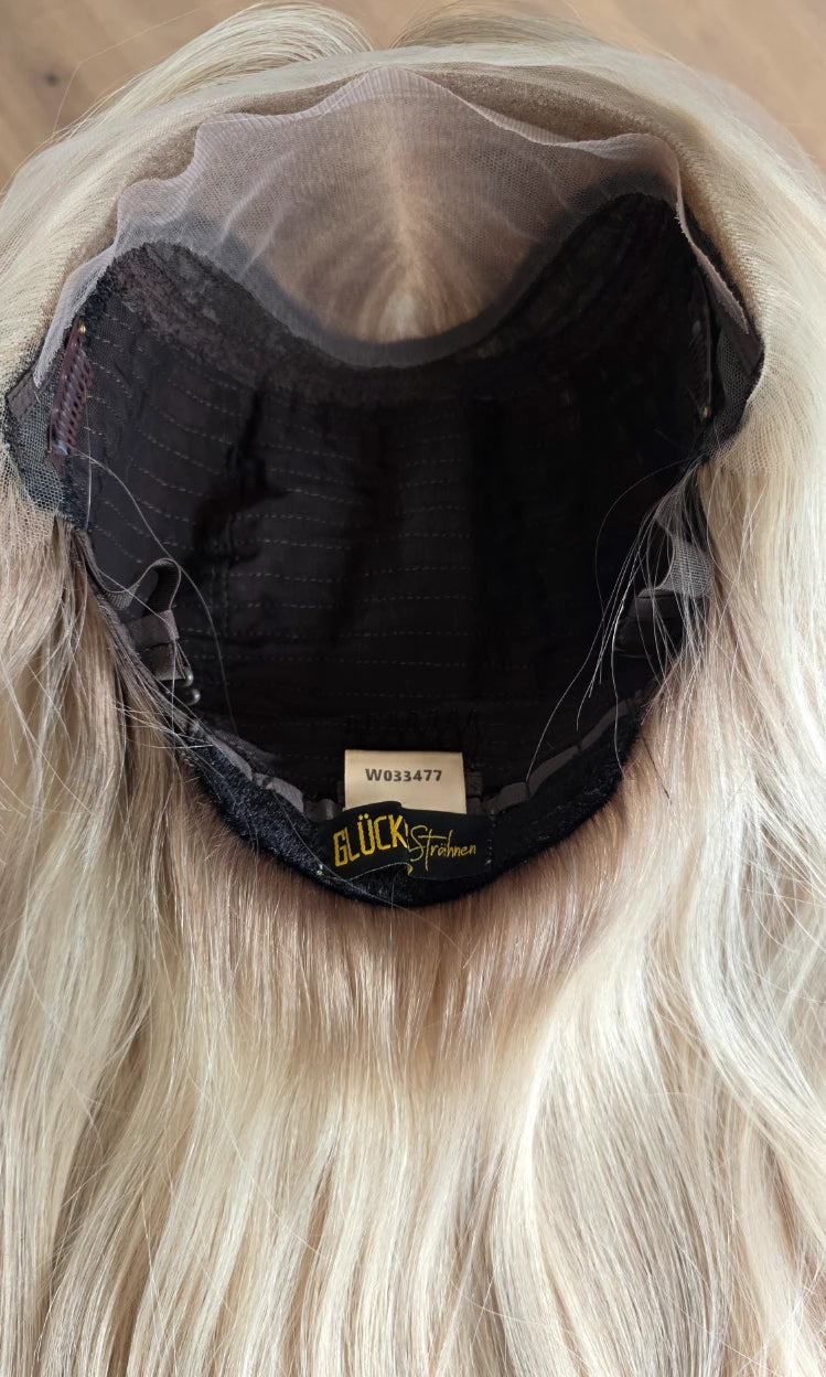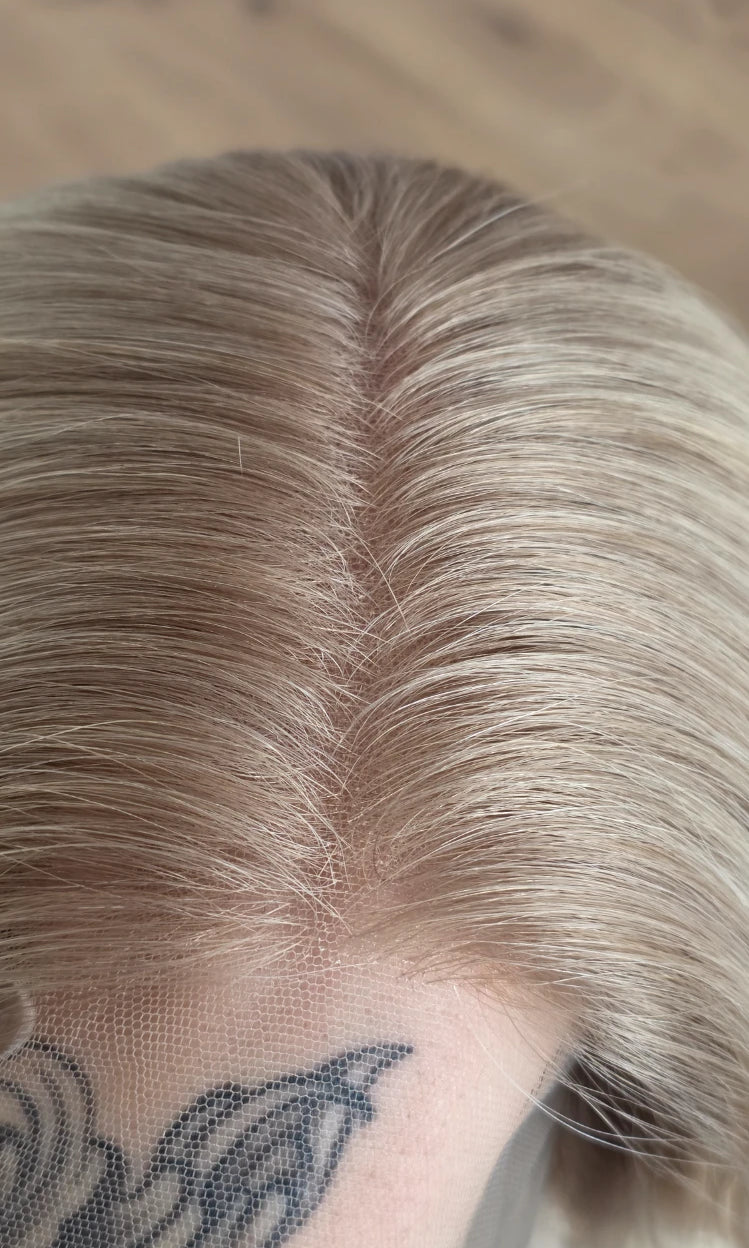 Im oberen Bereich befindet sich das sogenannte Lacetop: Hier werden die Haare ebenfalls einzeln eingeknüpft, was einen realistischen Scheitel und eine natürliche Haarbewegung ermöglicht.