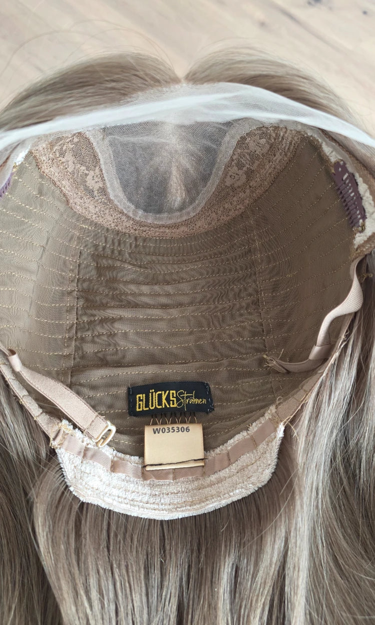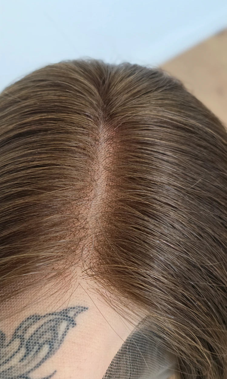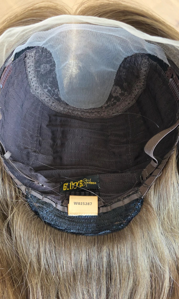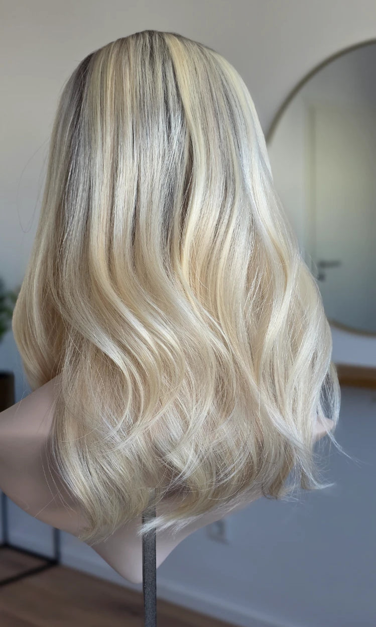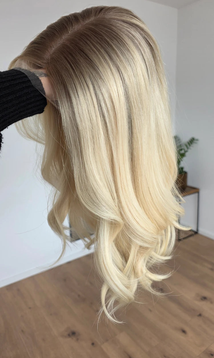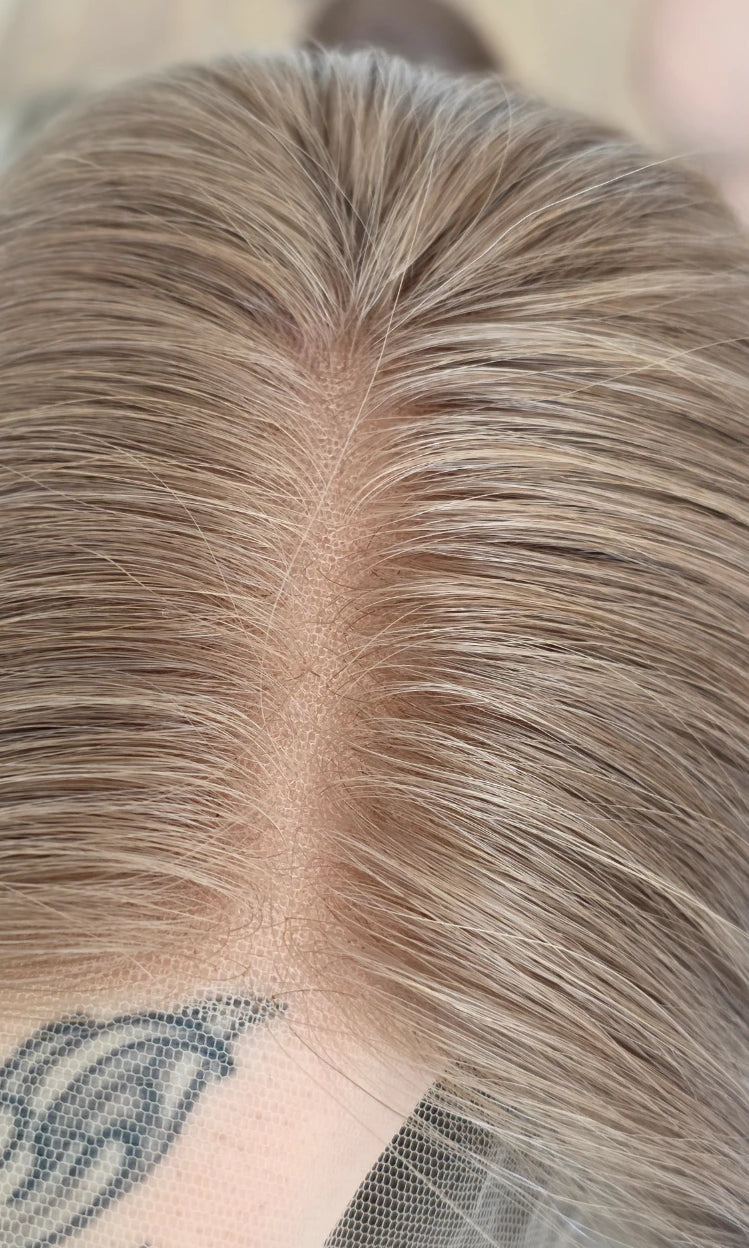 Im oberen Bereich befindet sich das sogenannte Lacetop: Hier werden die Haare ebenfalls einzeln eingeknüpft, was einen realistischen Scheitel und eine natürliche Haarbewegung ermöglicht.