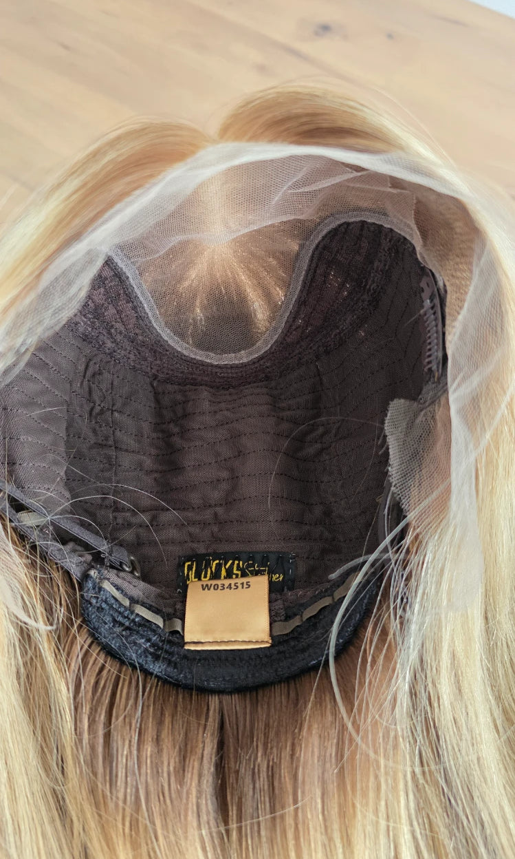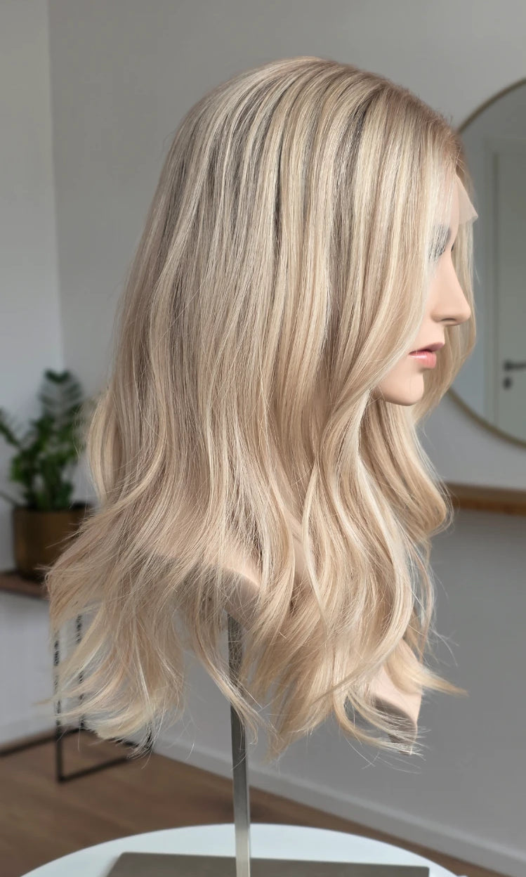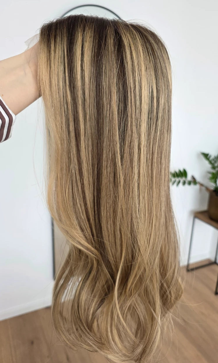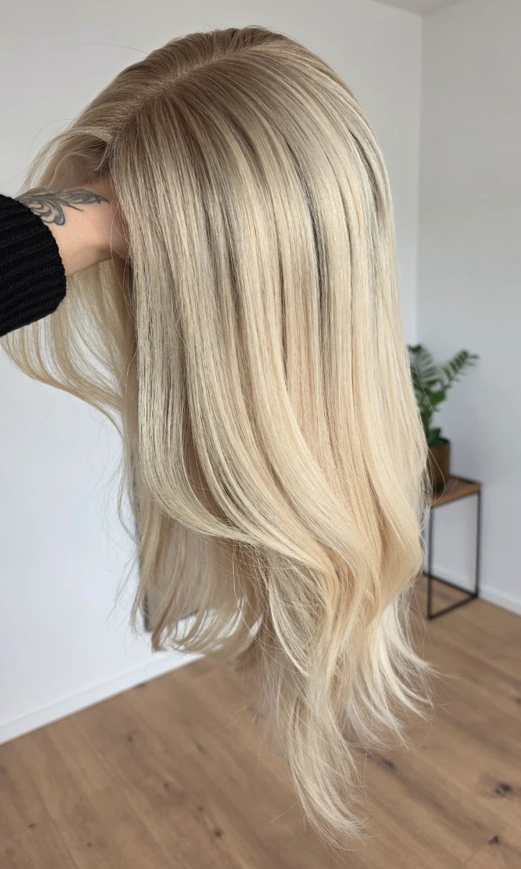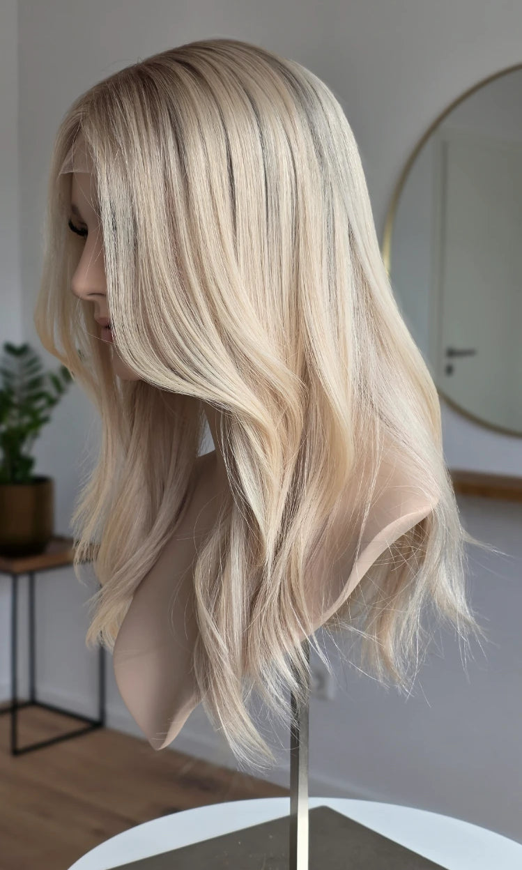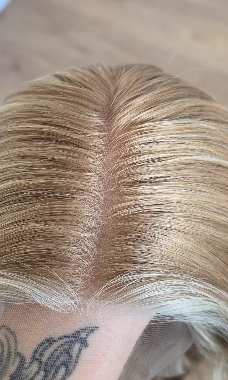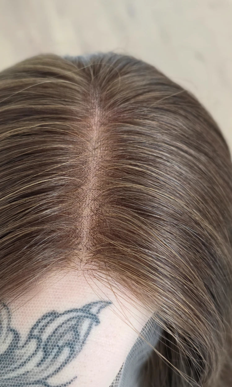 Im oberen Bereich befindet sich das sogenannte Lacetop: Hier werden die Haare ebenfalls einzeln eingeknüpft, was einen realistischen Scheitel und eine natürliche Haarbewegung ermöglicht.