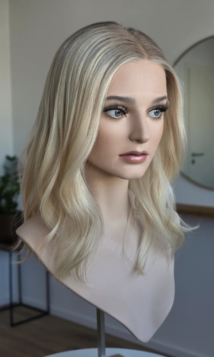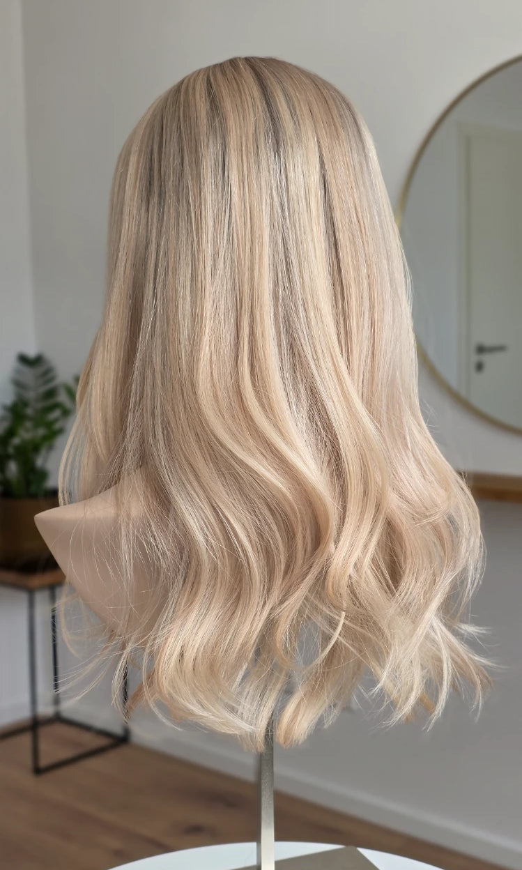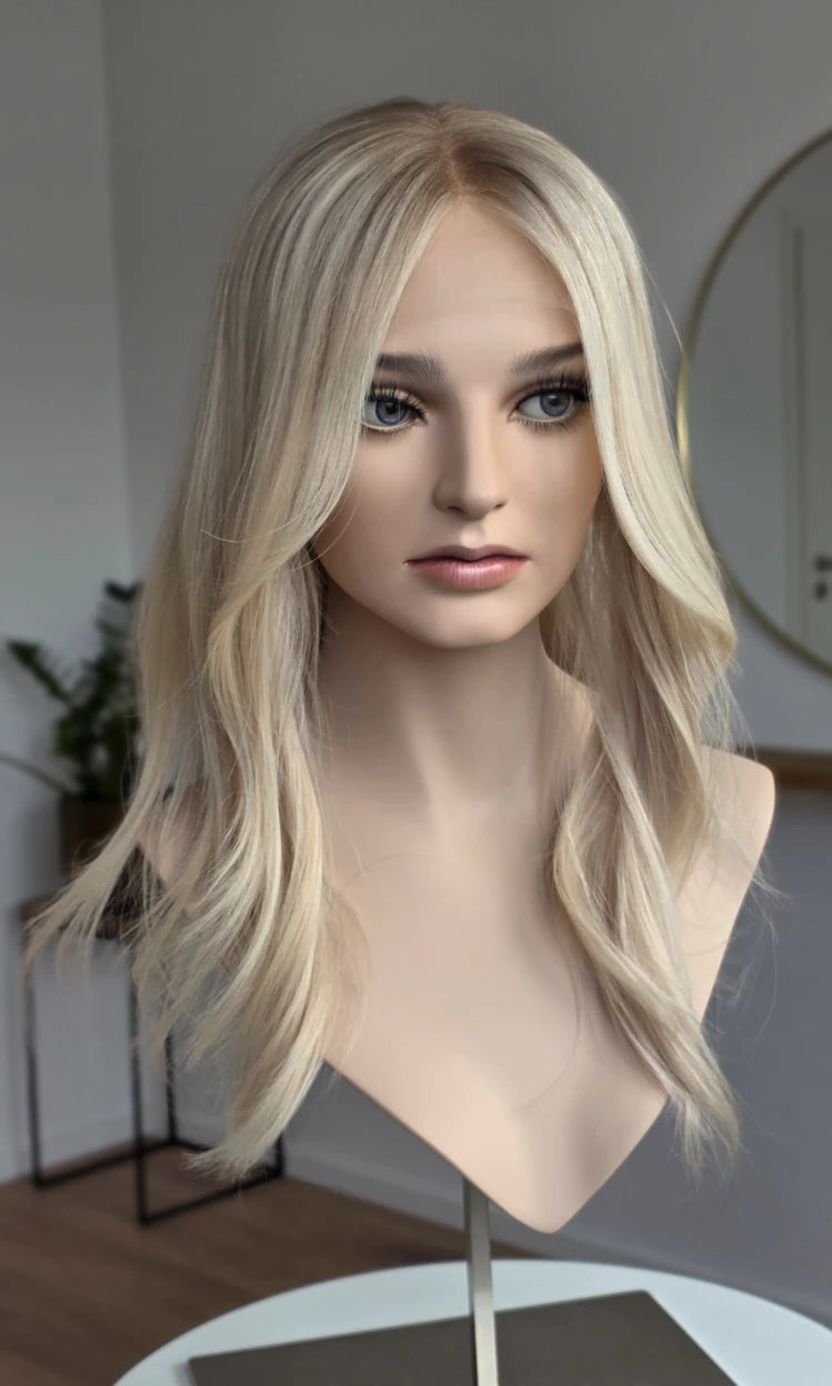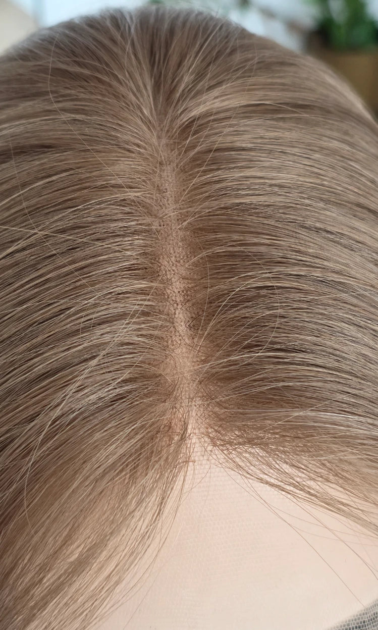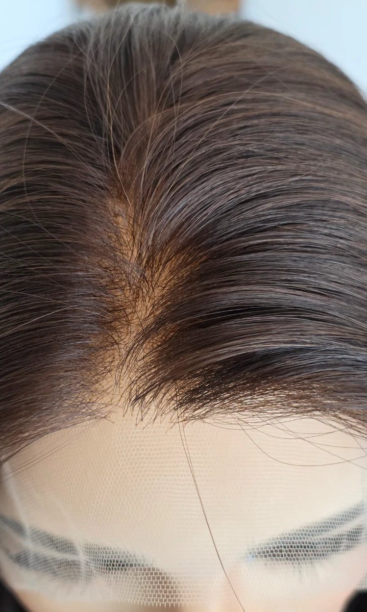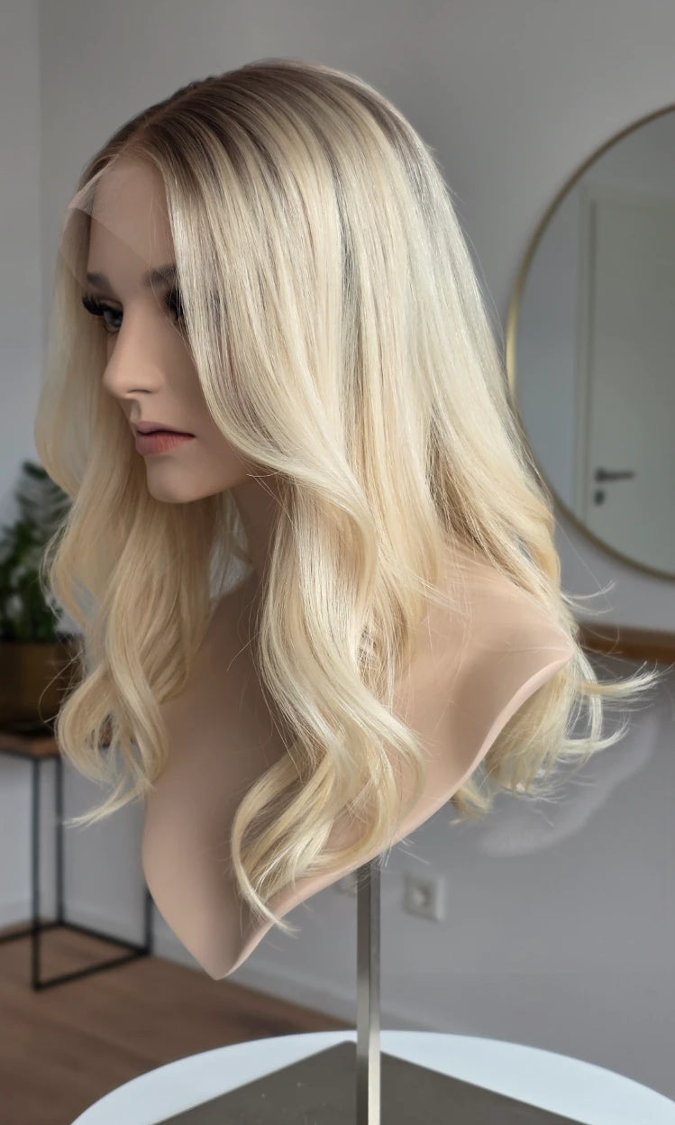 Im oberen Bereich befindet sich das sogenannte Lacetop: Hier werden die Haare ebenfalls einzeln eingeknüpft, was einen realistischen Scheitel und eine natürliche Haarbewegung ermöglicht.