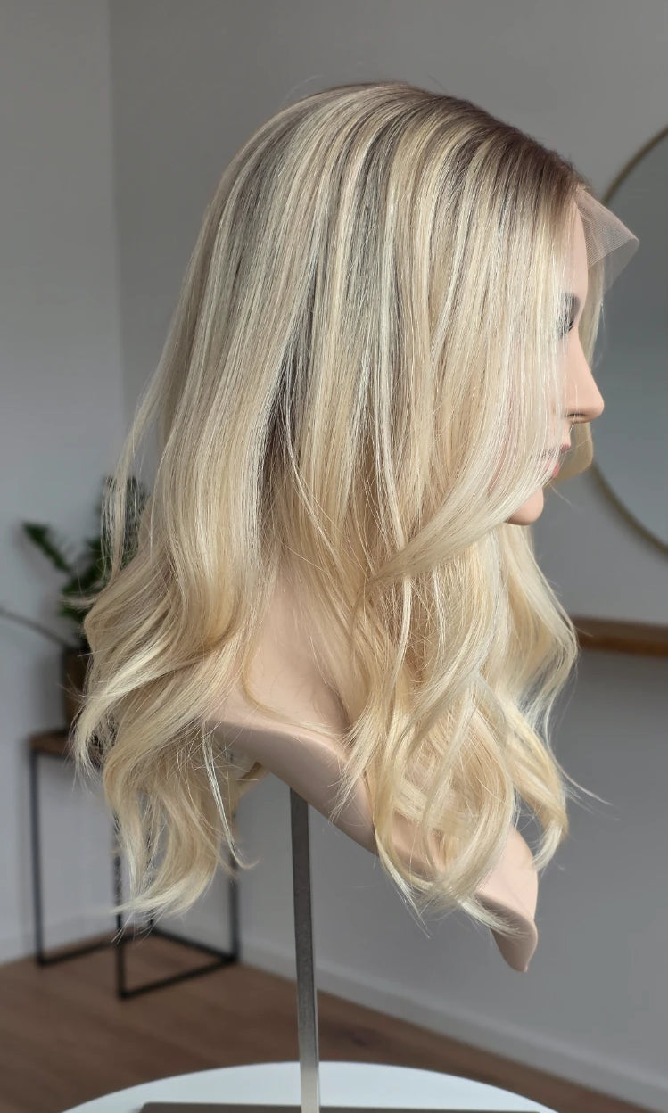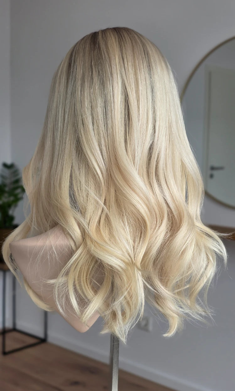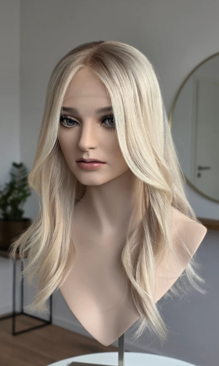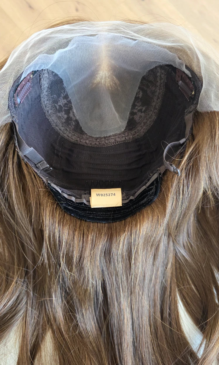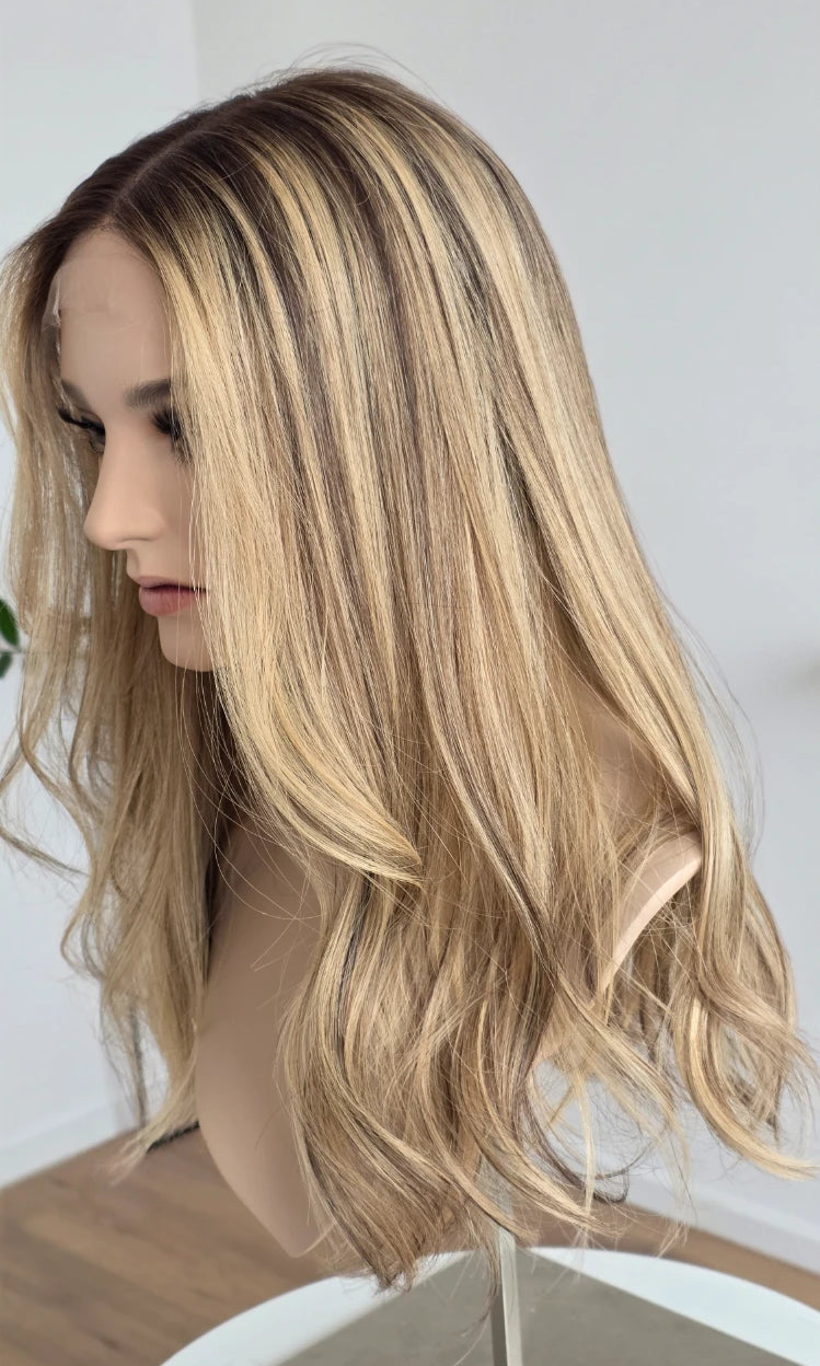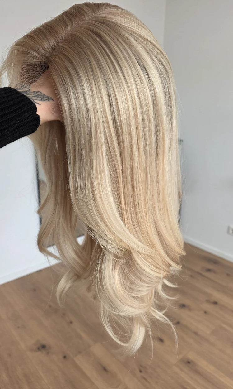 Im oberen Bereich befindet sich das sogenannte Lacetop: Hier werden die Haare ebenfalls einzeln eingeknüpft, was einen realistischen Scheitel und eine natürliche Haarbewegung ermöglicht.