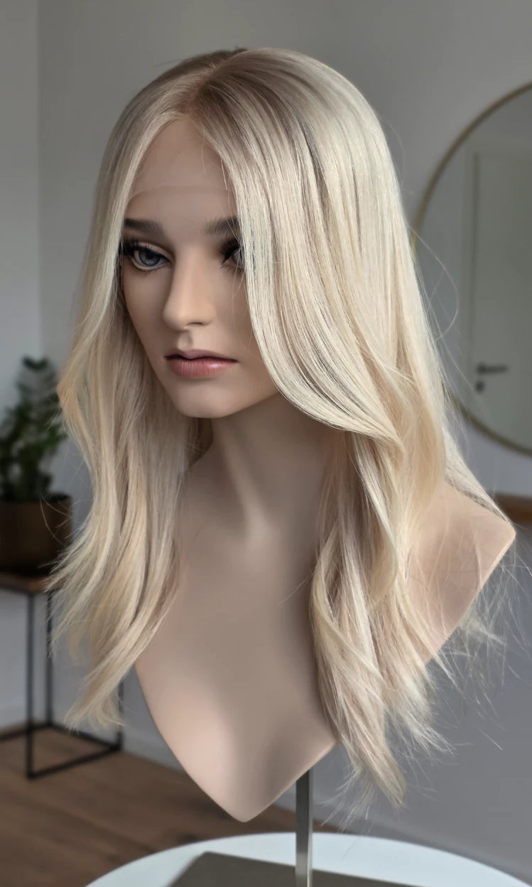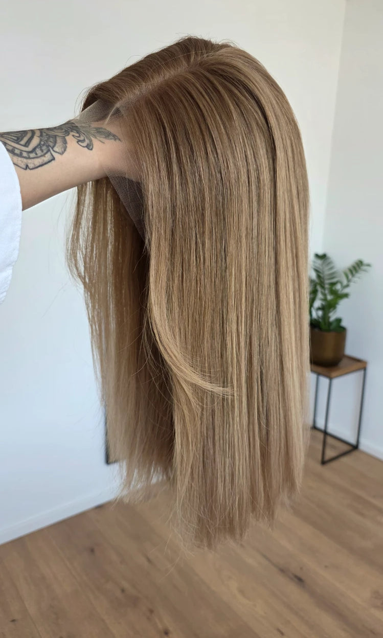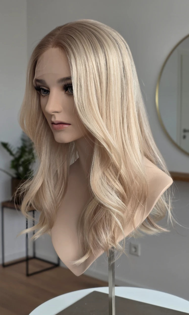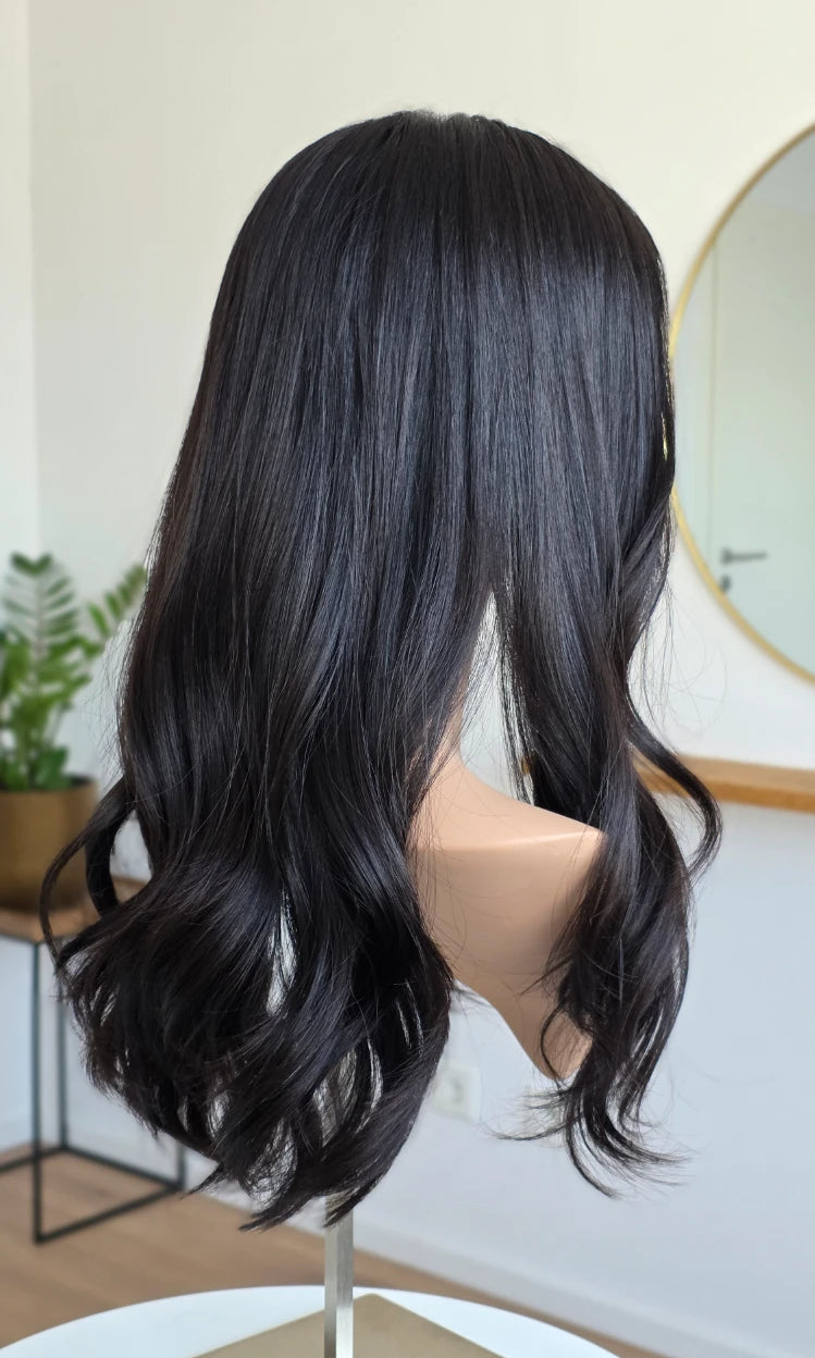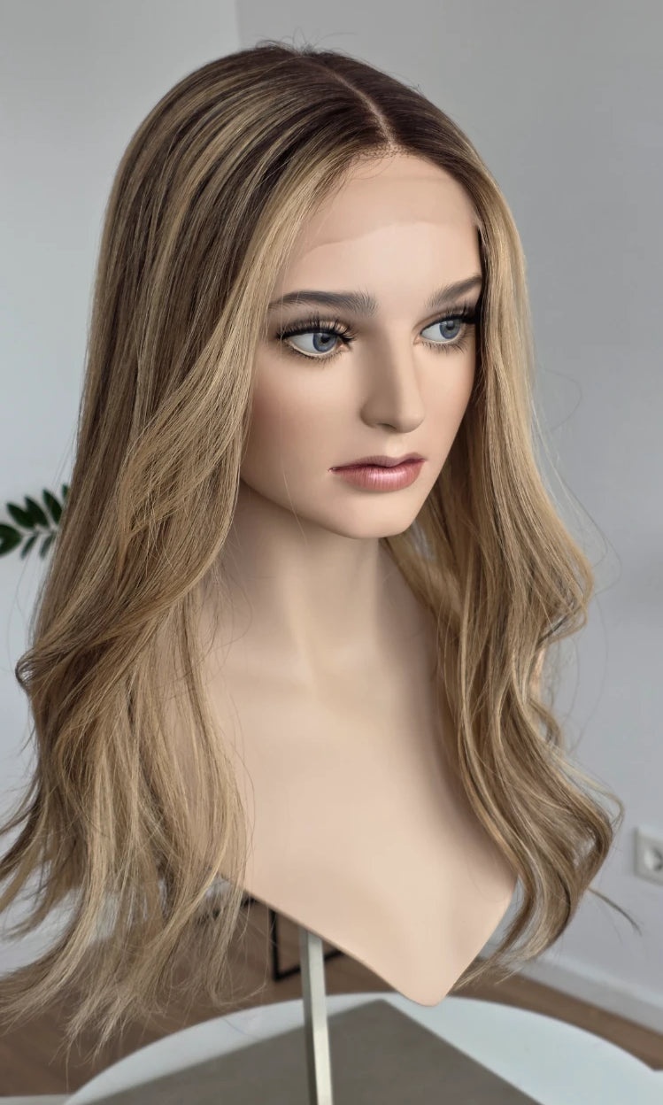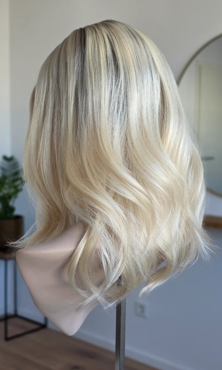 Im oberen Bereich befindet sich das sogenannte Lacetop: Hier werden die Haare ebenfalls einzeln eingeknüpft, was einen realistischen Scheitel und eine natürliche Haarbewegung ermöglicht.