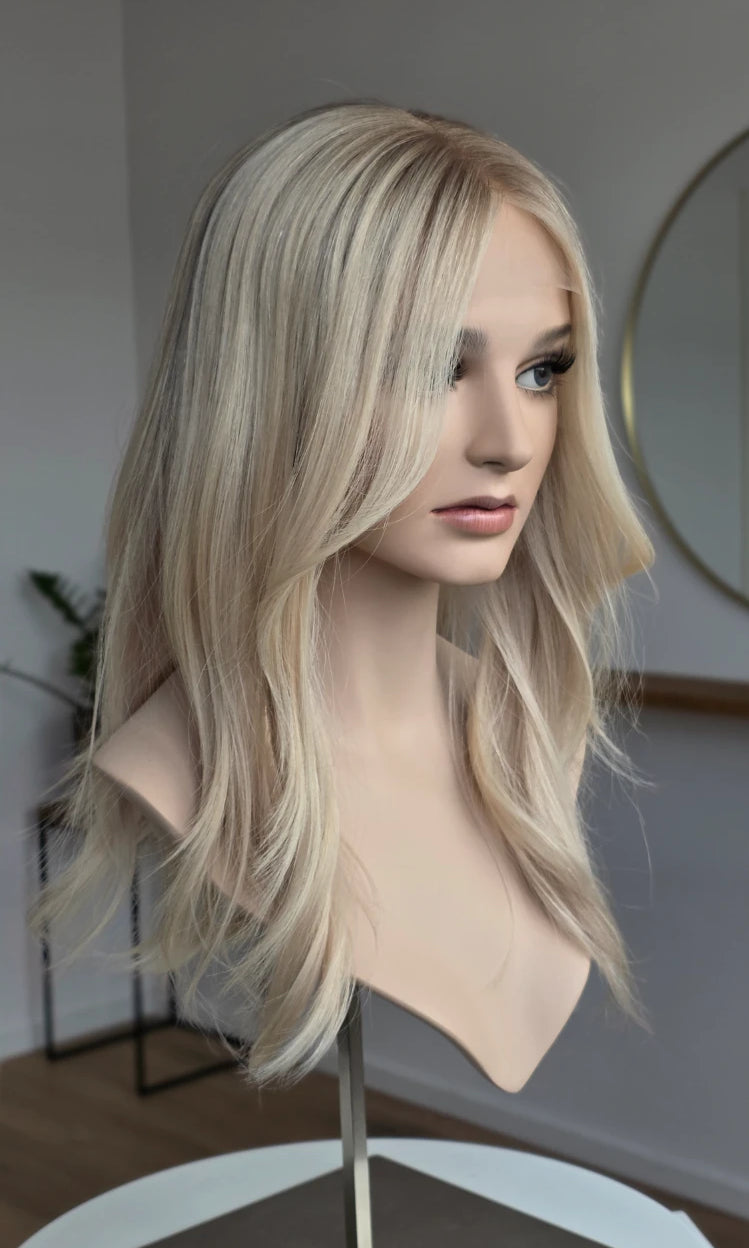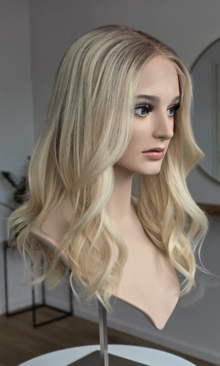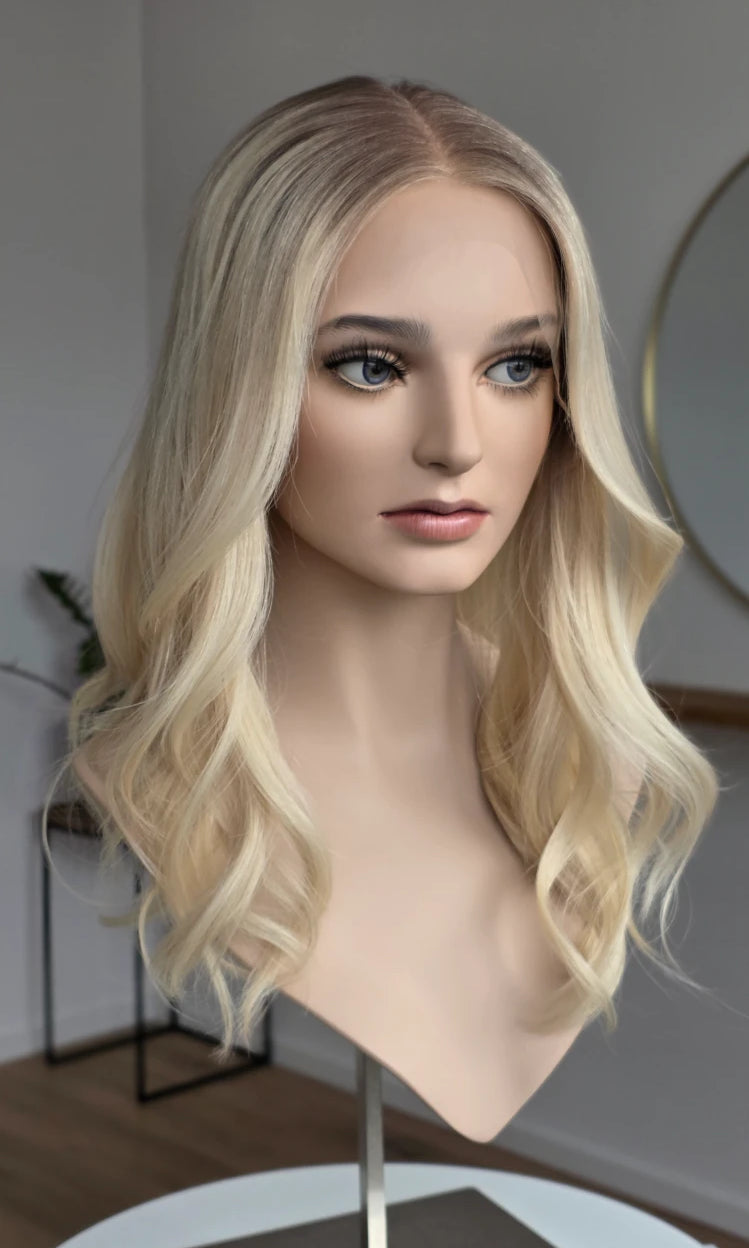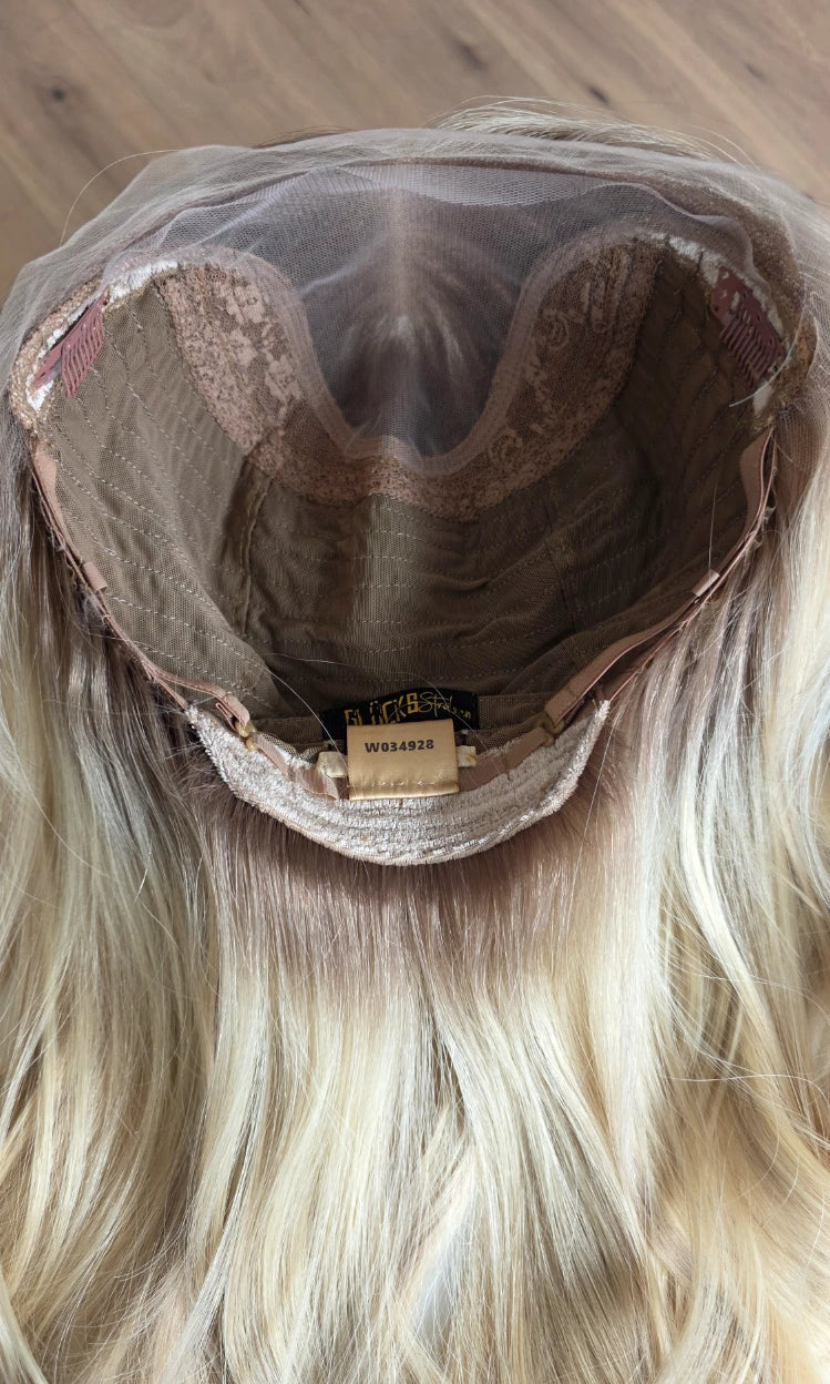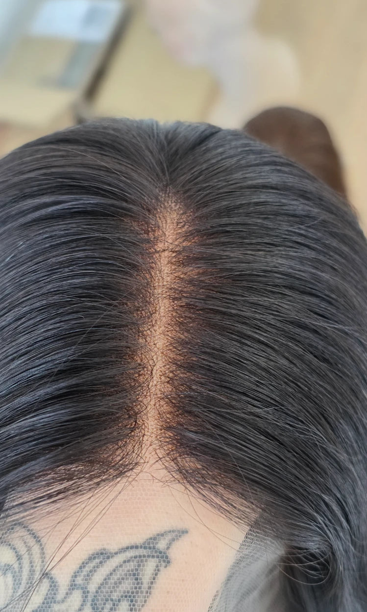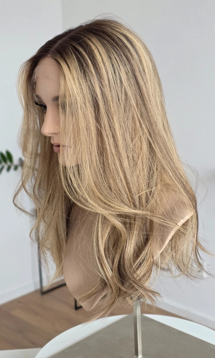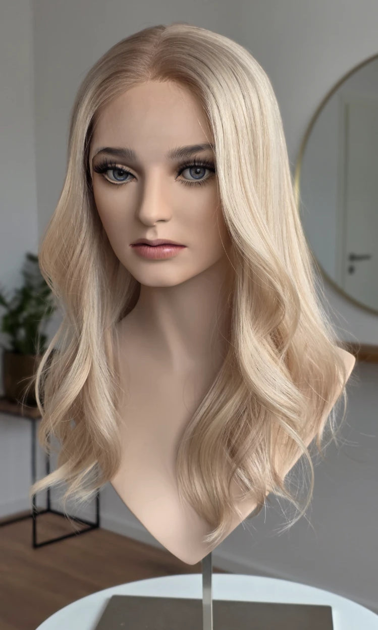 Im oberen Bereich befindet sich das sogenannte Lacetop: Hier werden die Haare ebenfalls einzeln eingeknüpft, was einen realistischen Scheitel und eine natürliche Haarbewegung ermöglicht.