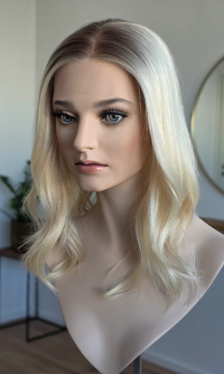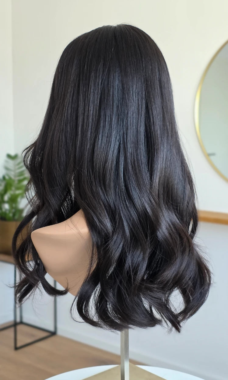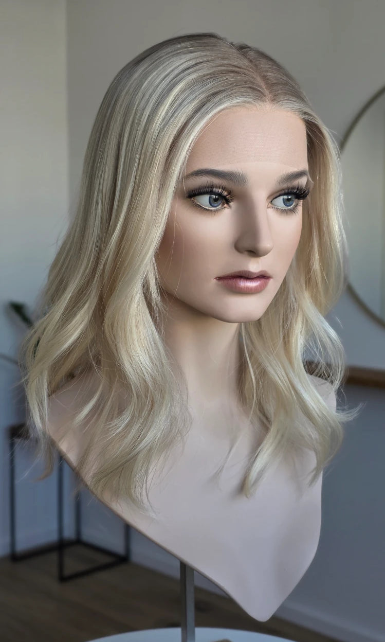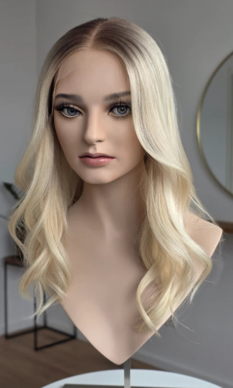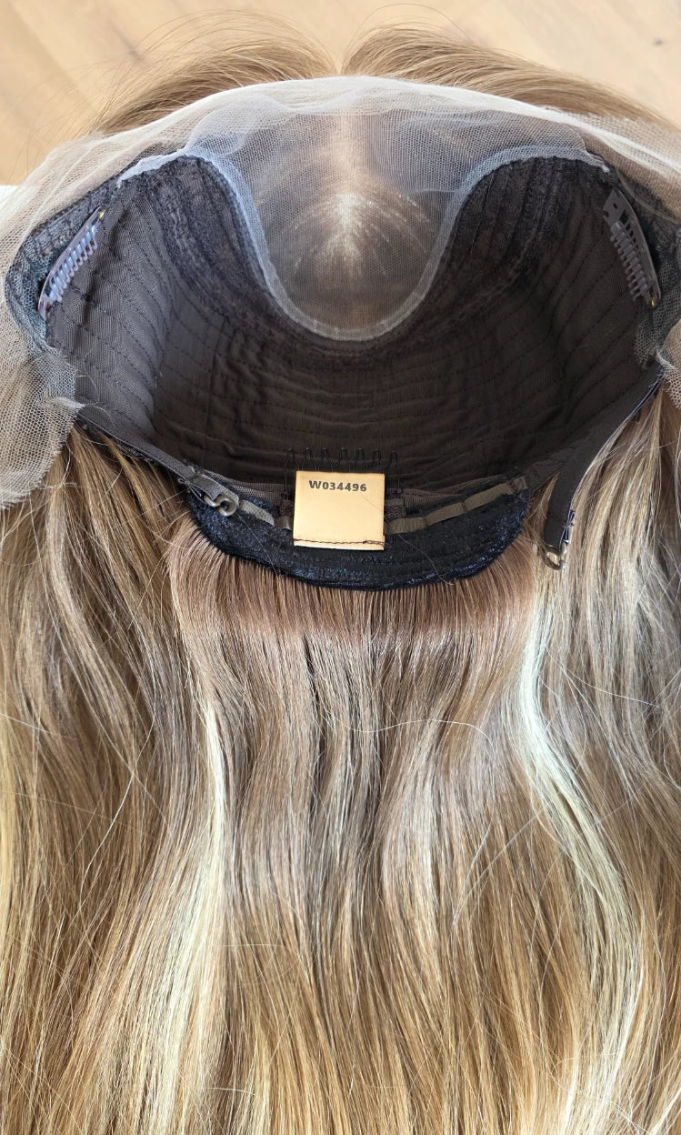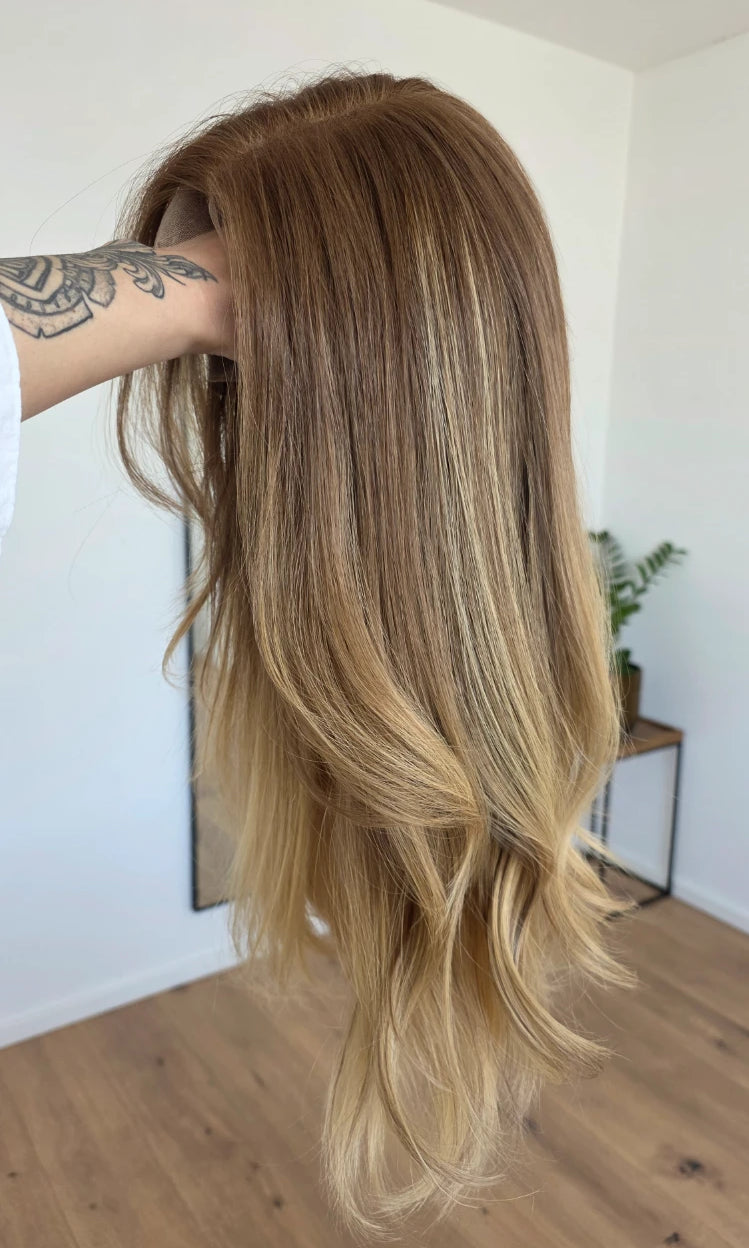 Im oberen Bereich befindet sich das sogenannte Lacetop: Hier werden die Haare ebenfalls einzeln eingeknüpft, was einen realistischen Scheitel und eine natürliche Haarbewegung ermöglicht.