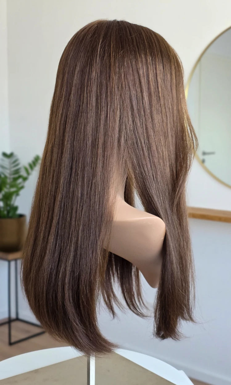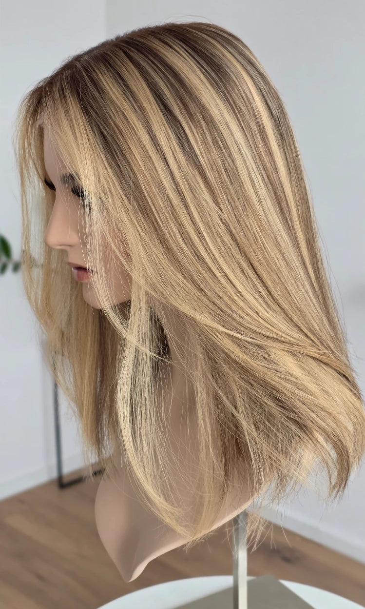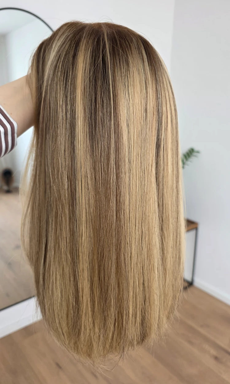 Unsere Tressen-Perücken bieten eine komfortable und natürliche Lösung für Frauen, die an Haarausfall durch medizinische Ursachen (wie z.B. Chemotherapie, Alepecia Areata) oder diffusen Haarausfall leiden.