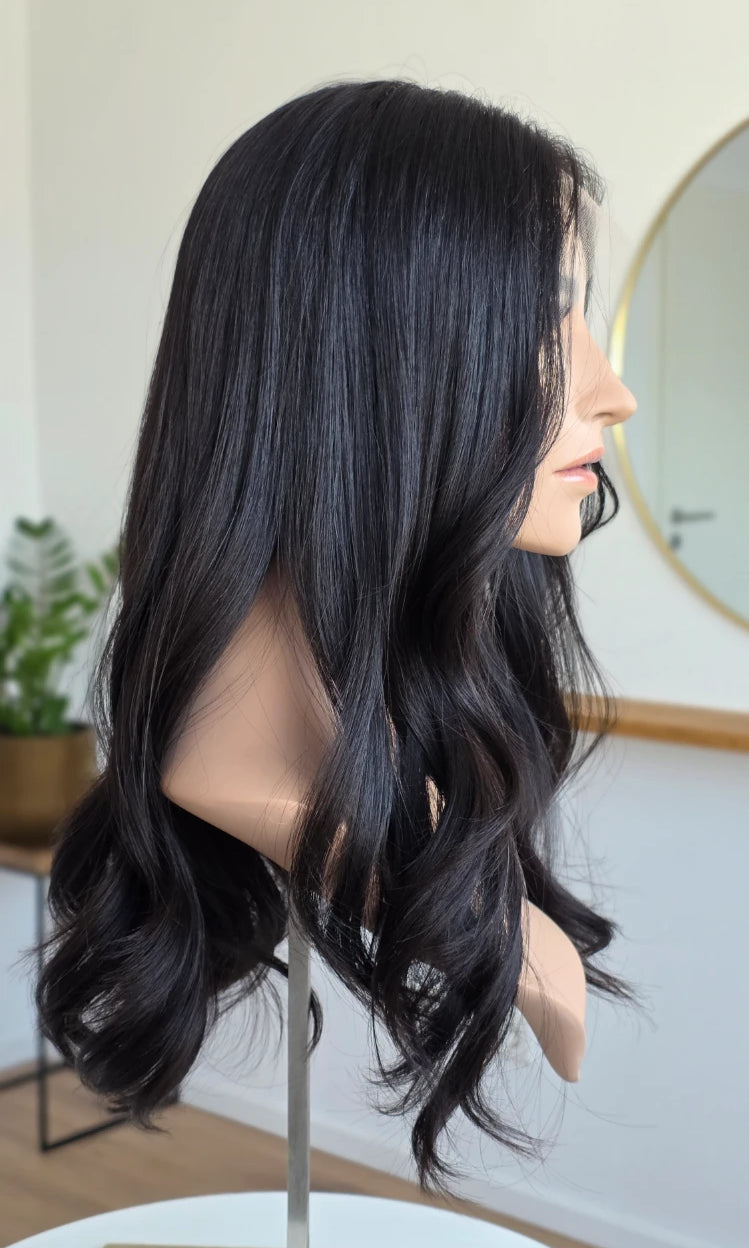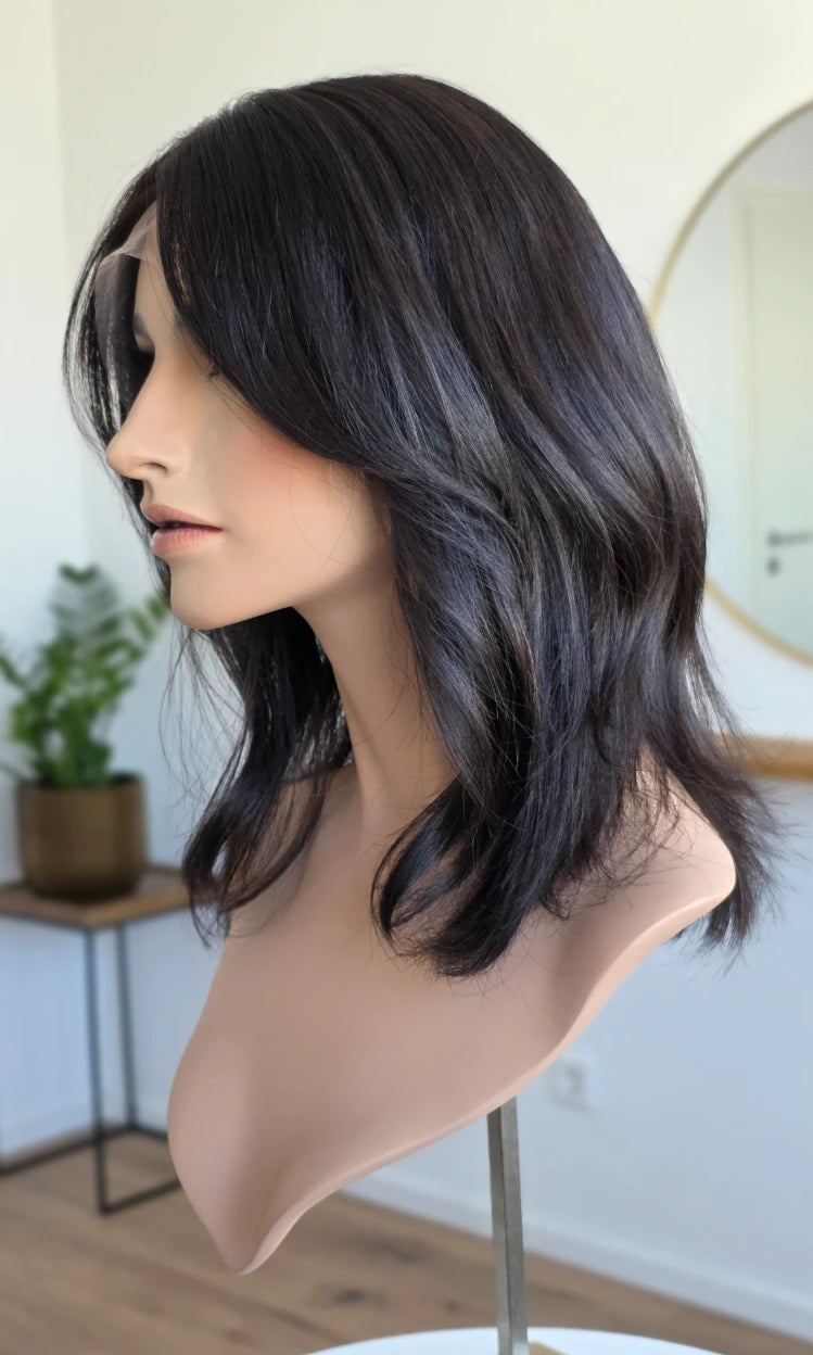 Ob lässig offen, halb hochgesteckt oder i Zopf - dank Lacefront und natürlicher Haarbewegung lassen sich verschiedene Looks realisieren.