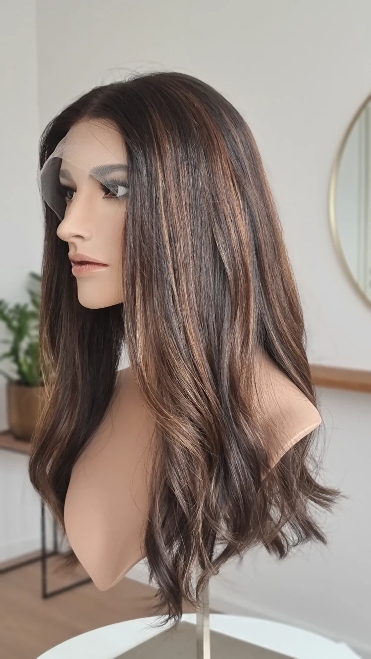 Lacetop-Perücke Dunkelbraun Balayage | Größe S | 45-50 cm | W023738m