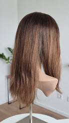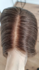 Die Knoten sind gebleicht, können allerdings nur bis zu einem gewissen Punkt blondiert werden, ohne die Integrität der Perücke zu gefährden. Da Haar ein Naturprodukt ist und somit natürlichen Schwankungen unterliegt, lassen sich manche Knoten besser aufhellen als andere. Sollten die Knoten nicht ganz aufgehellt werden können, kannst du sie mit hellem Puder oder unserem Perückenstift kaschieren.