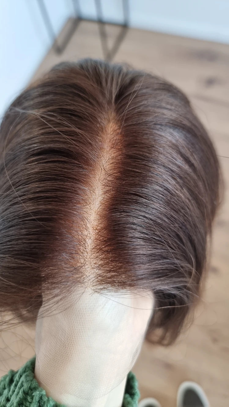 Die Knoten sind gebleicht, können allerdings nur bis zu einem gewissen Punkt blondiert werden, ohne die Integrität der Perücke zu gefährden. Da Haar ein Naturprodukt ist und somit natürlichen Schwankungen unterliegt, lassen sich manche Knoten besser aufhellen als andere. Sollten die Knoten nicht ganz aufgehellt werden können, kannst du sie mit hellem Puder oder unserem Perückenstift kaschieren.