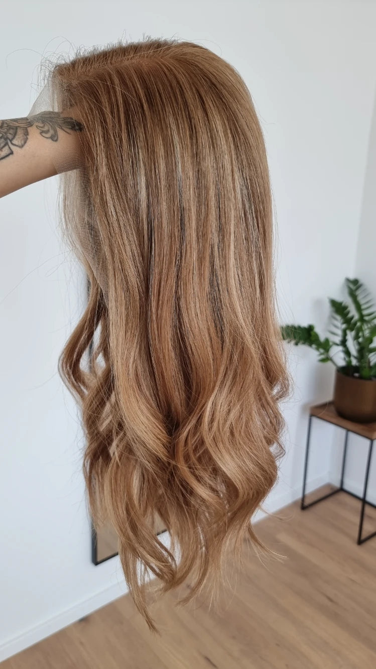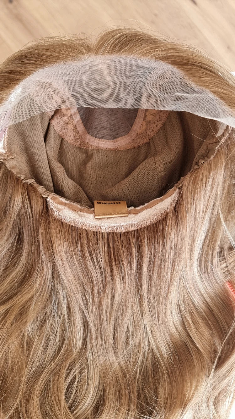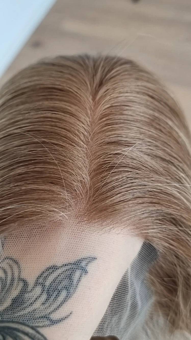 Die Knoten sind gebleicht, können allerdings nur bis zu einem gewissen Punkt blondiert werden, ohne die Integrität der Perücke zu gefährden. Da Haar ein Naturprodukt ist und somit natürlichen Schwankungen unterliegt, lassen sich manche Knoten besser aufhellen als andere. Sollten die Knoten nicht ganz aufgehellt werden können, kannst du sie mit hellem Puder oder unserem Perückenstift kaschieren.