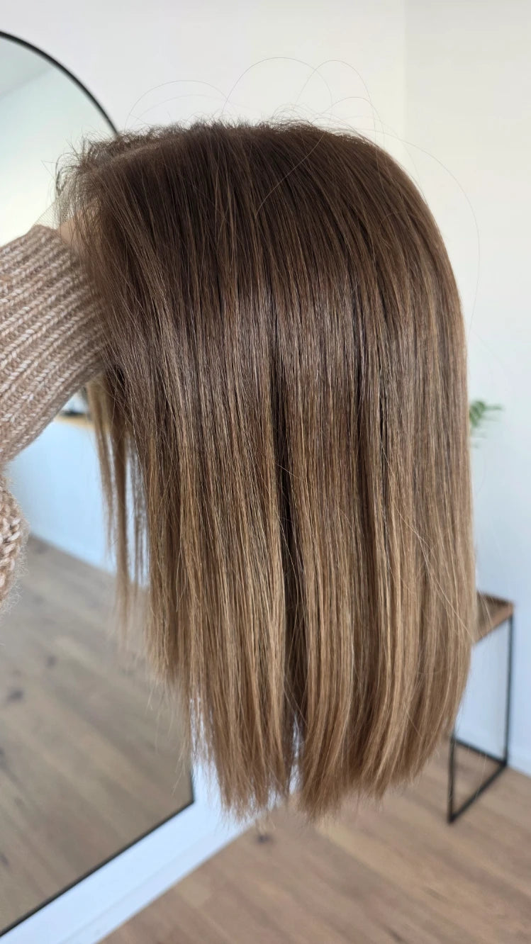 - Farbe neutrales Mittelbraun mit sanftem Ombré