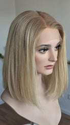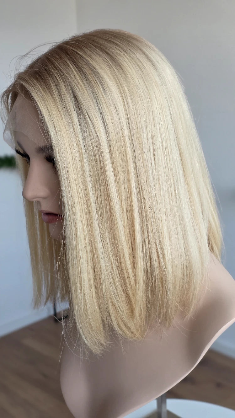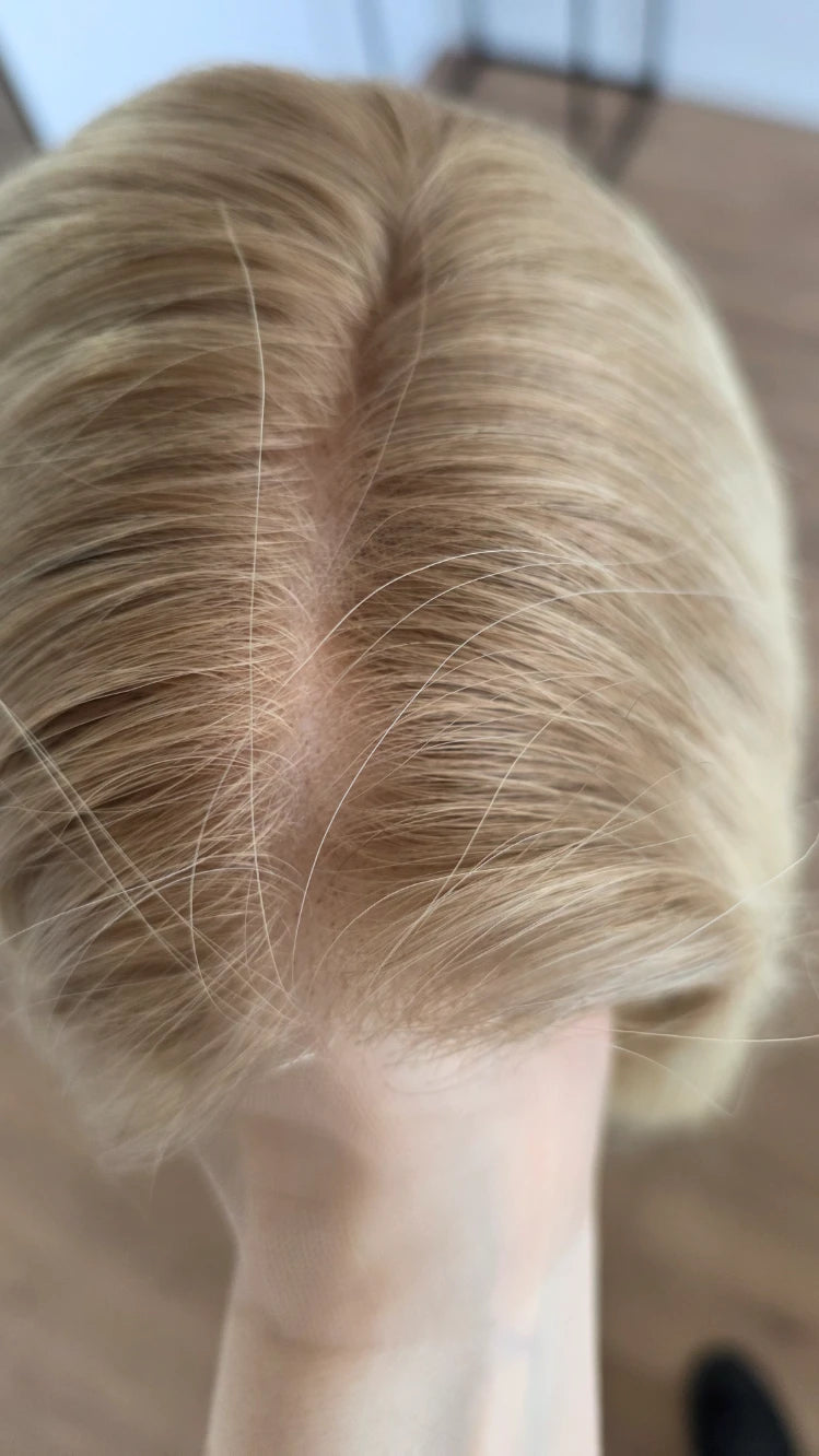 Die Knoten sind gebleicht, können allerdings nur bis zu einem gewissen Punkt blondiert werden, ohne die Integrität der Perücke zu gefährden. Da Haar ein Naturprodukt ist und somit natürlichen Schwankungen unterliegt, lassen sich manche Knoten besser aufhellen als andere. Sollten die Knoten nicht ganz aufgehellt werden können, kannst du sie mit hellem Puder oder unserem Perückenstift kaschieren.