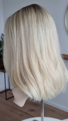 Die Knoten sind gebleicht, können allerdings nur bis zu einem gewissen Punkt blondiert werden, ohne die Integrität der Perücke zu gefährden. Da Haar ein Naturprodukt ist und somit natürlichen Schwankungen unterliegt, lassen sich manche Knoten besser aufhellen als andere. Sollten die Knoten nicht ganz aufgehellt werden können, kannst du sie mit hellem Puder oder unserem Perückenstift kaschieren.
