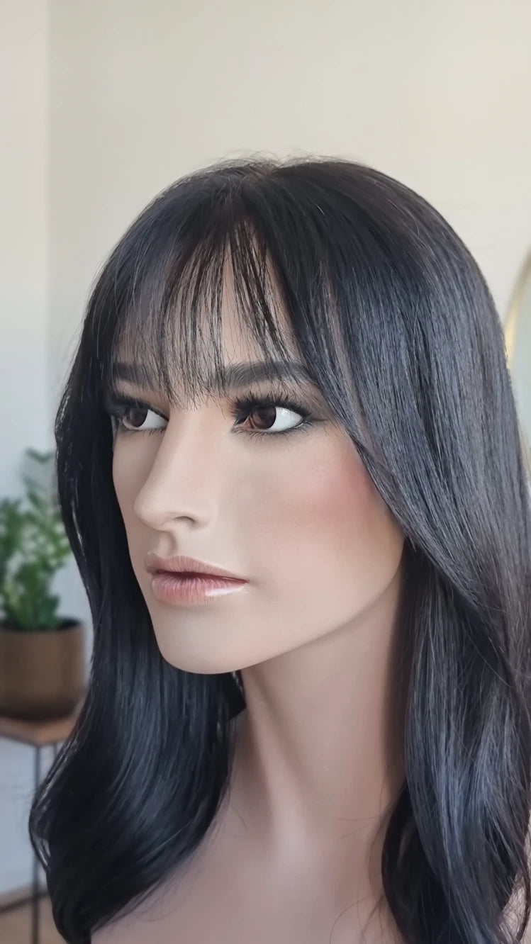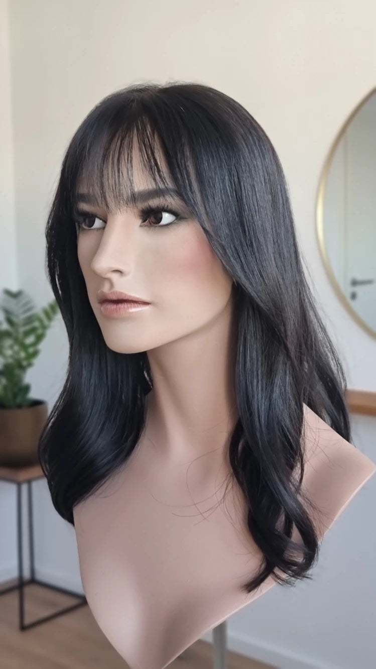 - Haarlänge stufig 40-45 cm vom Scheitel bis zu den Spitzen
