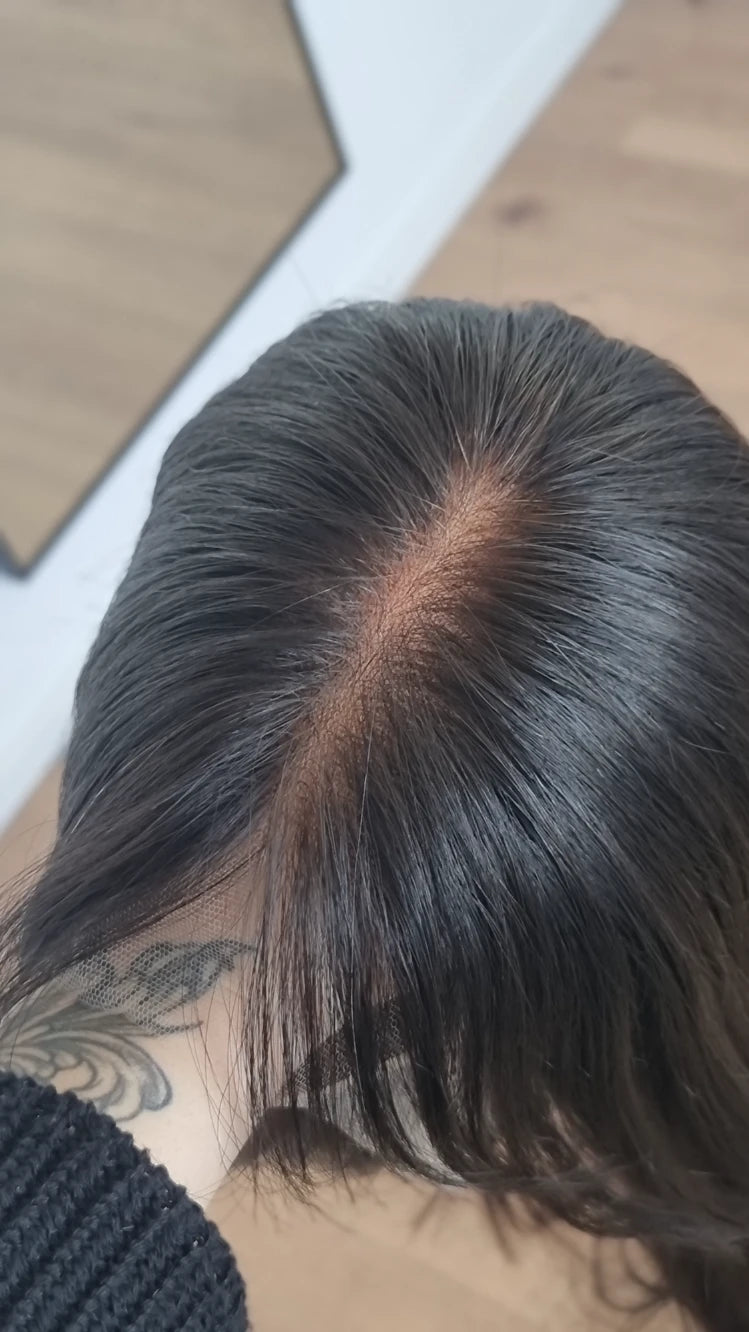 Die Knoten sind gebleicht, können allerdings nur bis zu einem gewissen Punkt blondiert werden, ohne die Integrität der Perücke zu gefährden. Da Haar ein Naturprodukt ist und somit natürlichen Schwankungen unterliegt, lassen sich manche Knoten besser aufhellen als andere. Sollten die Knoten nicht ganz aufgehellt werden können, kannst du sie mit hellem Puder oder unserem Perückenstift kaschieren.