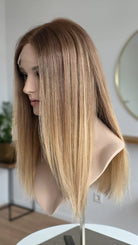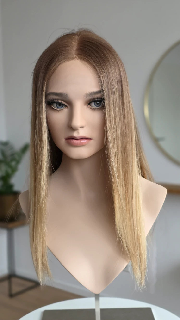 Die Knoten sind gebleicht, können allerdings nur bis zu einem gewissen Punkt blondiert werden, ohne die Integrität der Perücke zu gefährden. Da Haar ein Naturprodukt ist und somit natürlichen Schwankungen unterliegt, lassen sich manche Knoten besser aufhellen als andere. Sollten die Knoten nicht ganz aufgehellt werden können, kannst du sie mit hellem Puder oder unserem Perückenstift kaschieren.