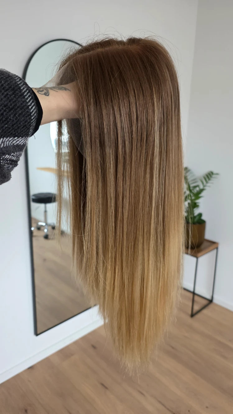 - Farbe Ansatz aschiges Hellbraun, Ombré zu Blond