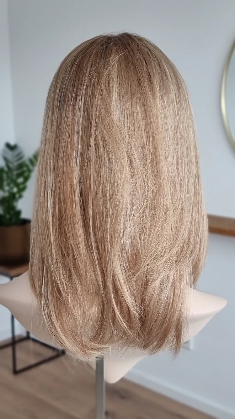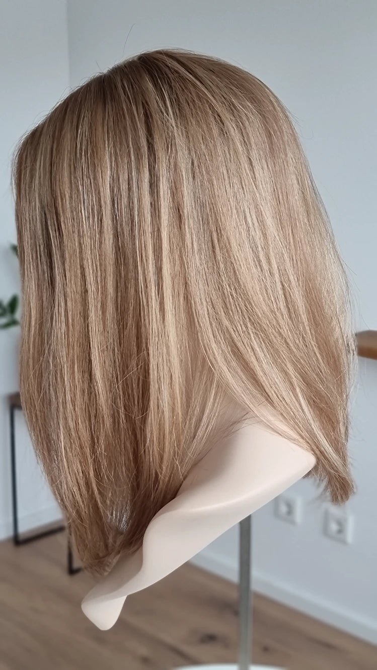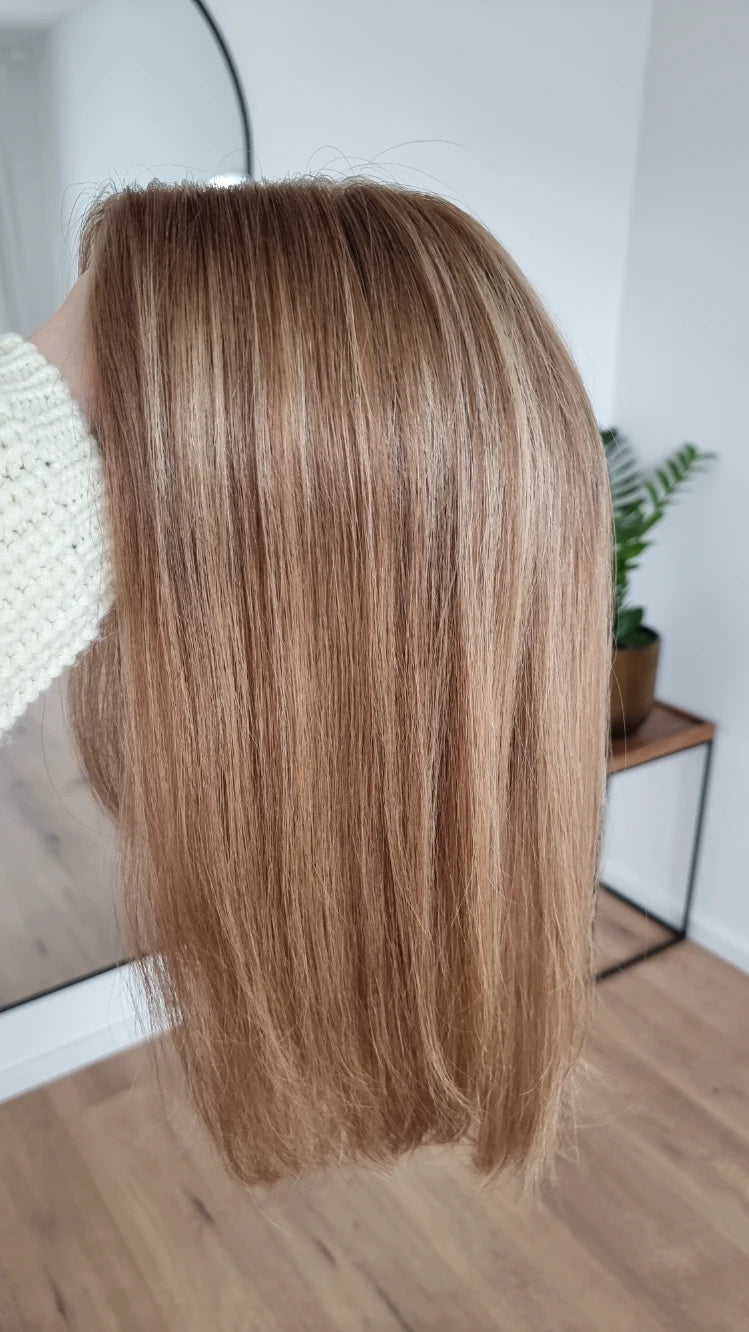 • Farbe neutrales Dunkelblond mit blonden Highlights