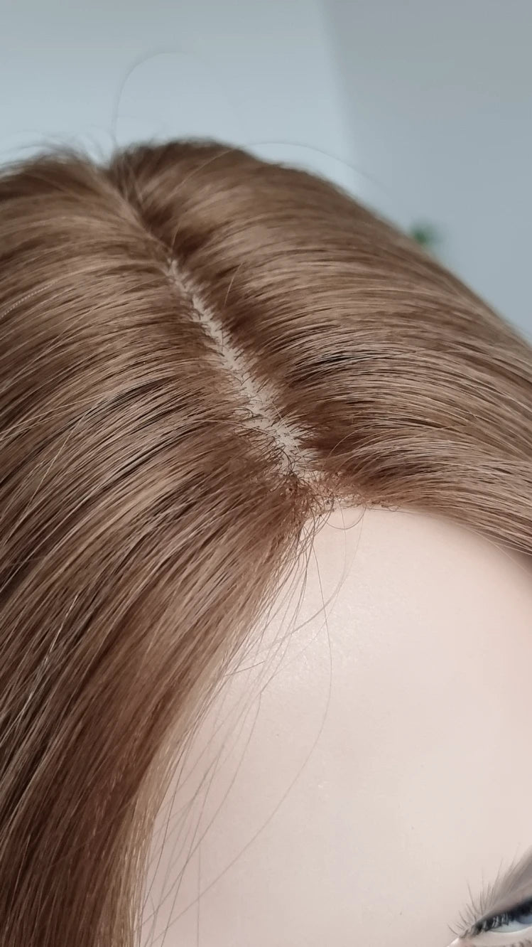 Um sicherzugehen, dass die Haarlänge für dich passend ist, nimm bitte ein flexibles Maßband und miss vom Mittelscheitel seitlich am Kopf herunter bis zu den Spitzen. Idealerweise ist der Topper dann 2 cm länger als dein eigenes Haar.