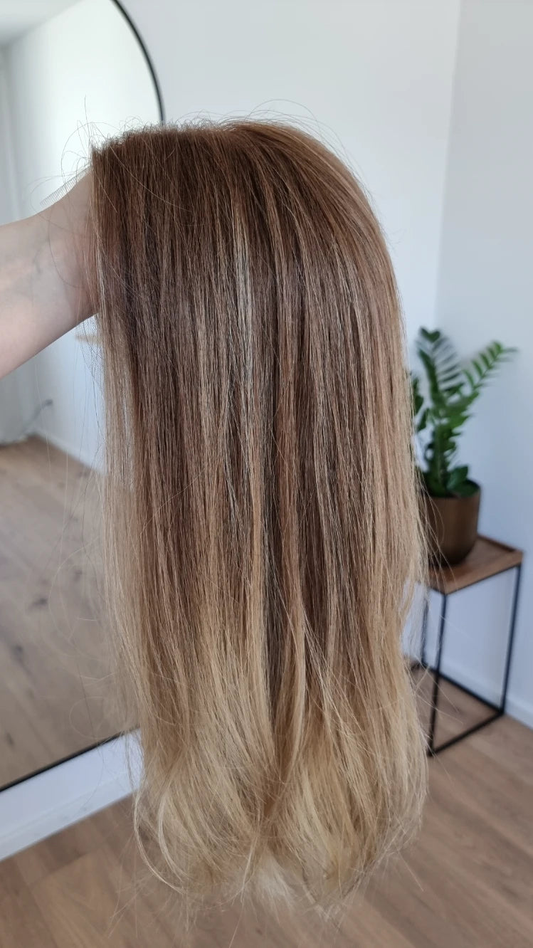 - Farbe Ansatz aschiges Hellbraun, Ombré zu Blond
