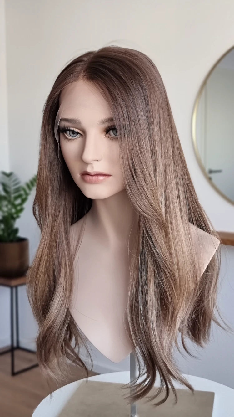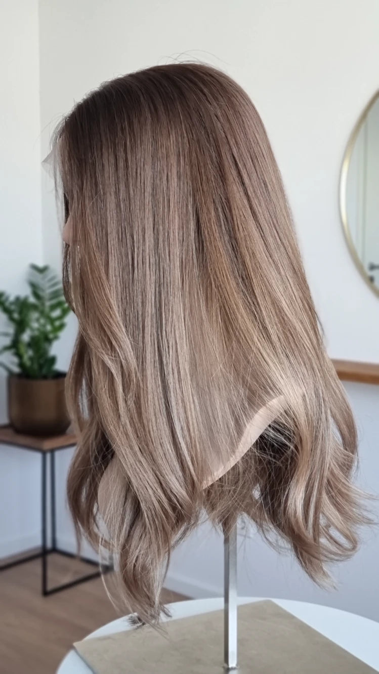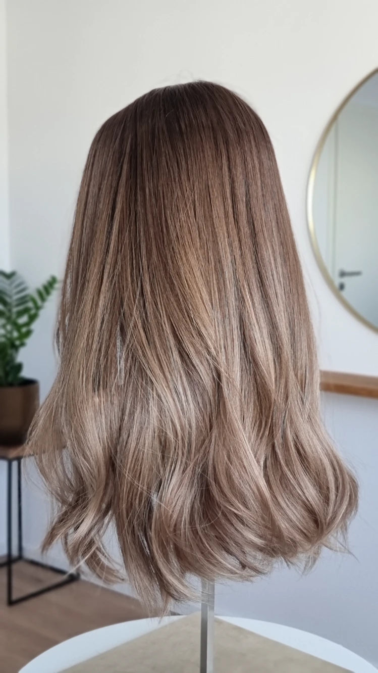Die Knoten sind gebleicht, können allerdings nur bis zu einem gewissen Punkt blondiert werden, ohne die Integrität der Perücke zu gefährden. Da Haar ein Naturprodukt ist und somit natürlichen Schwankungen unterliegt, lassen sich manche Knoten besser aufhellen als andere. Sollten die Knoten nicht ganz aufgehellt werden können, kannst du sie mit hellem Puder oder unserem Perückenstift kaschieren.