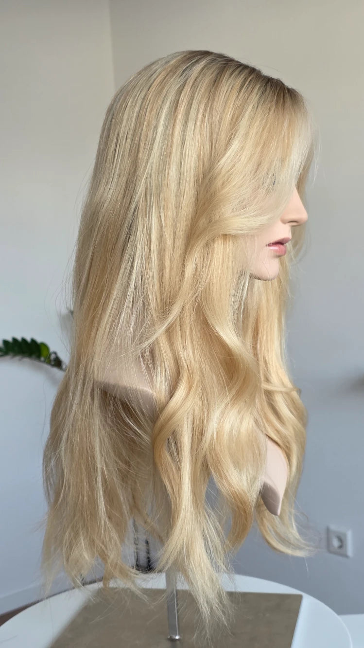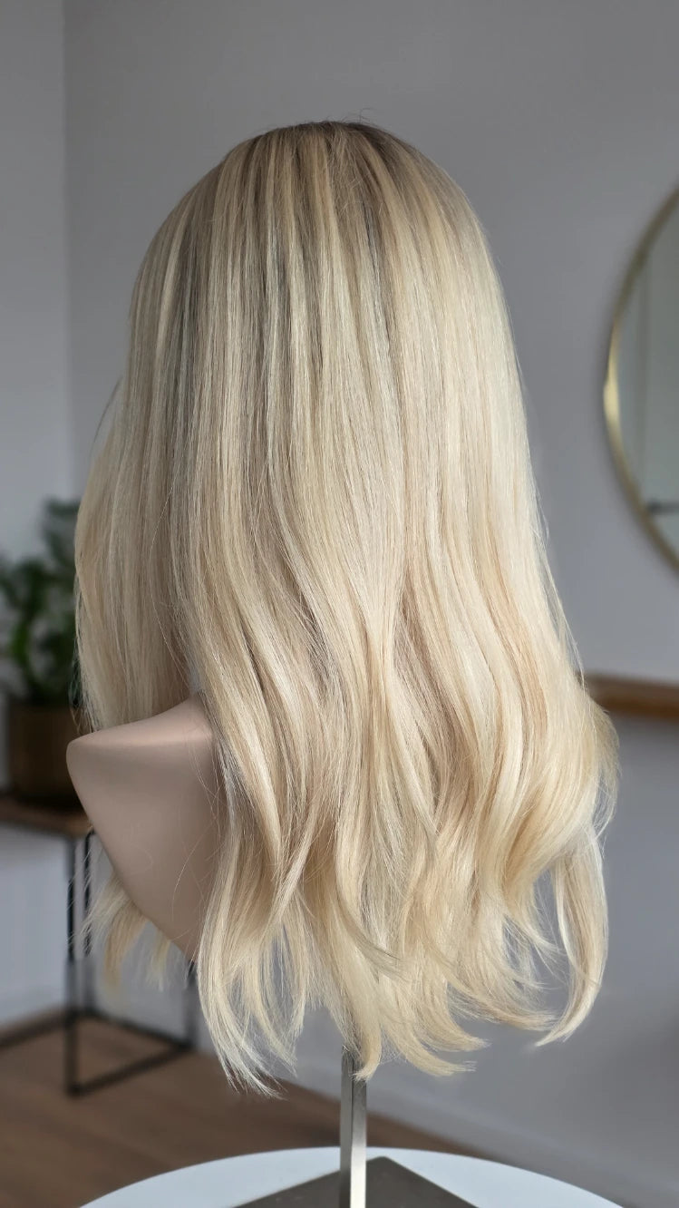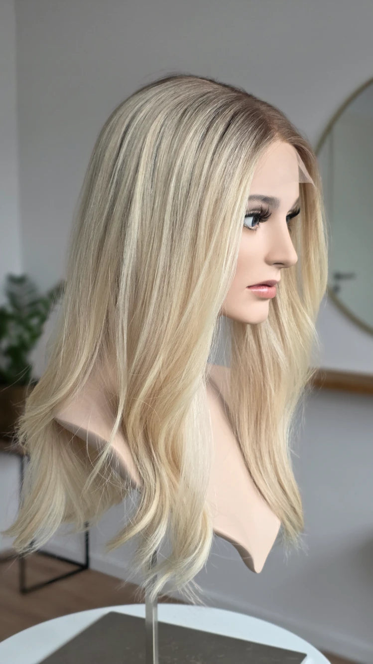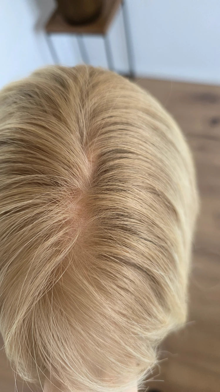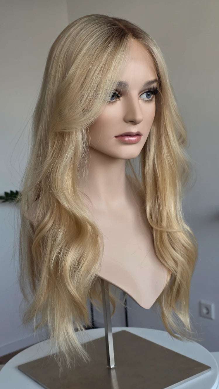 Im oberen Bereich befindet sich das sogenannte Lacetop: Hier werden die Haare ebenfalls einzeln eingeknüpft, was einen realistischen Scheitel und eine natürliche Haarbewegung ermöglicht.