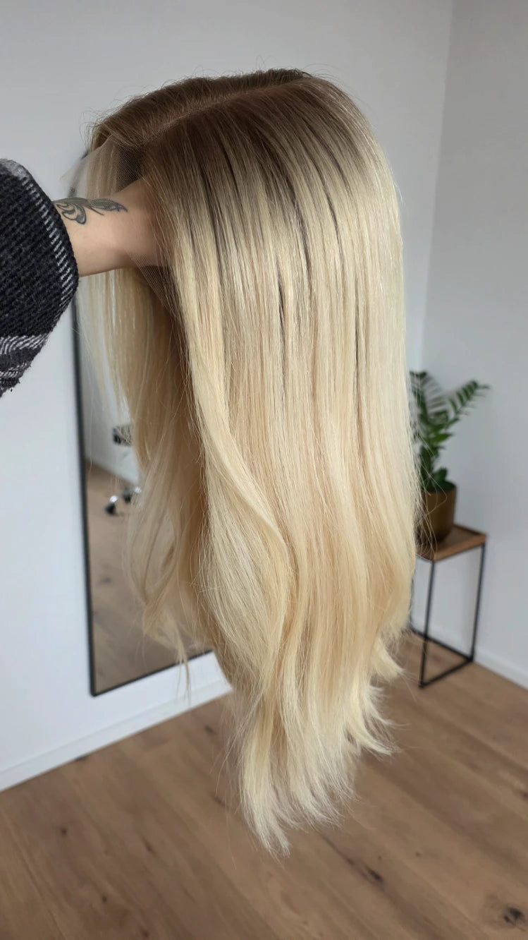 Das tägliche Handling wie Kämmen und Stylen ist unproblematisch, nur im Bereich des Lacetops und der Lacefront solltest du vorsichtig sein. Hier ist jedes Haar nur durch einen Knoten mit der Montur verbunden.