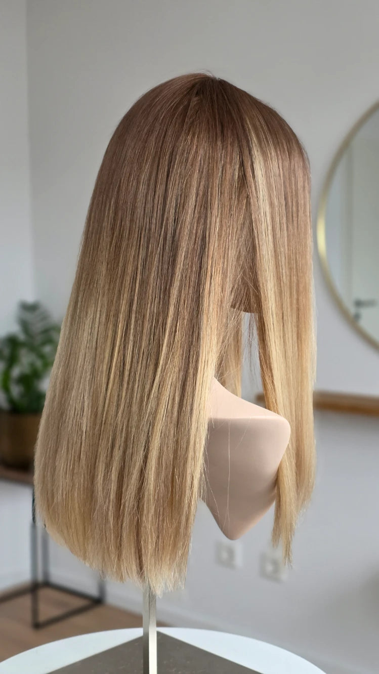 Unsere Tressen-Perücken bieten eine komfortable und natürliche Lösung für Frauen, die an Haarausfall durch medizinische Ursachen (wie z.B. Chemotherapie, Alepecia Areata) oder diffusen Haarausfall leiden.