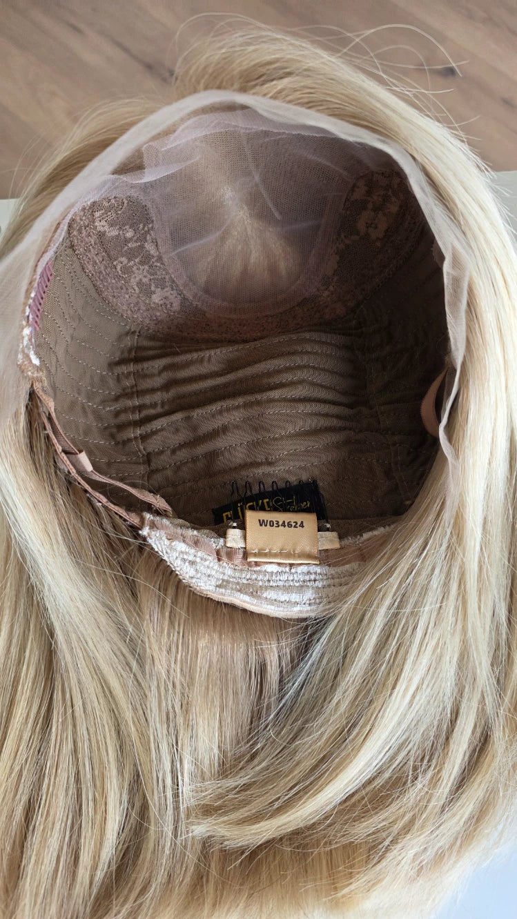 Eine Tressen-Perücke mit Lacefront ist relativ robust und pflegeleicht - vor allem im Vergleich zur handgeknüpften Version. Die Haare im hinteren Bereich (Tressen) sind maschinell aufgenäht, was die Montur deutlich stabiler und widerstandsfähiger gegen mechanische Belastung macht.